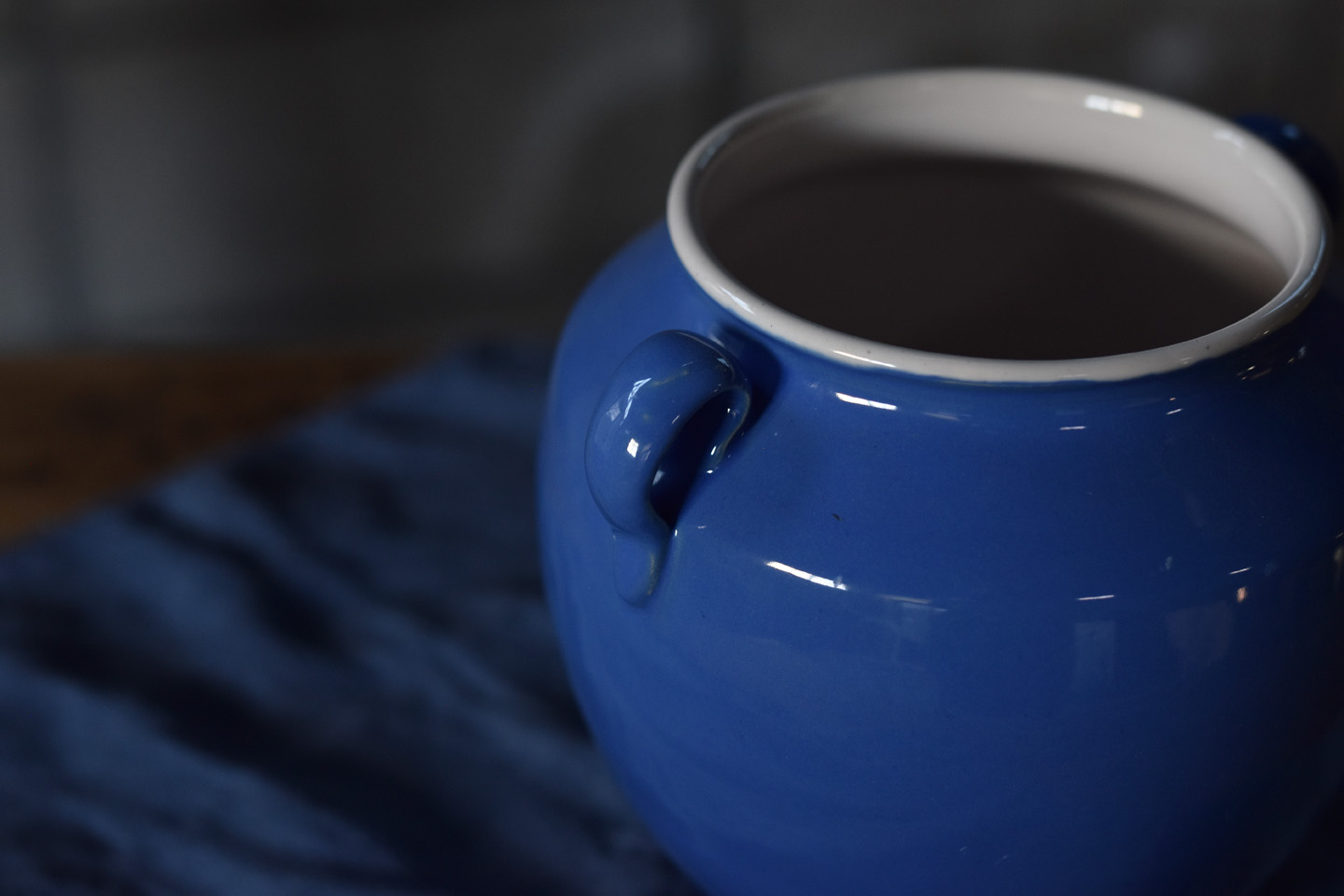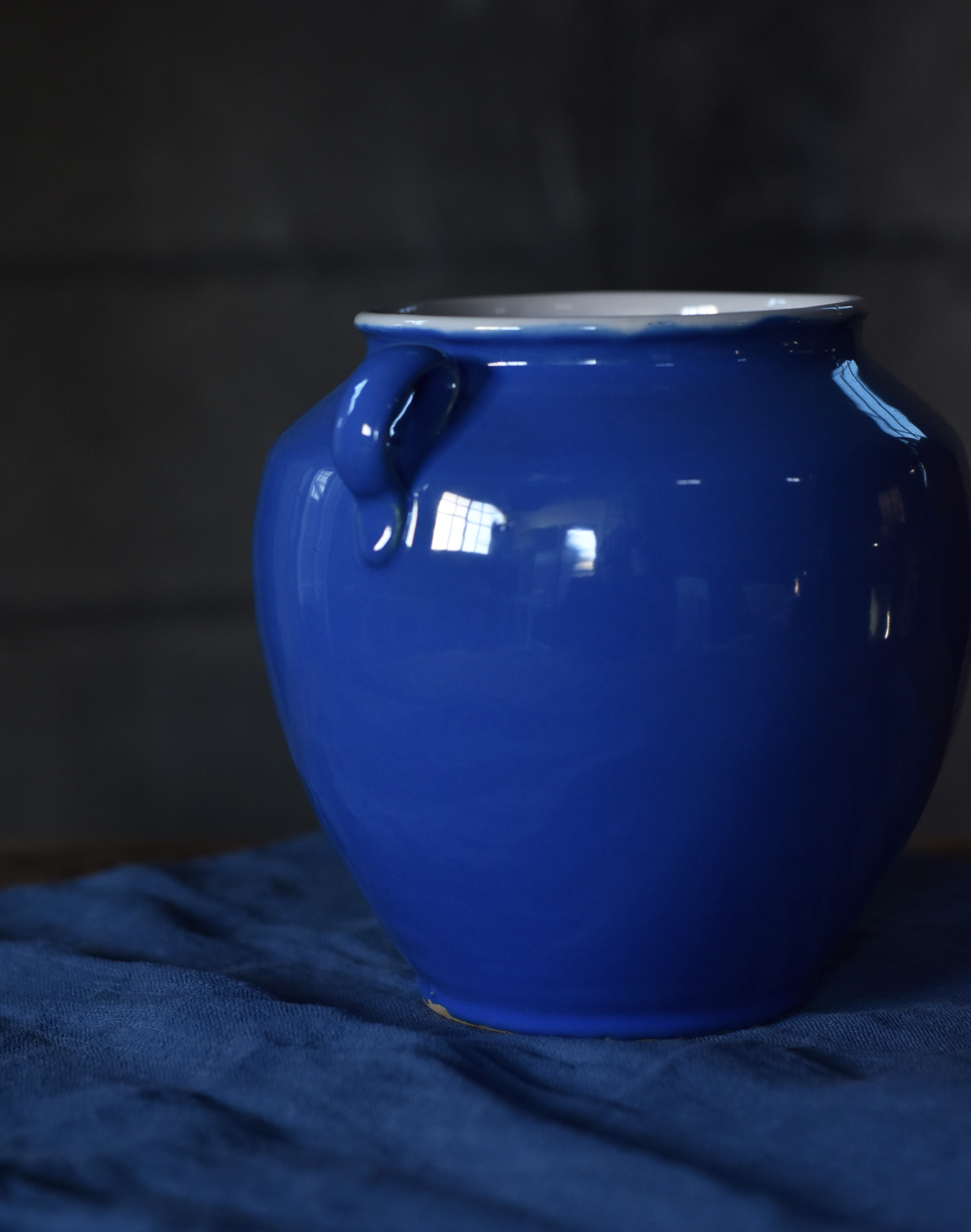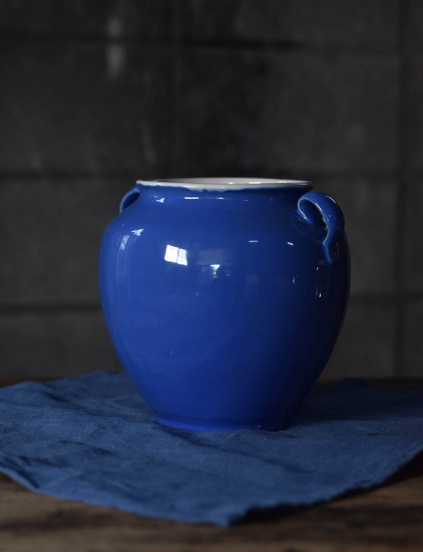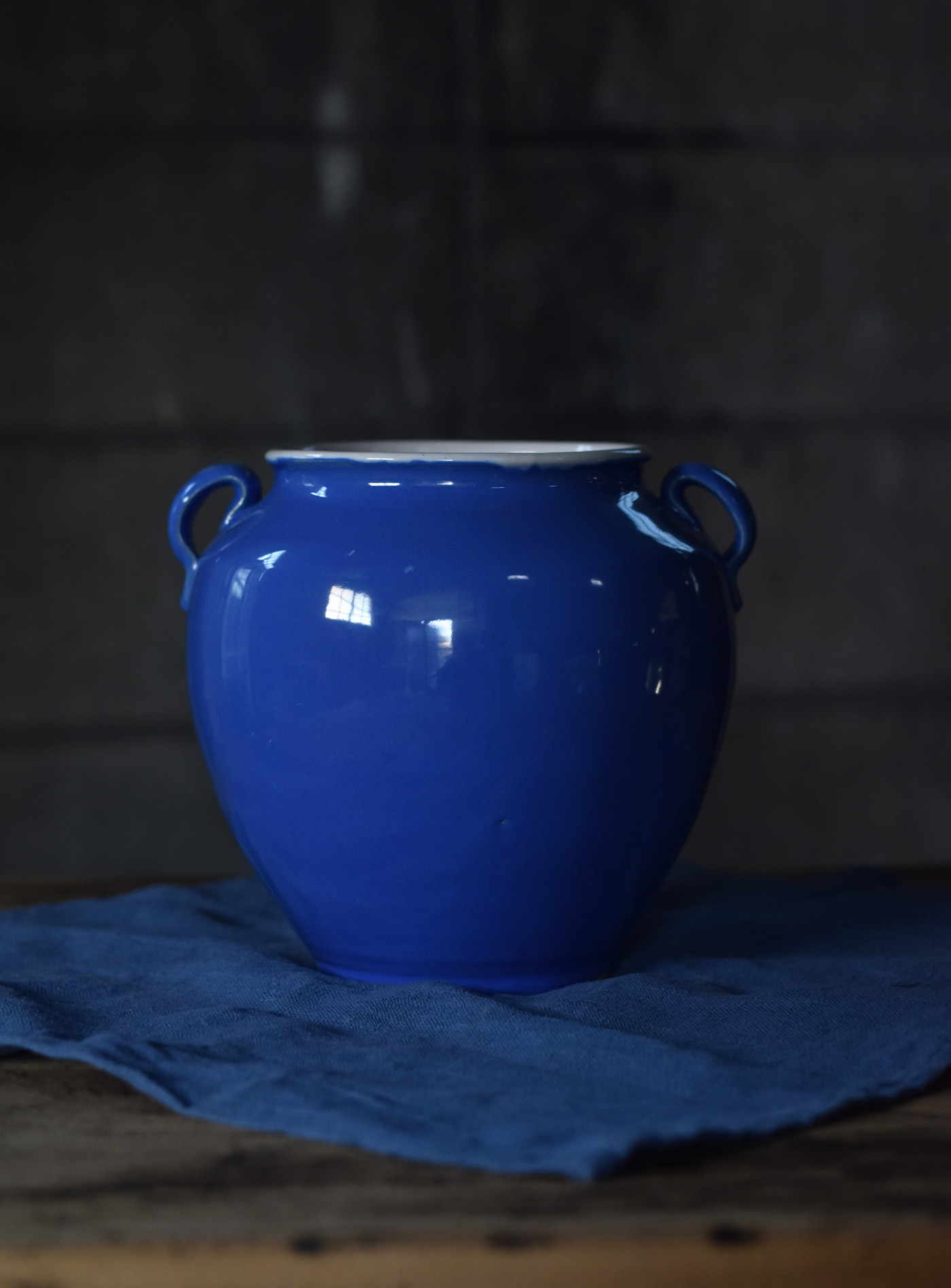 白錫のファイアンスが好まれますが、数の少ない鮮やかなブルーの方が珍重されていると思います。どっさりと花入れに。