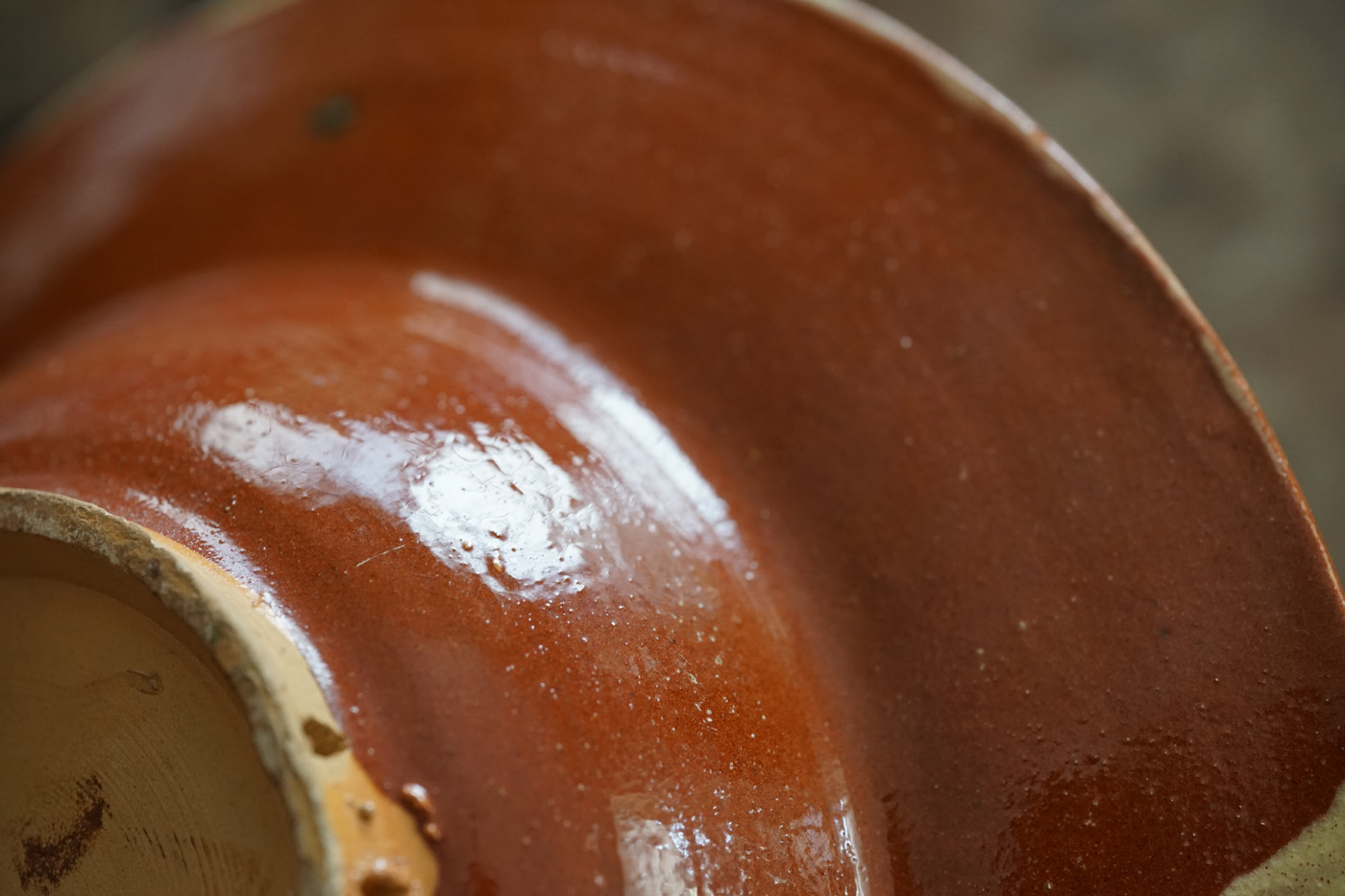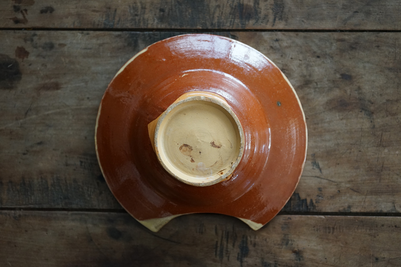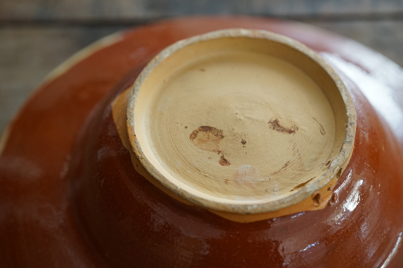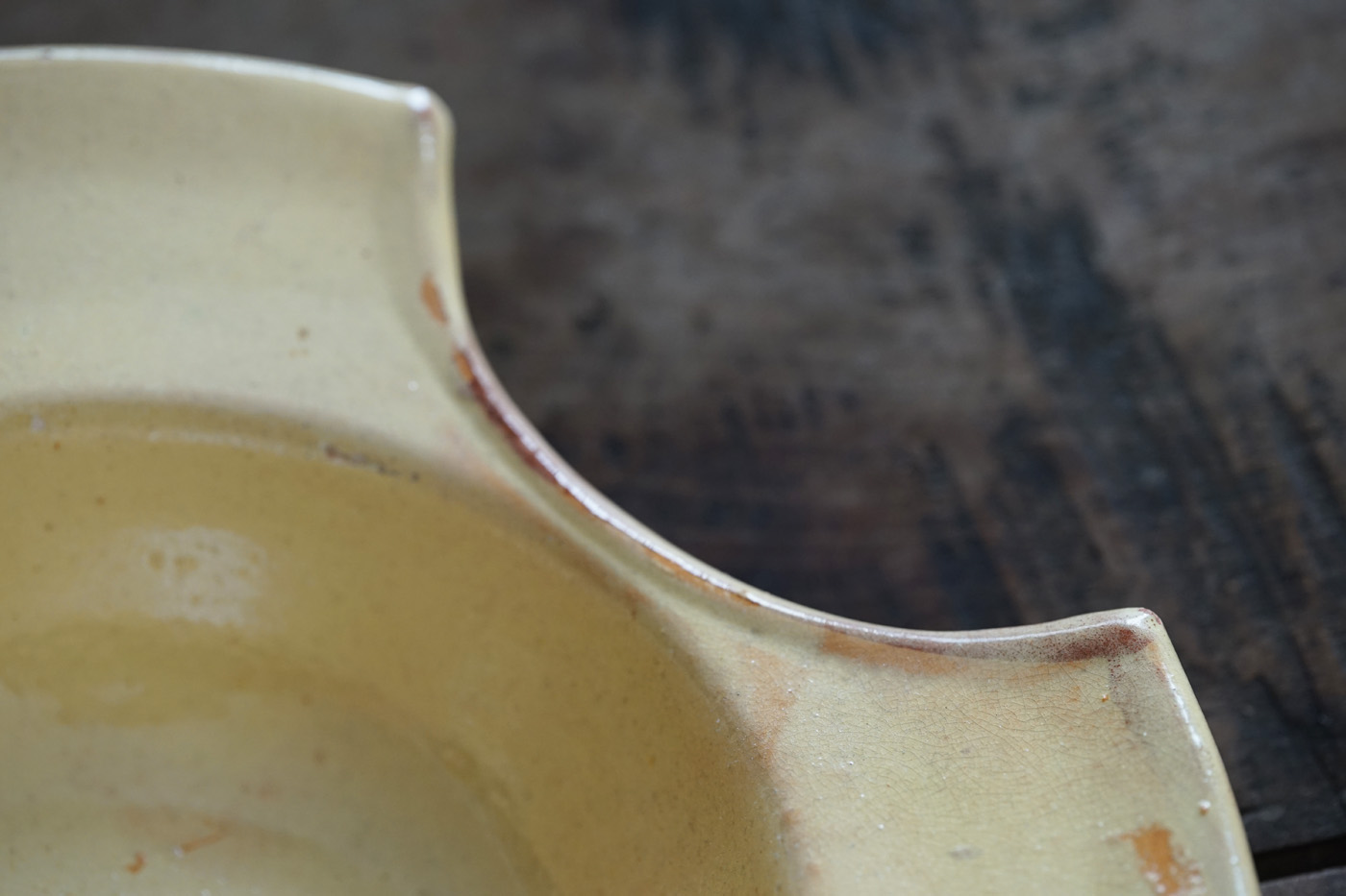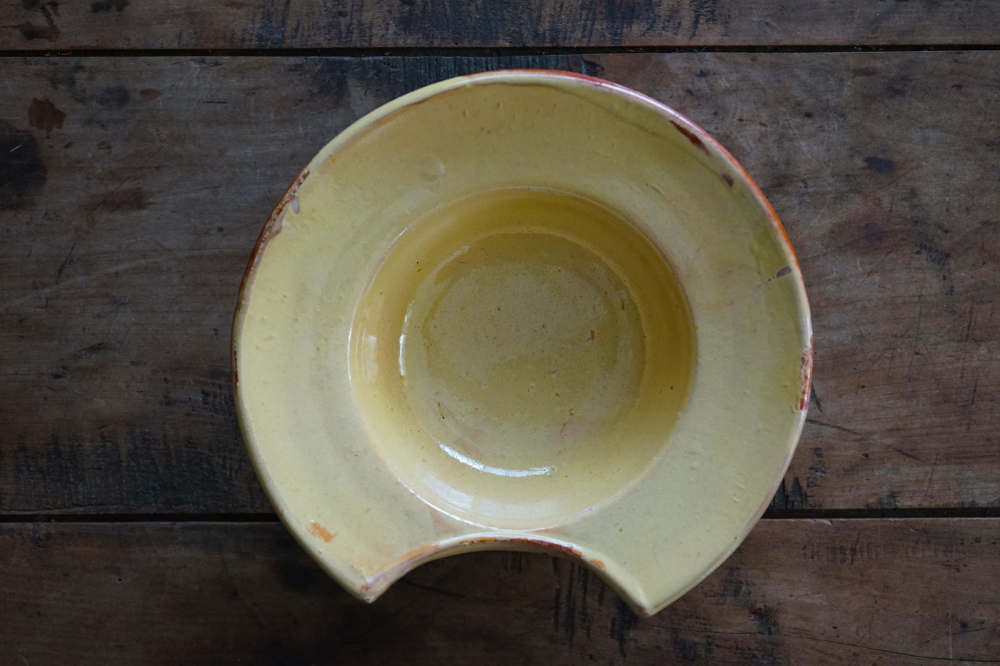 黄釉の掛分の髭剃り用の鉢 / 19世紀・南フランス