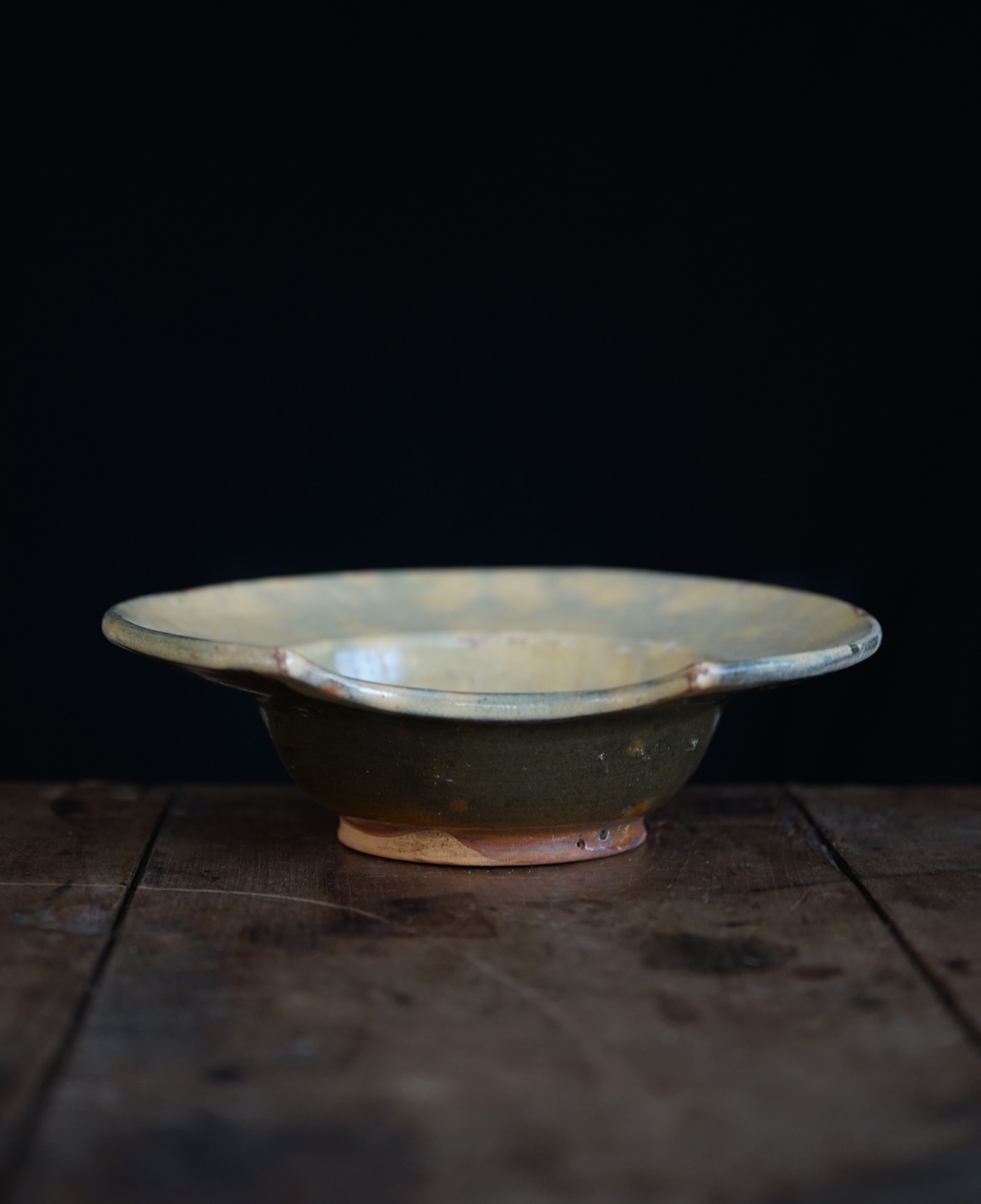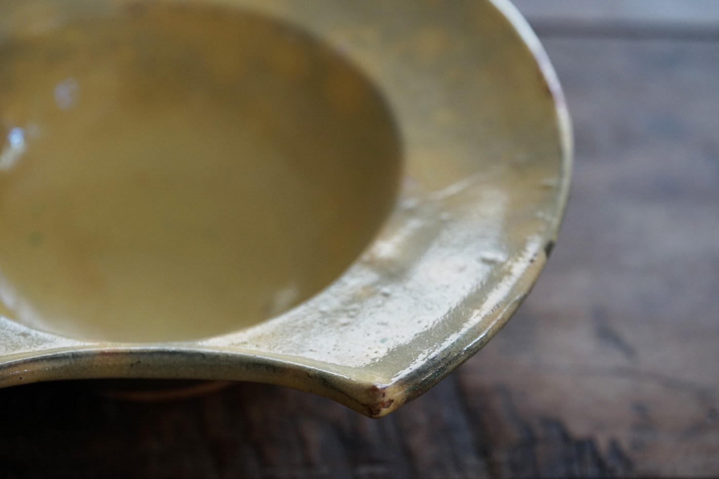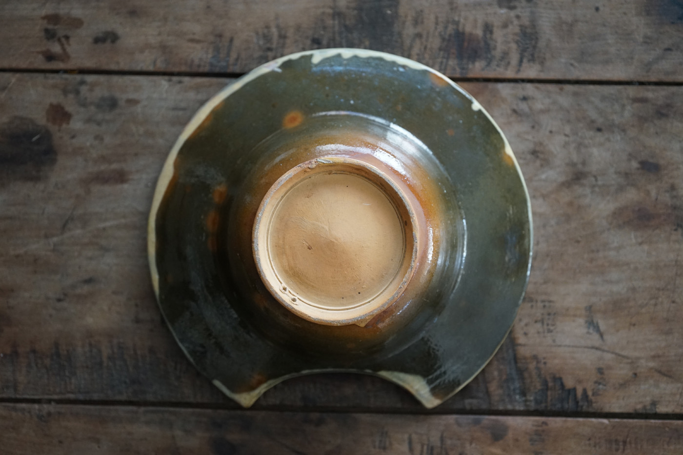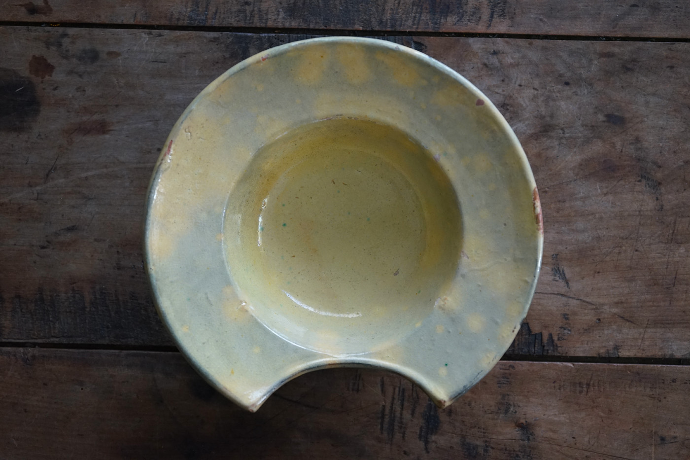 黄釉の掛分の髭剃り用の鉢 / 19世紀・南フランス