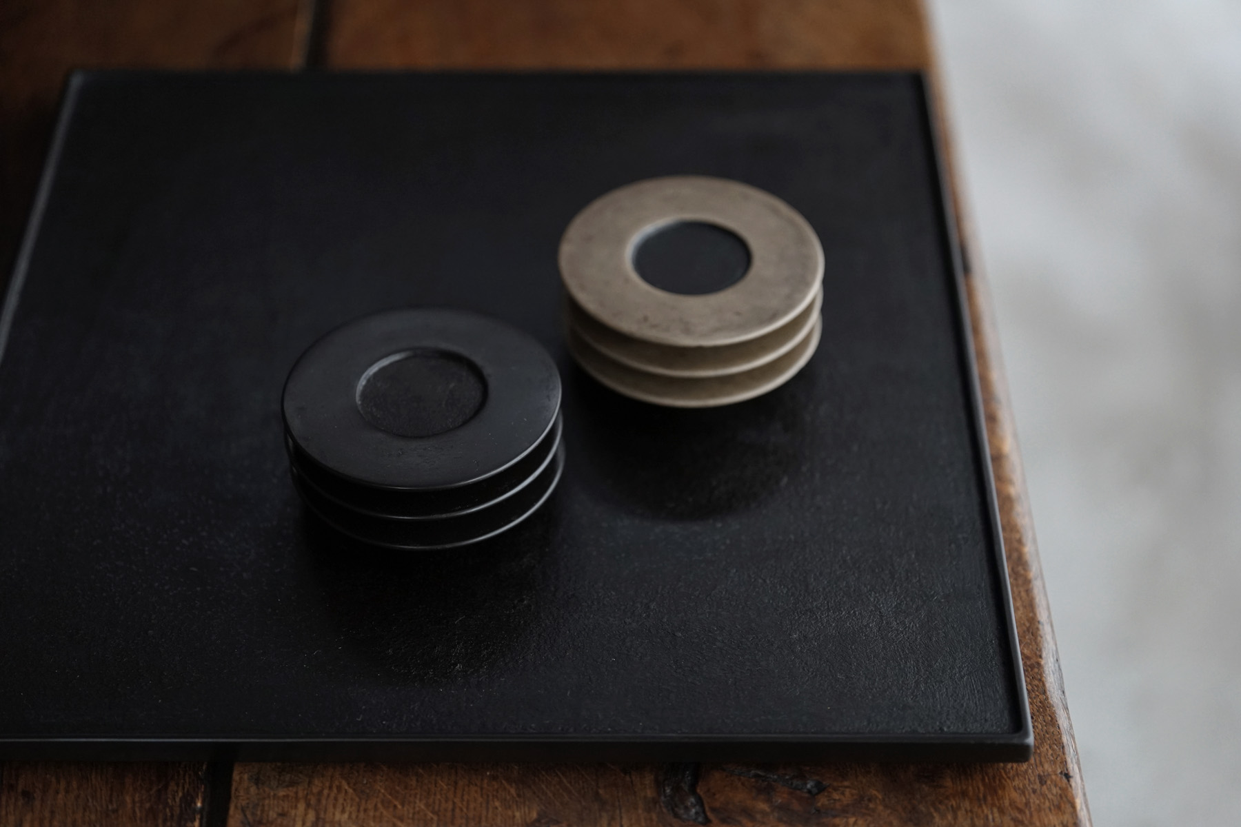 other : 独特なテクスチャーのベンガラ仕上げの作品は、蒔地(漆を塗って乾く前に「地の粉」をふりかける)を重ねてから漆を数回塗り重ね、ベンガラを混ぜた漆を更に数回塗り重ねた後に研磨して拭き漆で仕上げています。見込みと底に見られる凹凸のあるラフな質感と、磨き込んだマットな中にツヤを感じる表情を分けてつくられています。小品ながら見所の多い作品となっています。
