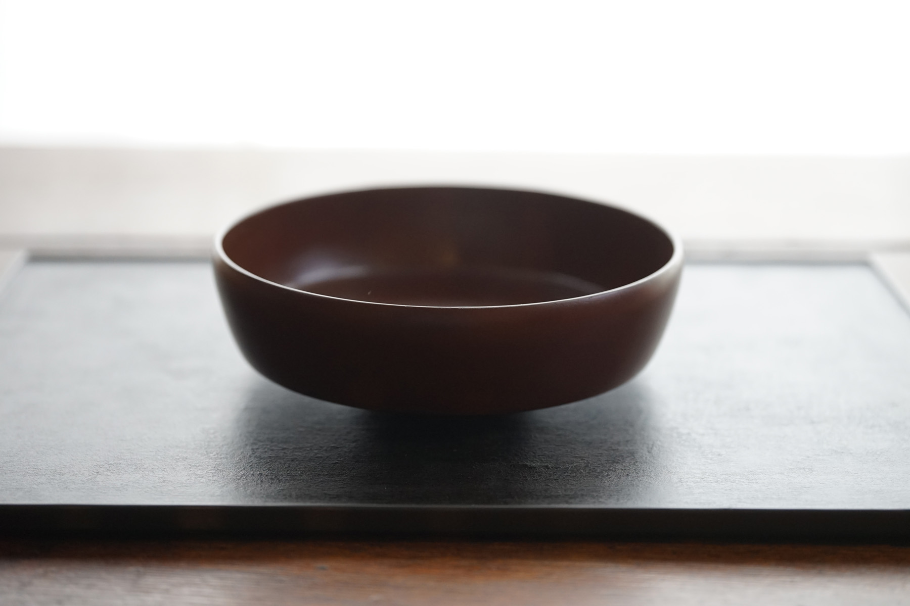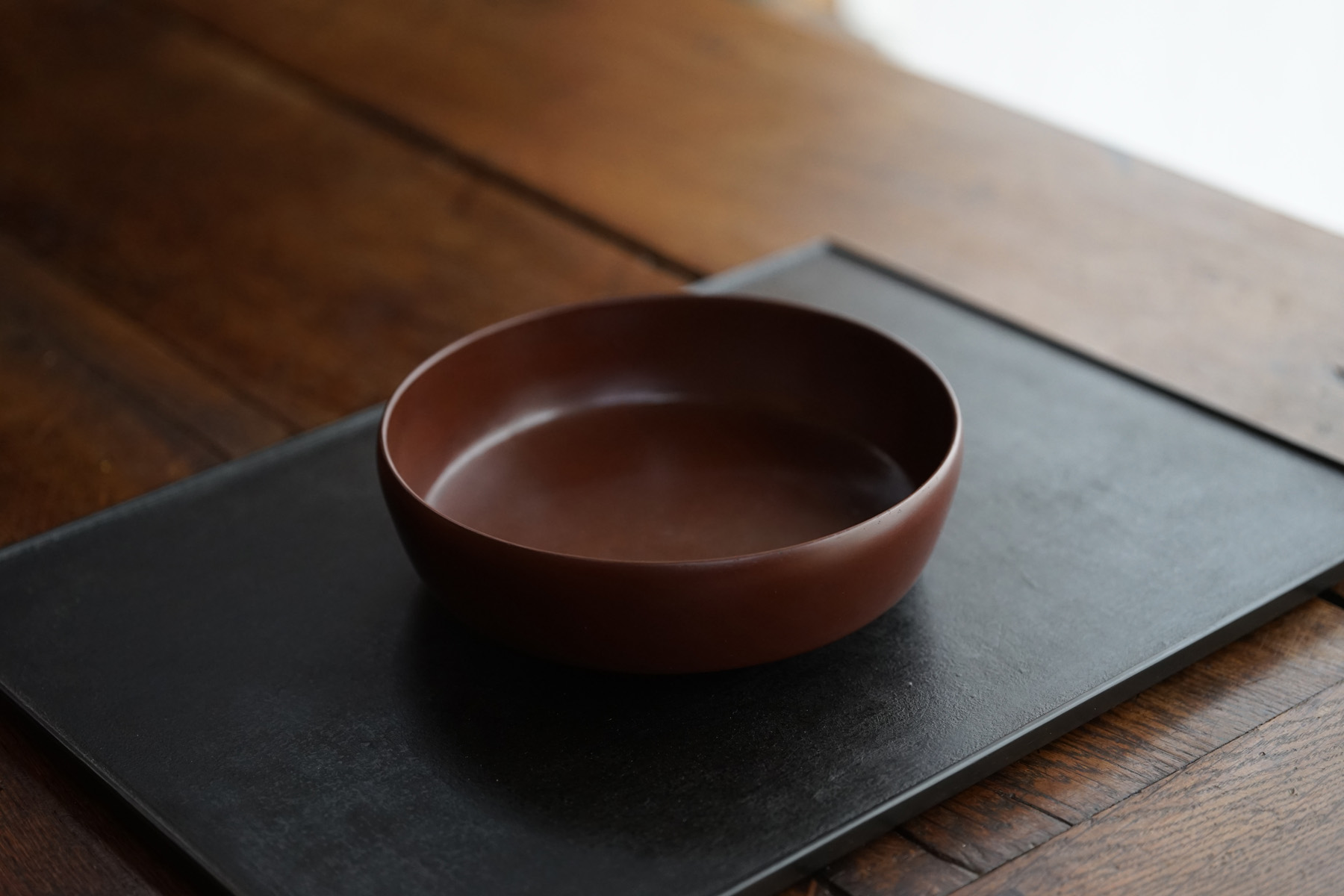 other : 独特なテクスチャーのベンガラ仕上げの作品は、蒔地(漆を塗って乾く前に「地の粉」をふりかける)を重ねてから漆を数回塗り重ね、ベンガラを混ぜた漆を更に数回塗り重ねた後に研磨して拭き漆で仕上げています。