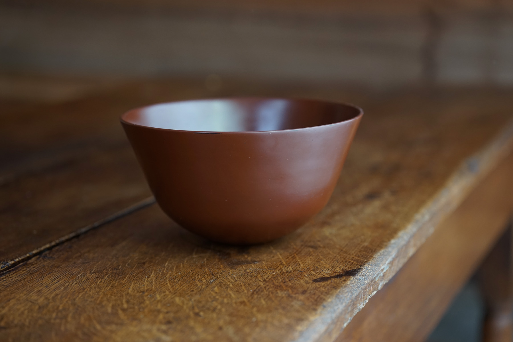 other : 独特なテクスチャーのベンガラ仕上げの作品は、蒔地(漆を塗って乾く前に「地の粉」をふりかける)を重ねてから漆を数回塗り重ね、ベンガラを混ぜた漆を更に数回塗り重ねた後に研磨して拭き漆で仕上げています。
