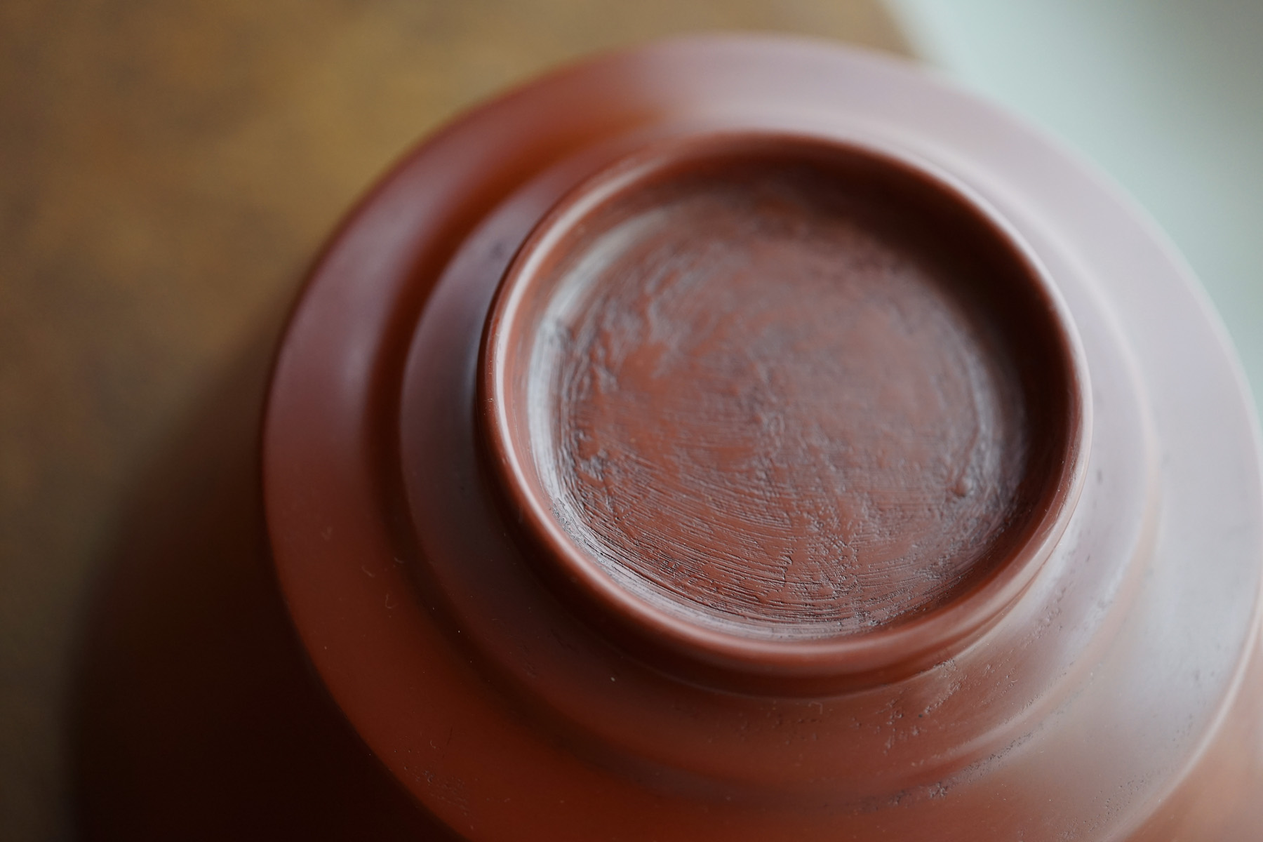 other : 独特なテクスチャーのベンガラ仕上げの作品は、蒔地(漆を塗って乾く前に「地の粉」をふりかける)を重ねてから漆を数回塗り重ね、ベンガラを混ぜた漆を更に数回塗り重ねた後に研磨して拭き漆で仕上げています。