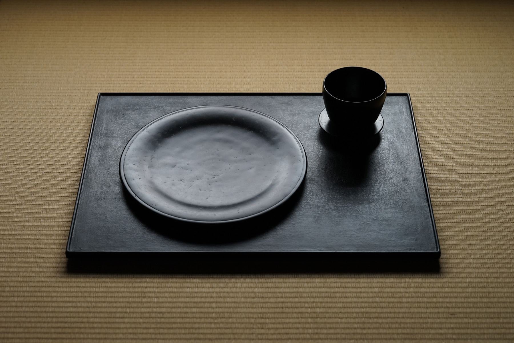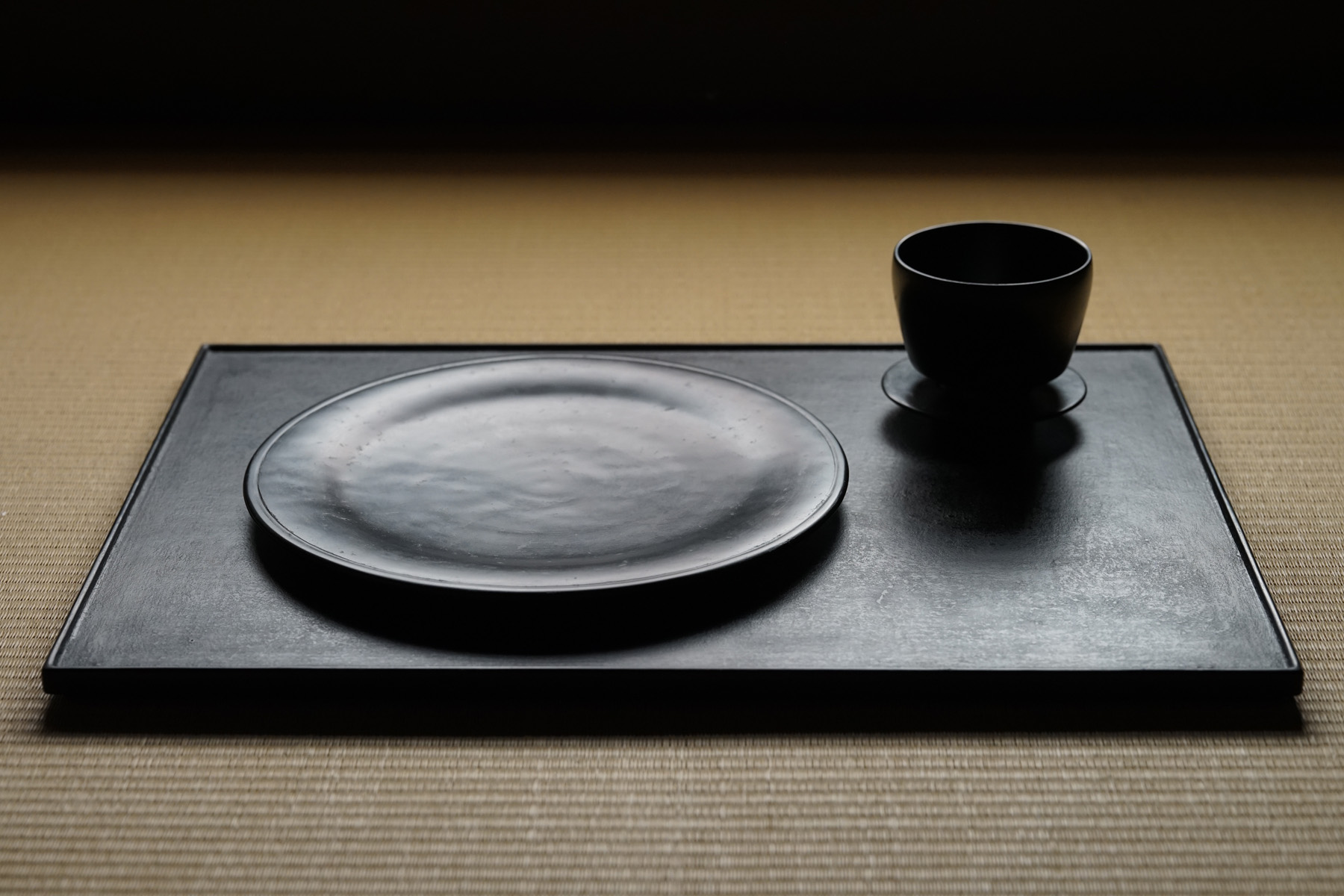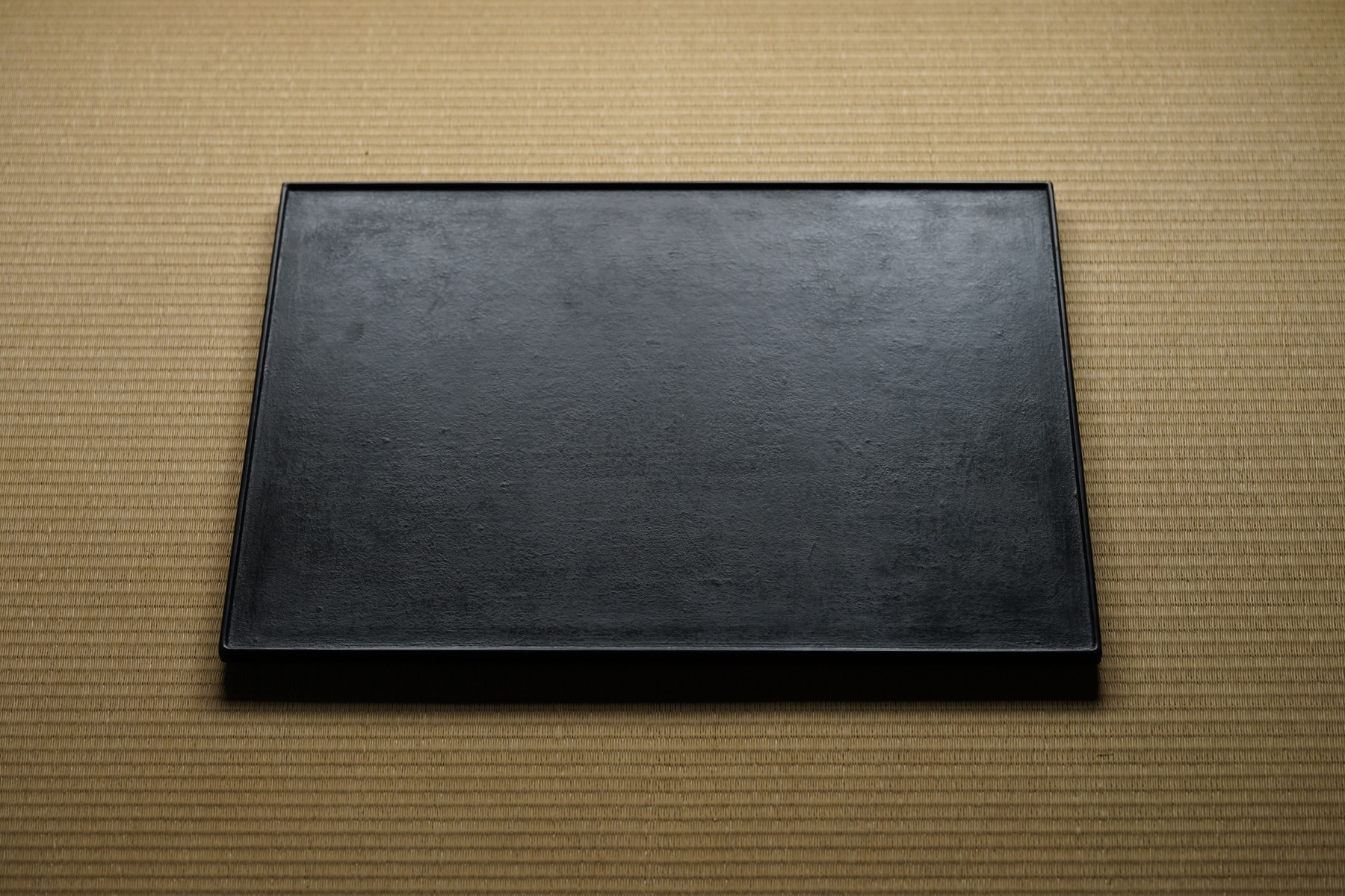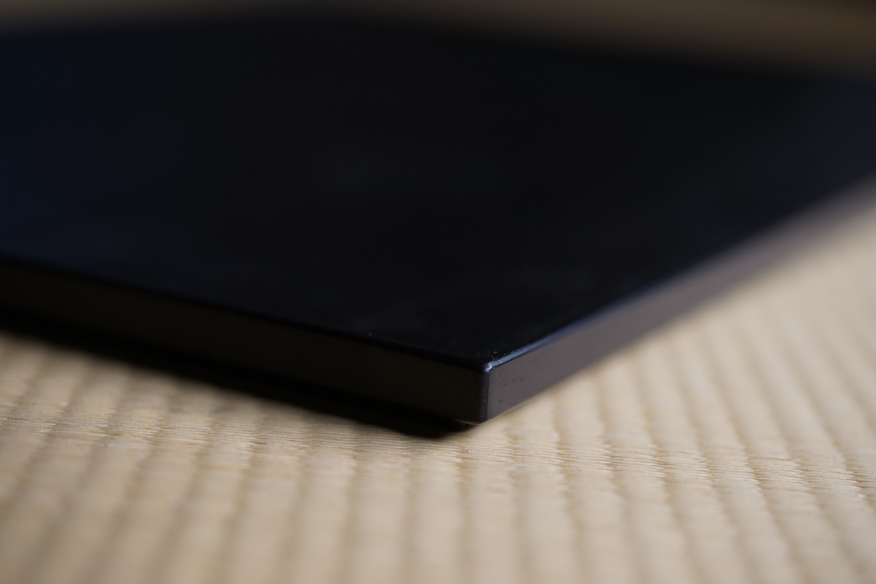 指物にて枠がつけられています。縁が僅かに立ち上がっており、手に取りやすく、またテーブルから少し浮いた印象となる為、軽やかな印象となります。独特なテクスチャーのベンガラ仕上げの作品は、蒔地(漆を塗って乾く前に「地の粉」をふりかける)を重ねてから漆を数回塗り重ね、ベンガラを混ぜた漆を更に数回塗り重ねた後に研磨して拭き漆で仕上げています。磨き上げた枠部分とざらっとした質感を残した面の対比が美しいです。