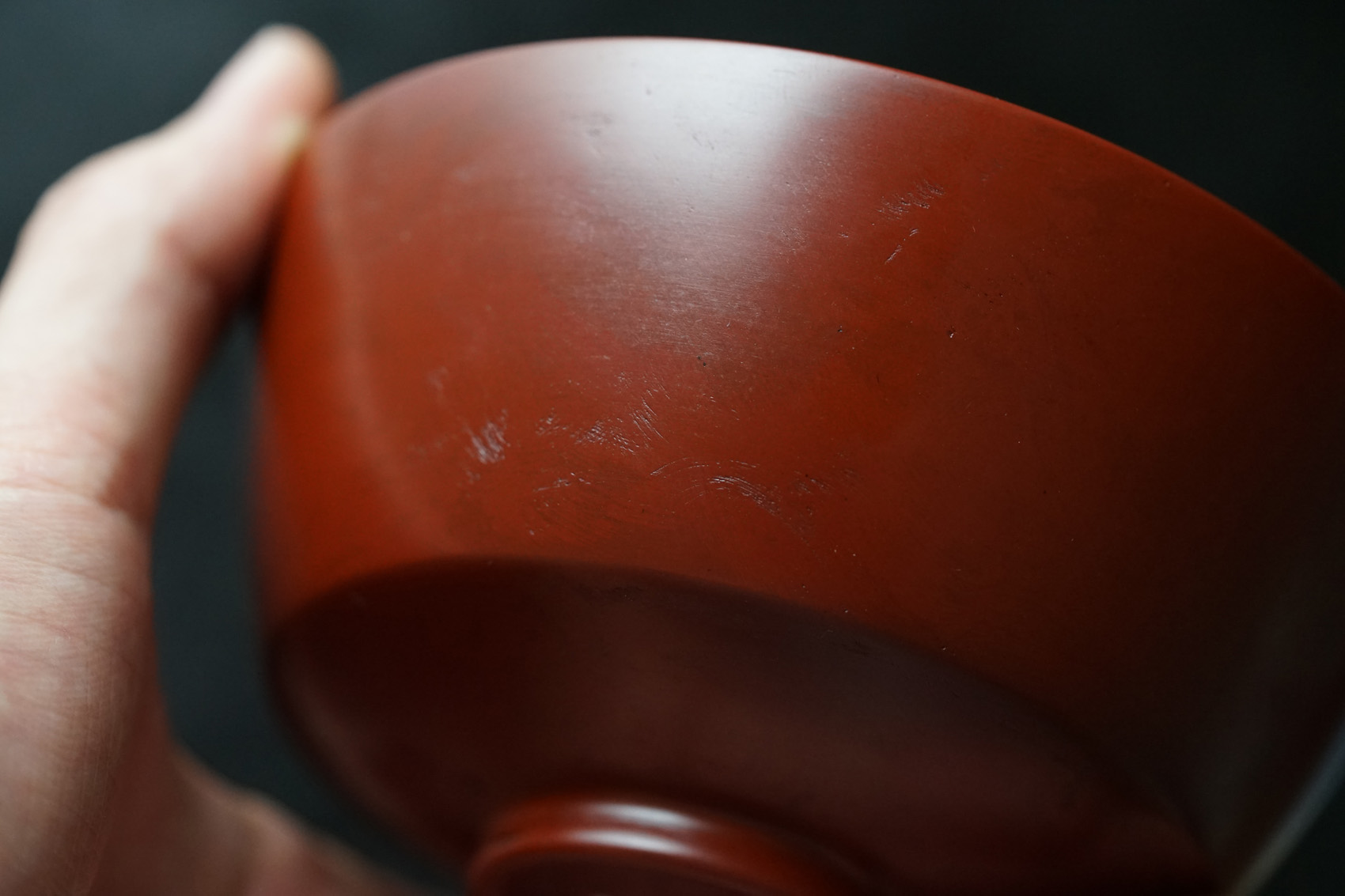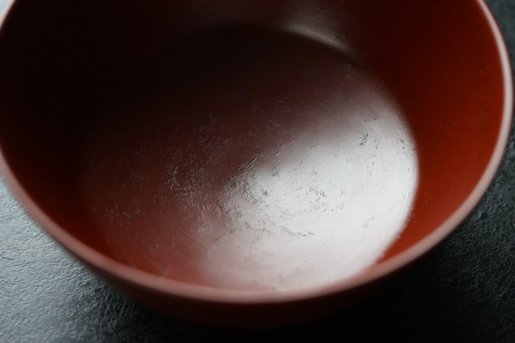 other : 独特なテクスチャーのベンガラ仕上げの作品は、蒔地(漆を塗って乾く前に「地の粉」をふりかける)を重ねてから漆を数回塗り重ね、ベンガラを混ぜた漆を更に数回塗り重ねた後に研磨して拭き漆で仕上げています。