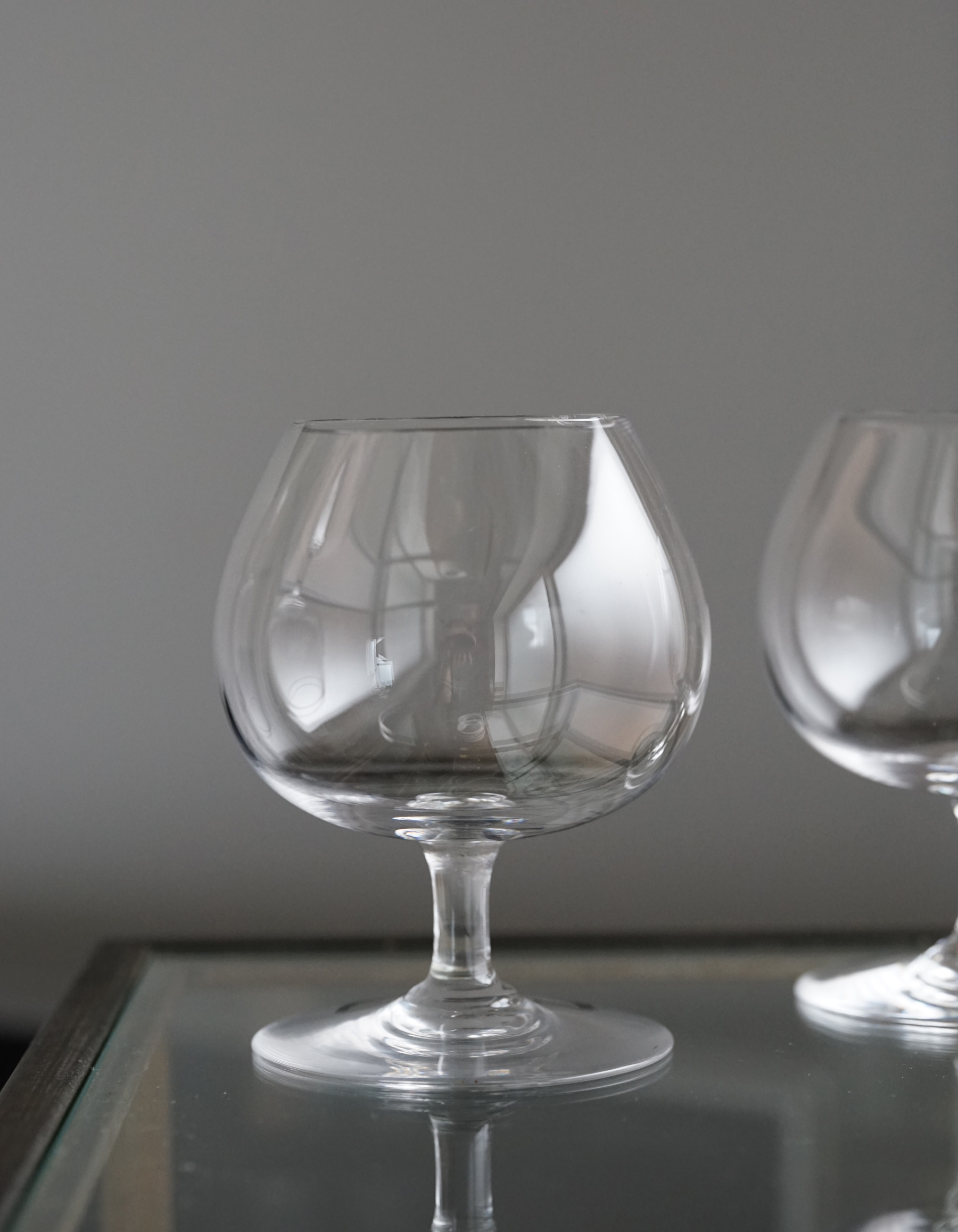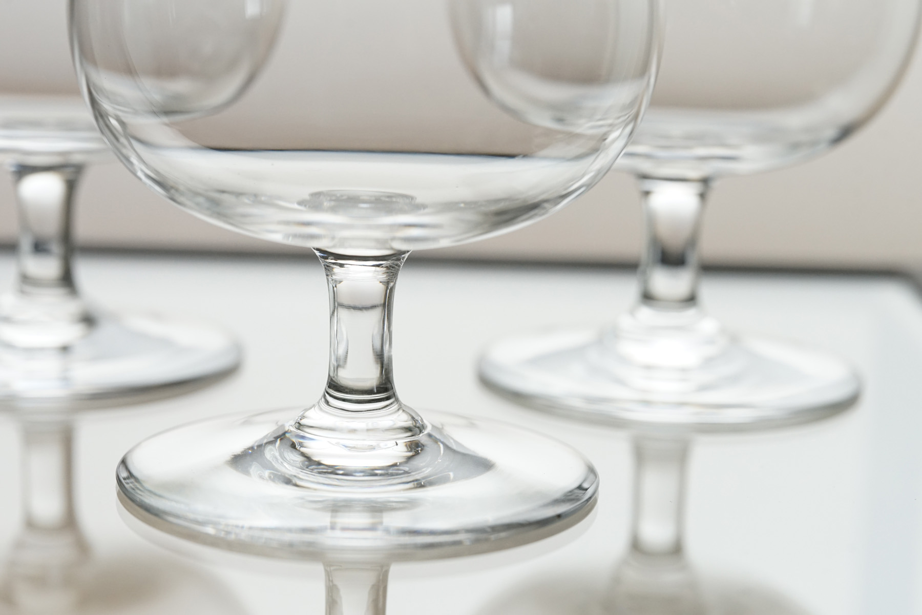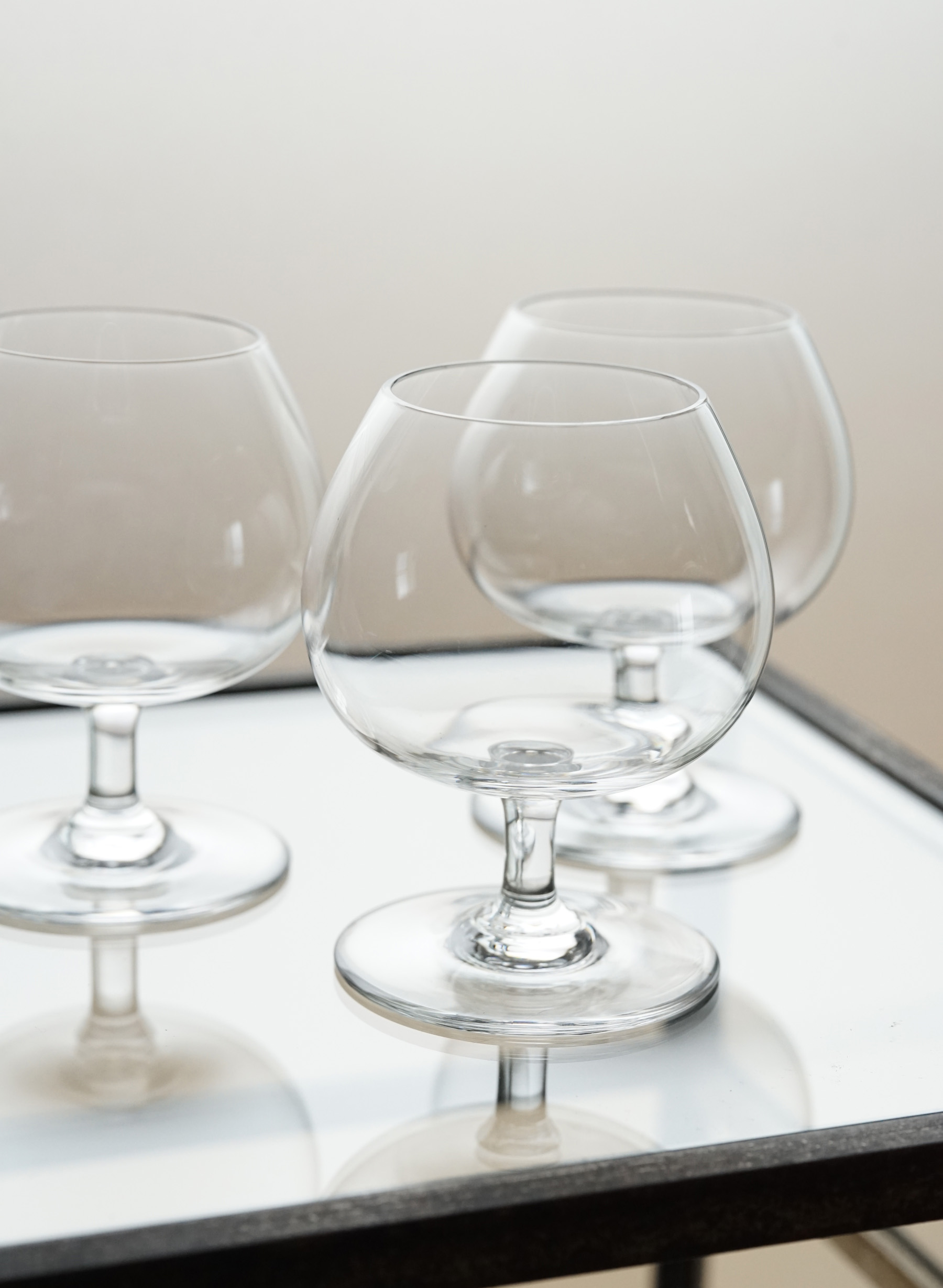 装飾の無い削ぎ落とされたデザインです。グラヴィールの刻印から初期の1940~50年頃のものと思われます。小振りで愛らしい香りを閉じ込めるカタチ。コニャックや香りを楽しむウイスキーやカルバドスなどにも良さそうです。パフェやお料理にも見立ててお使い頂くのもまた面白いと思います。