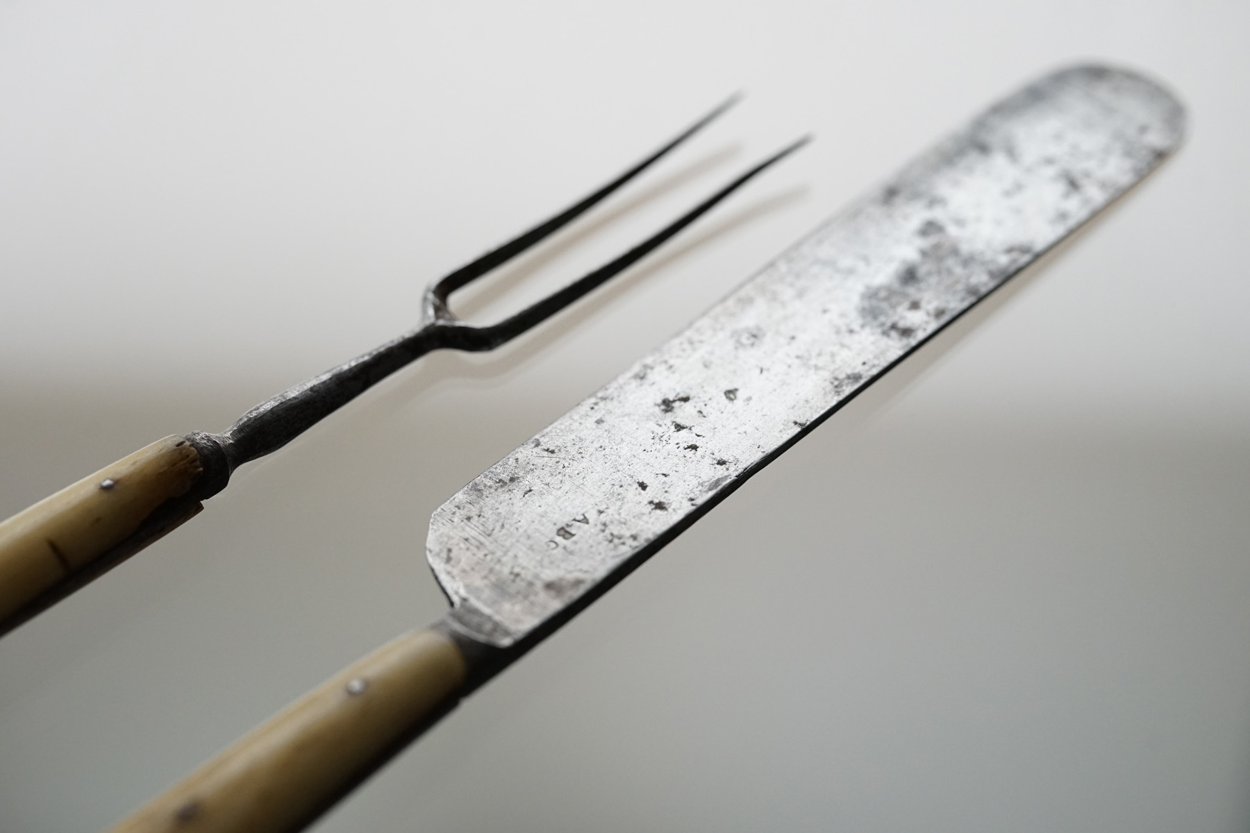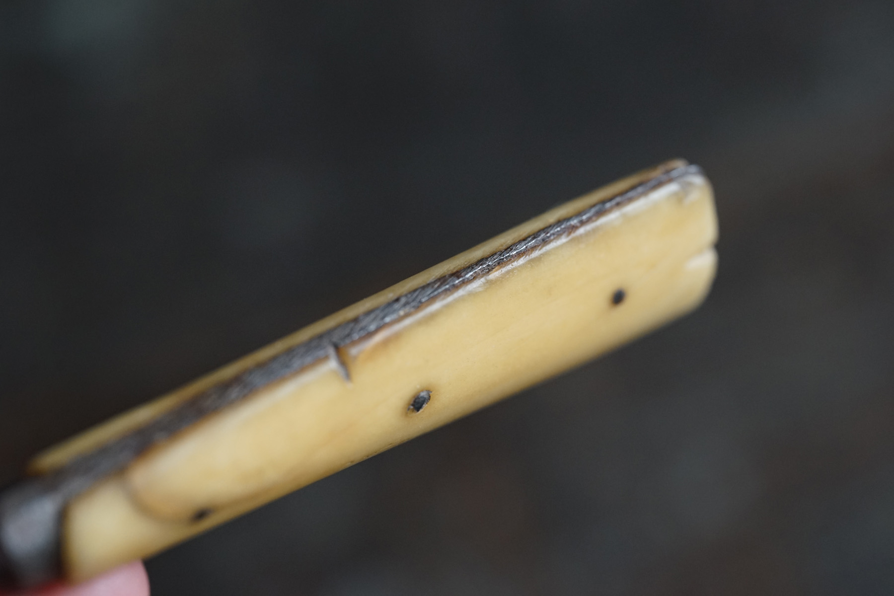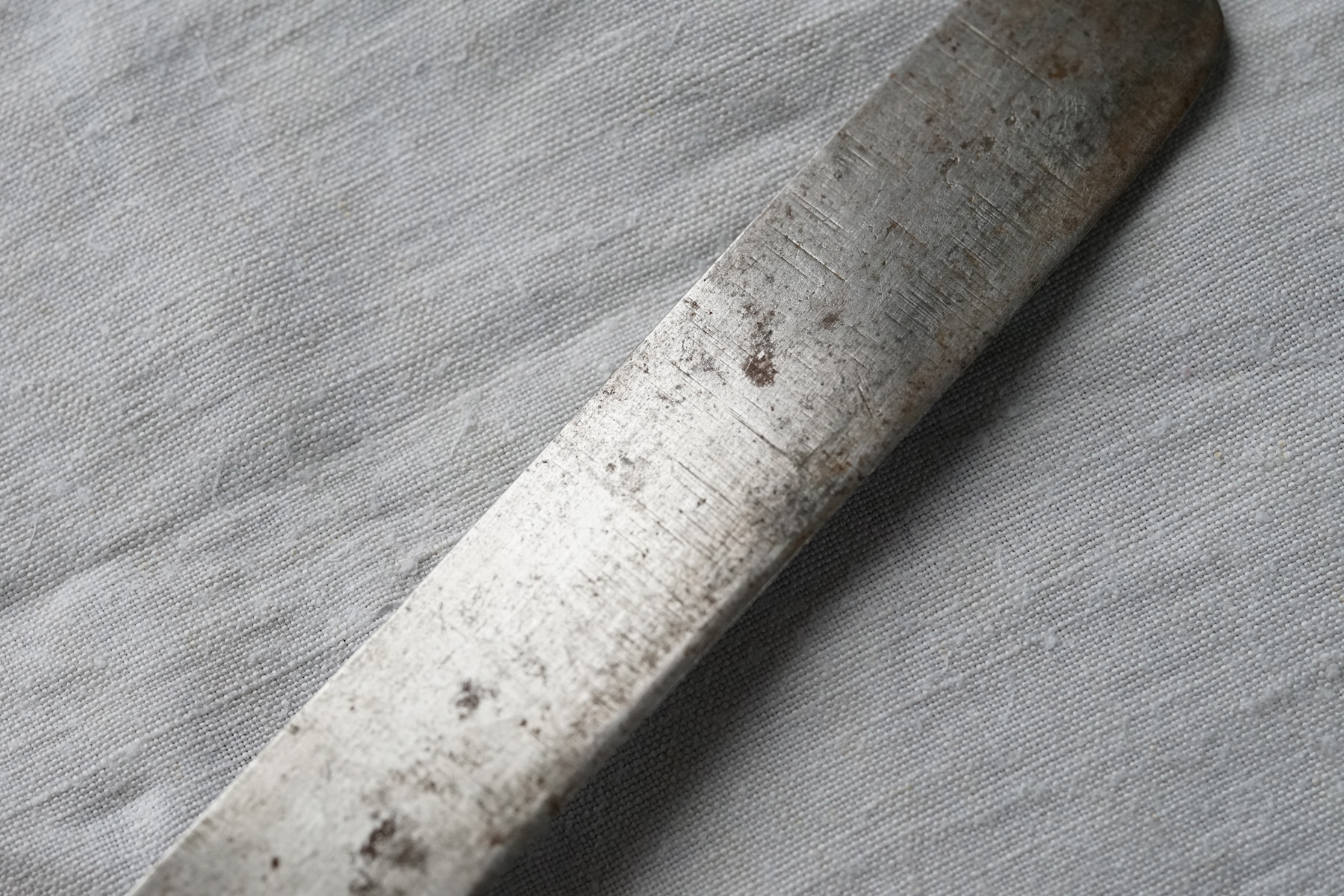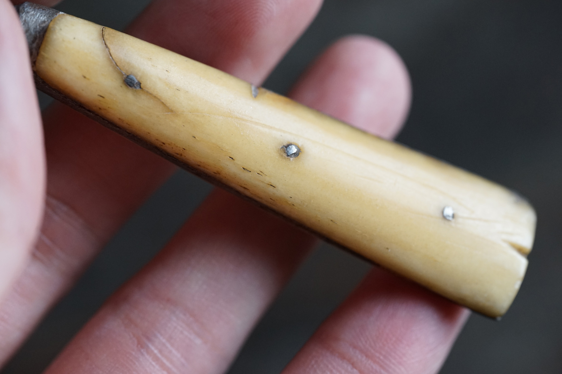19世紀前半の初期のカトラリーはスウェーデンより。三叉になる前のフォーク(170mm)と小振りなホーンハンドル。ナイフ(225mm)のアンバランスさがなんとも愛らしい。在庫複数ございます。
