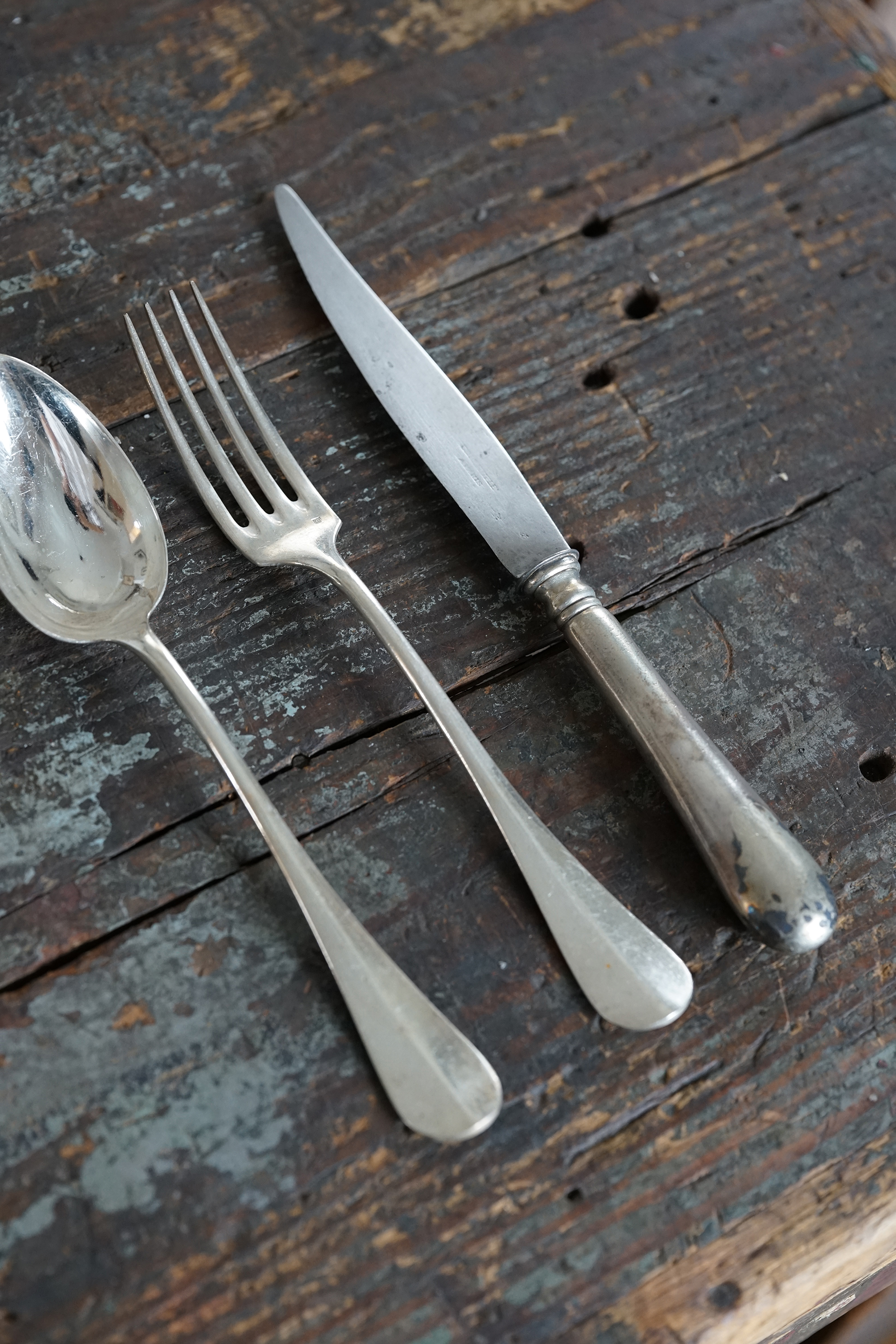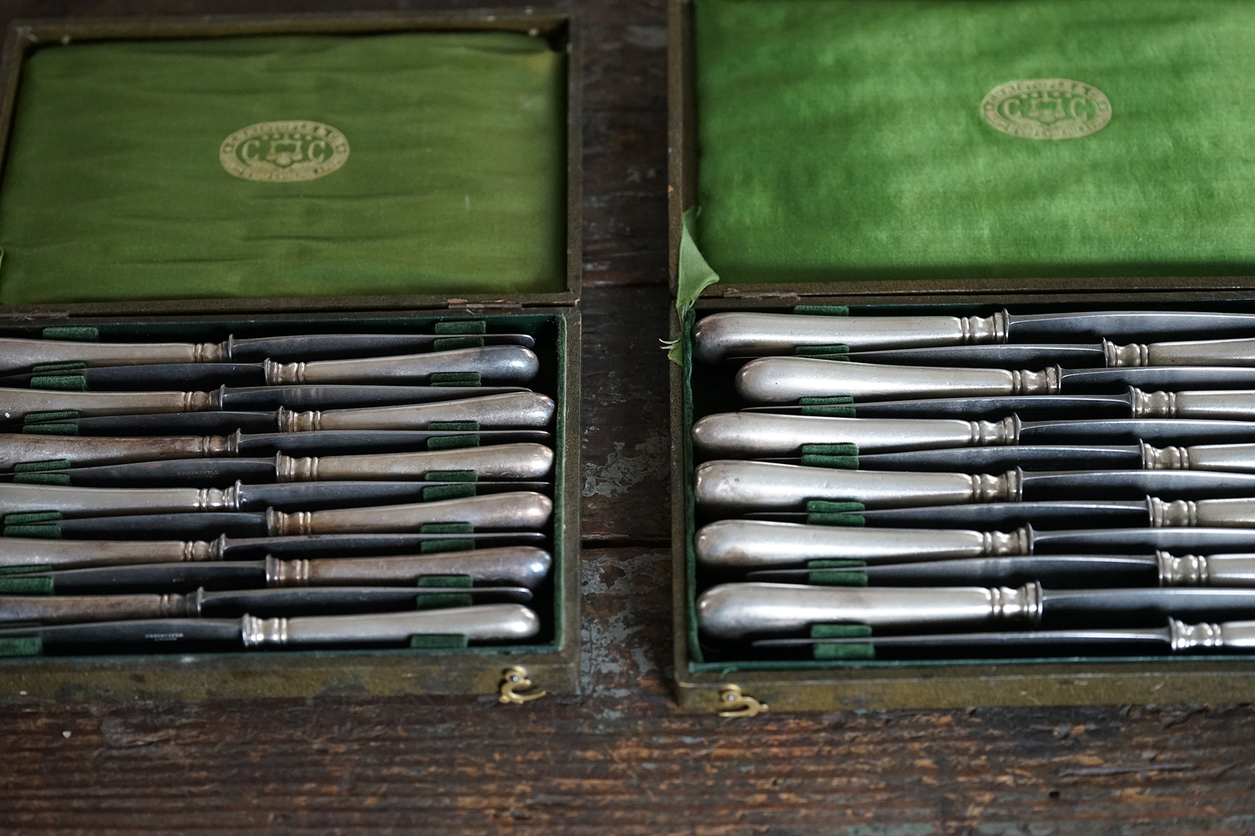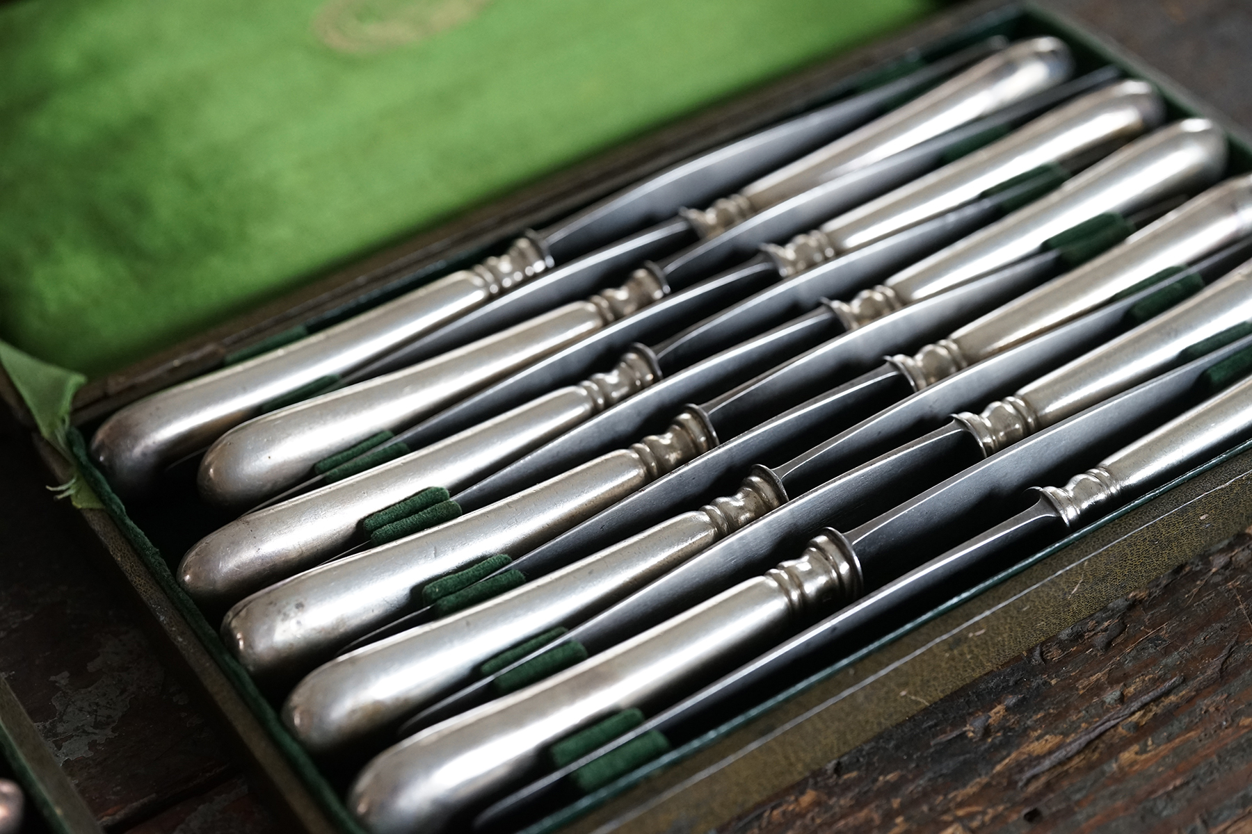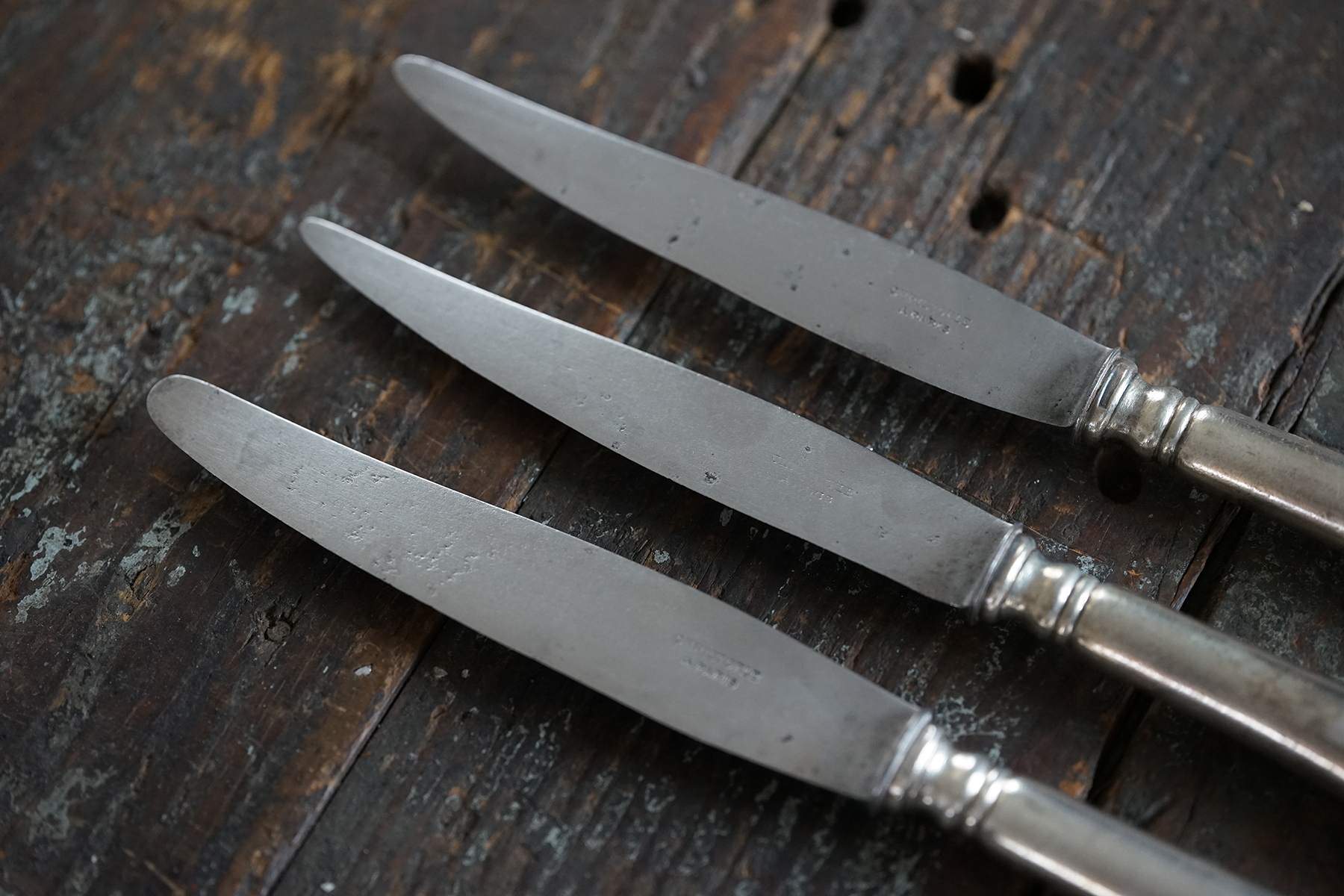 なかなか見つけられないクリストフルの古手のナイフです。取手はシルバープレート、刃は鋼です。 包丁と同じように研げばスパッと切れるかと思います。