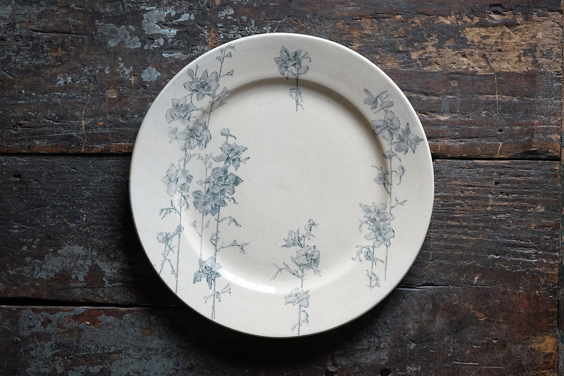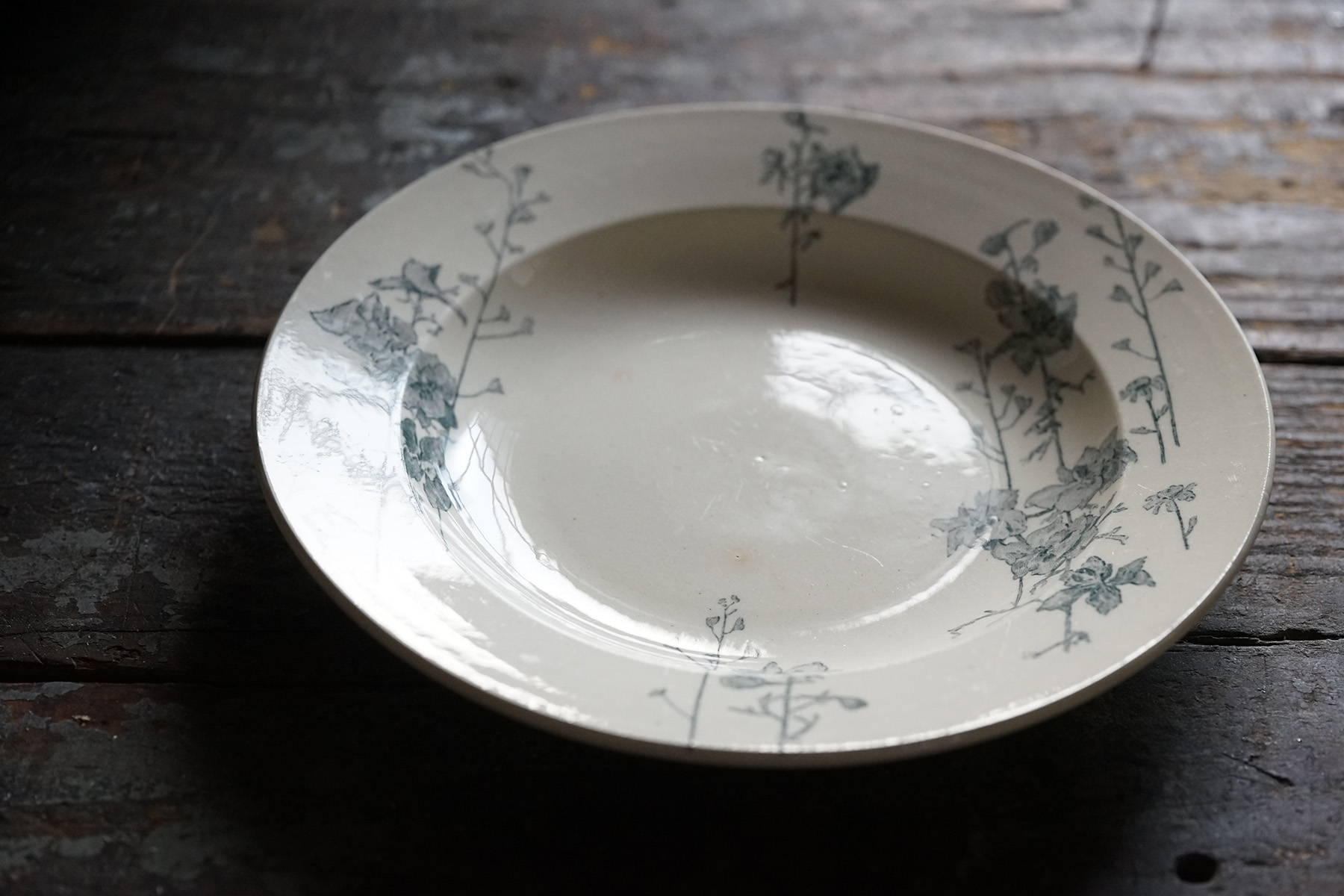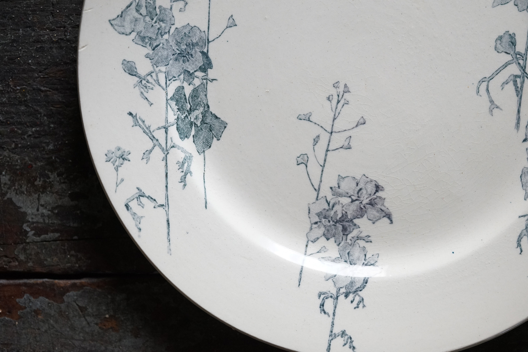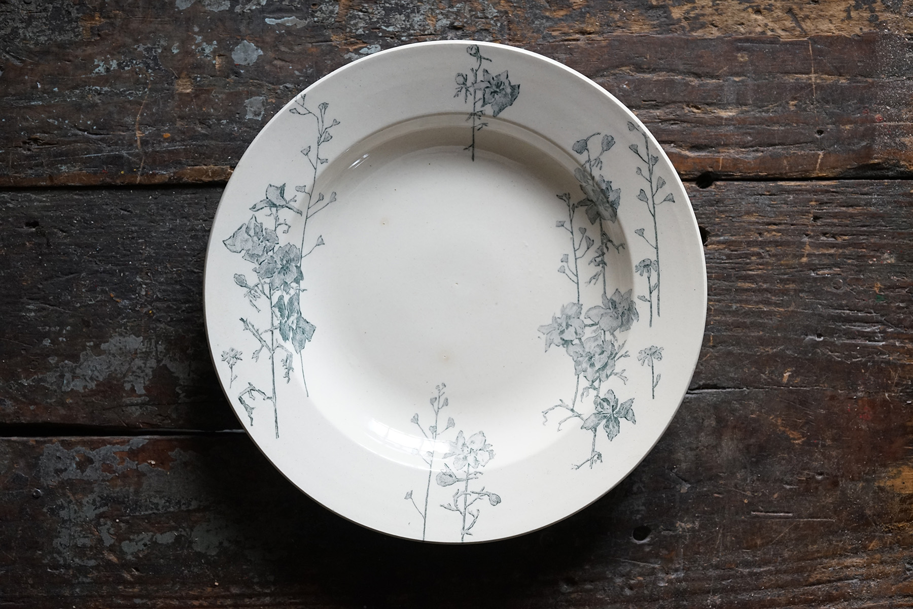 ムスティエ窯 白錫釉 花リム大皿 / 18世紀・フランス