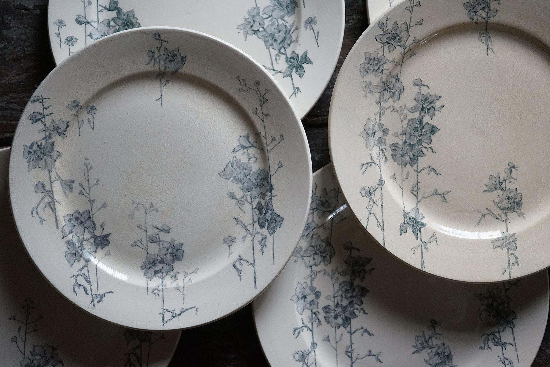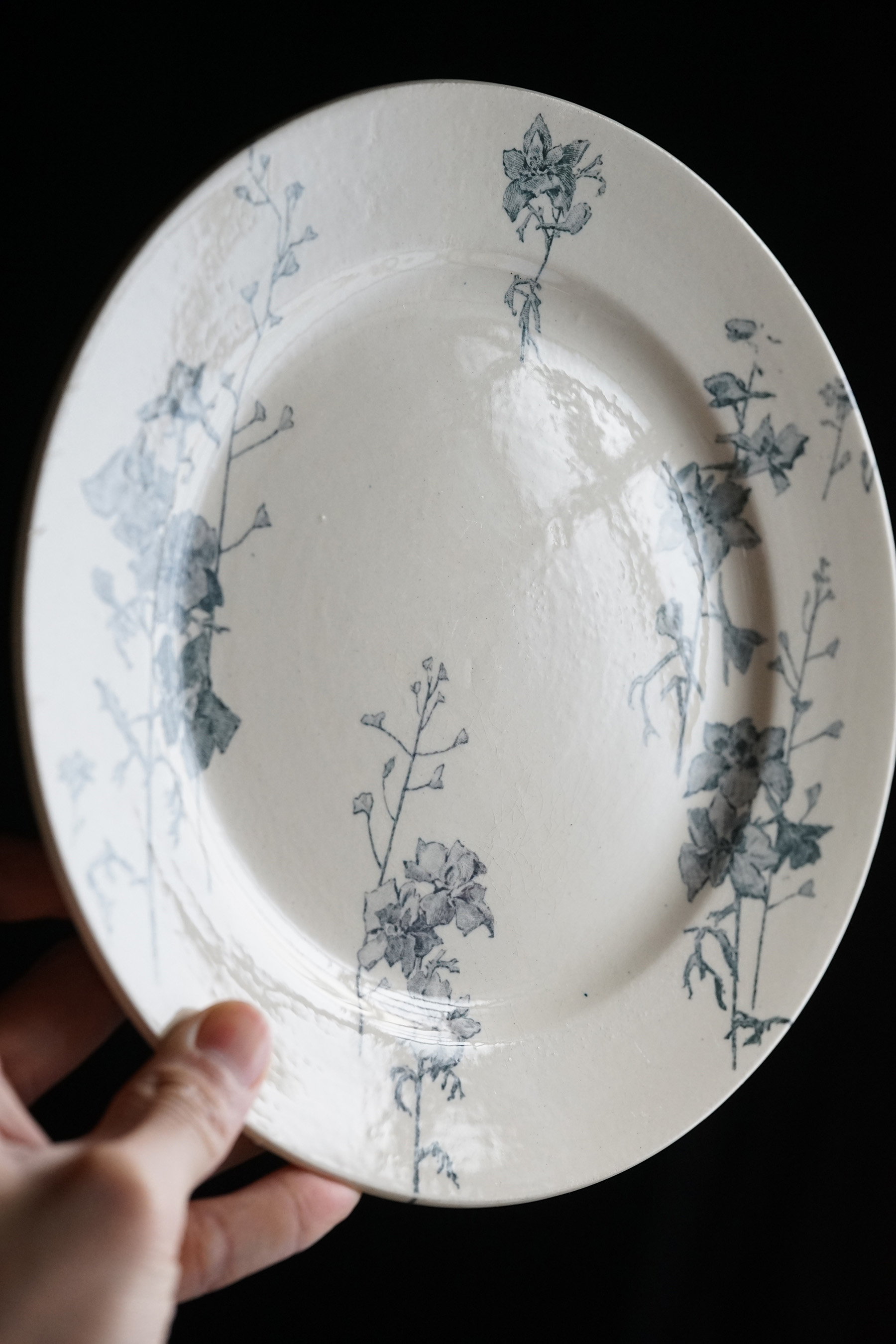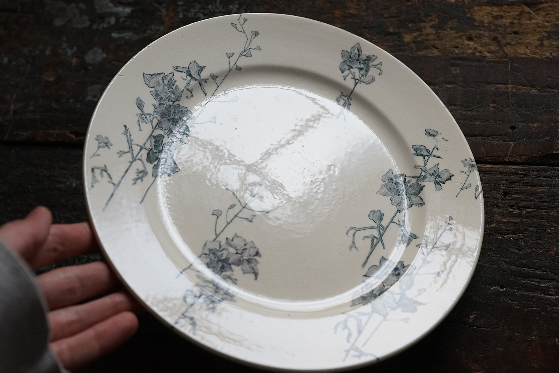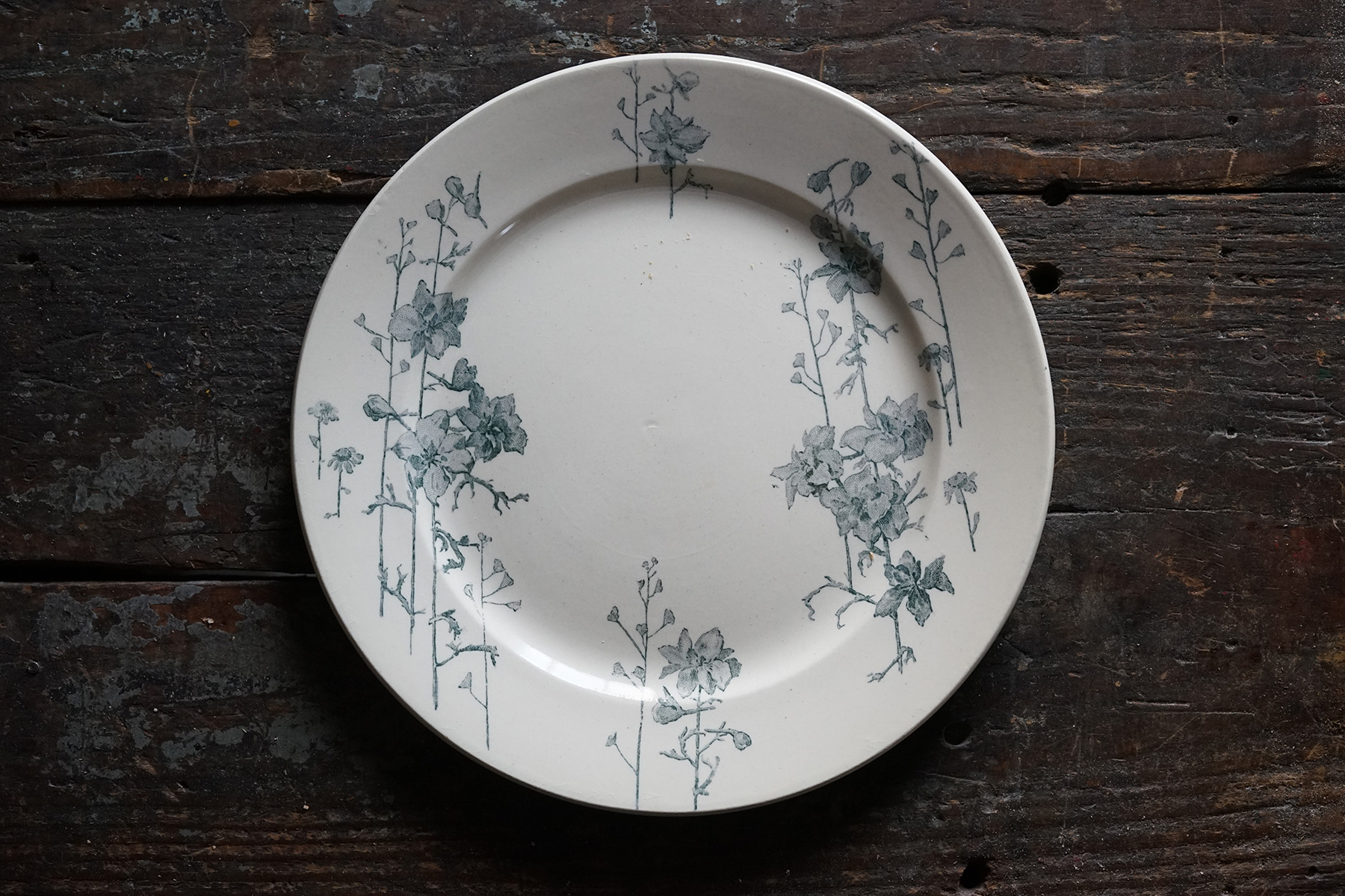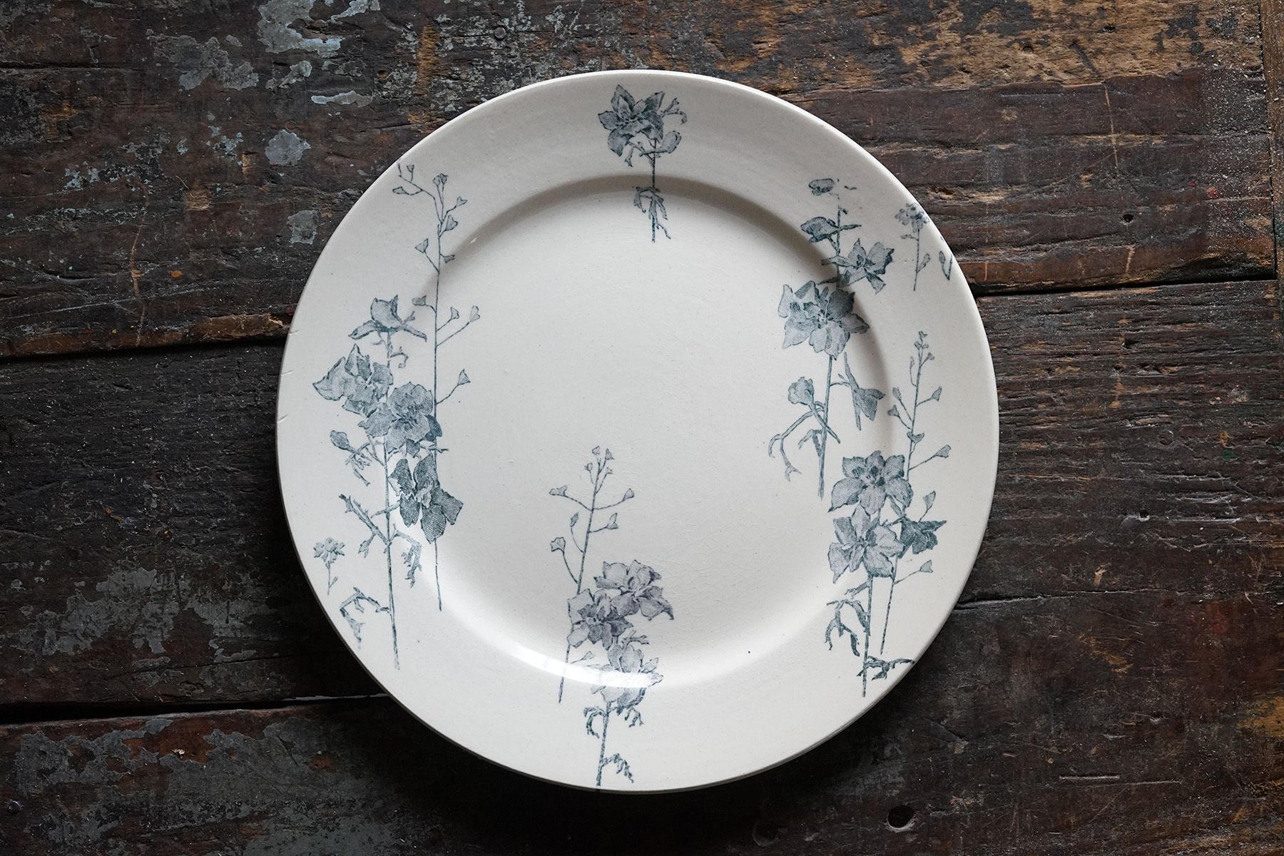 ムスティエ窯 白錫釉 花リム大皿 / 18世紀・フランス