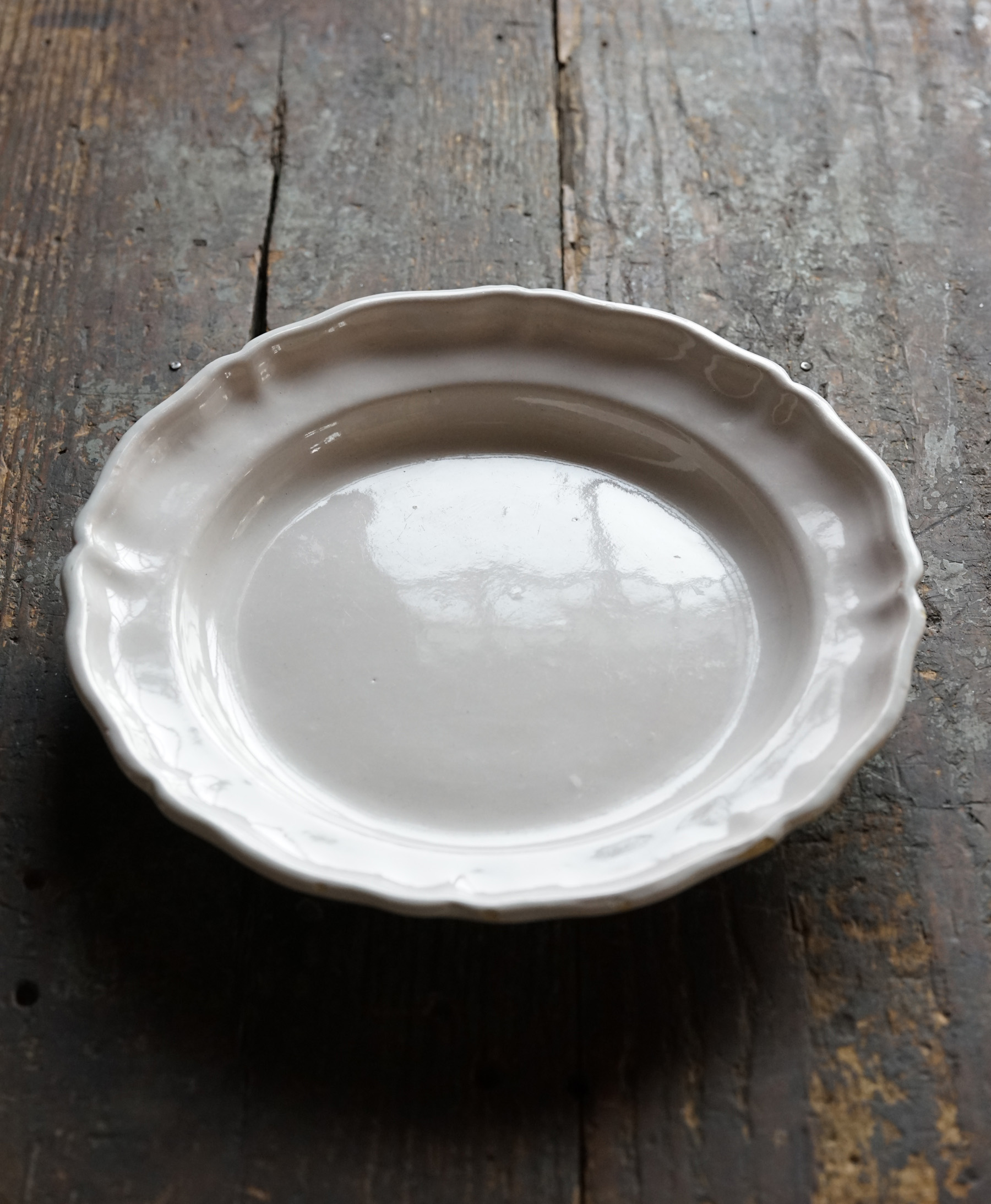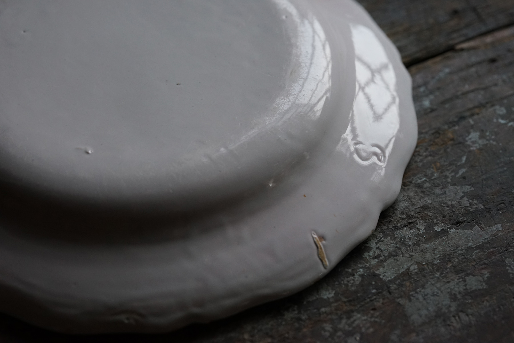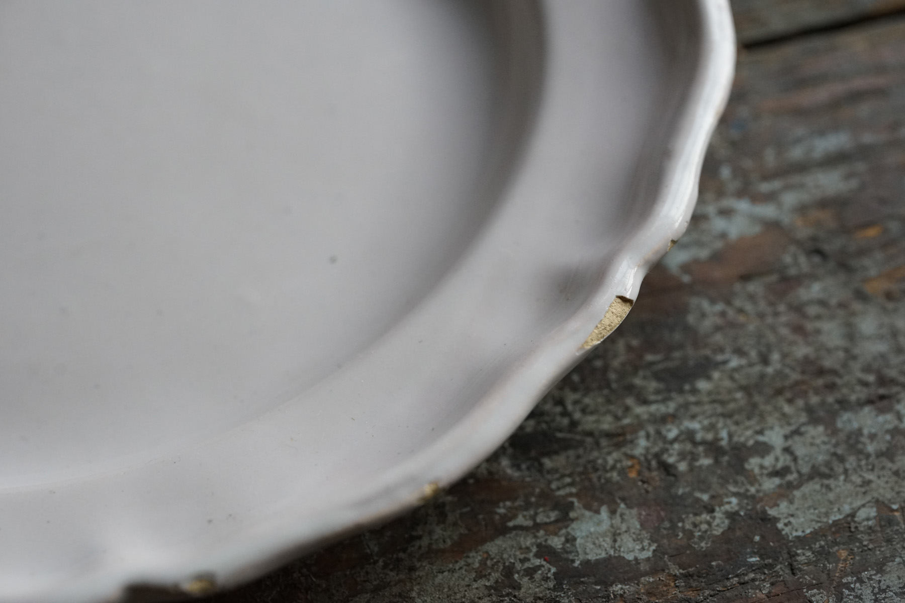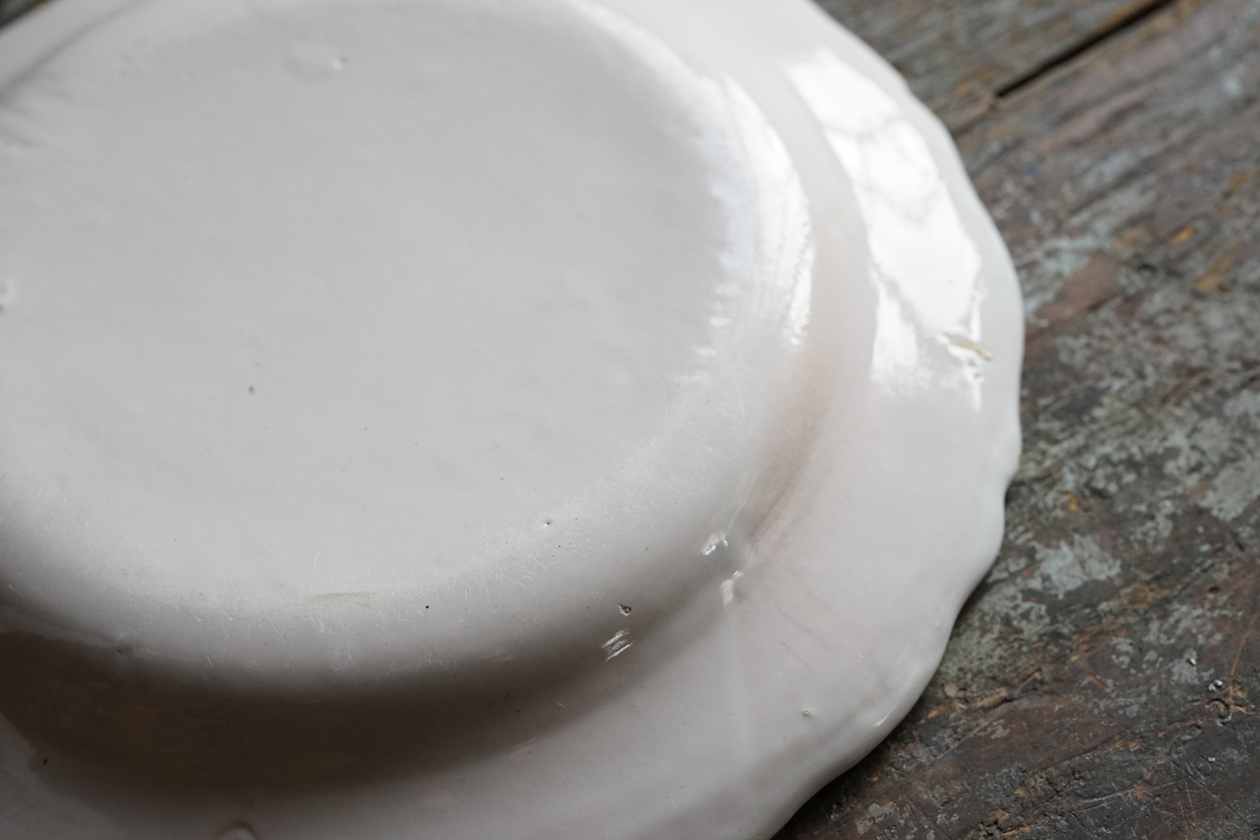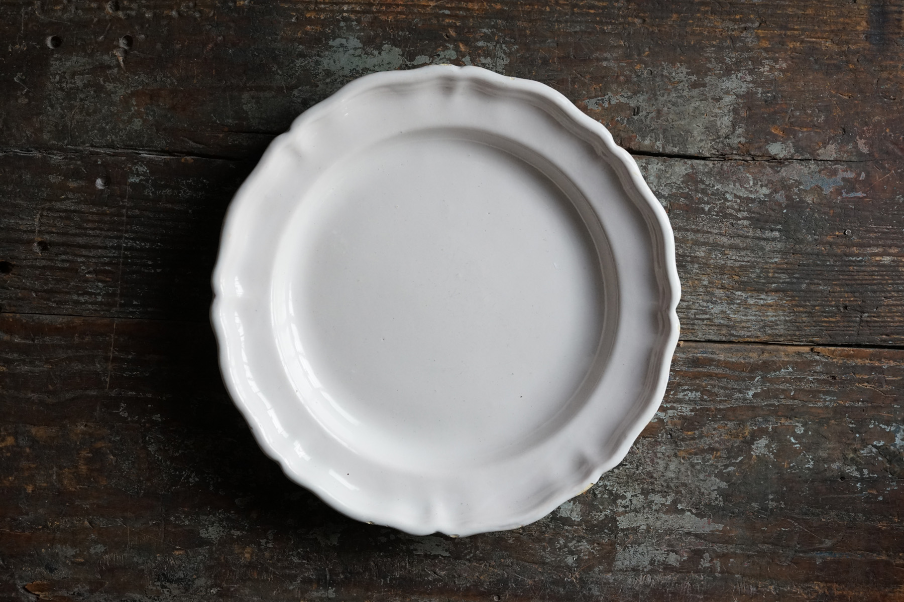 美しい白錫釉。柔らかで、品のある大皿。時代から見ると大変状態良いです。18世紀の十字印。チップや使用キズ等はございます。