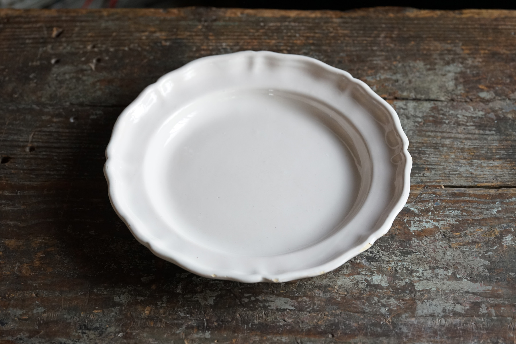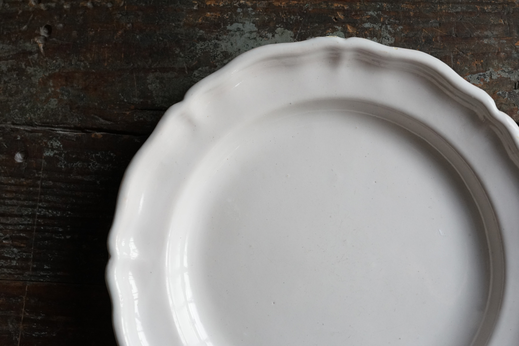 ムスティエ窯 白錫釉 花リム大皿 / 18世紀・フランス