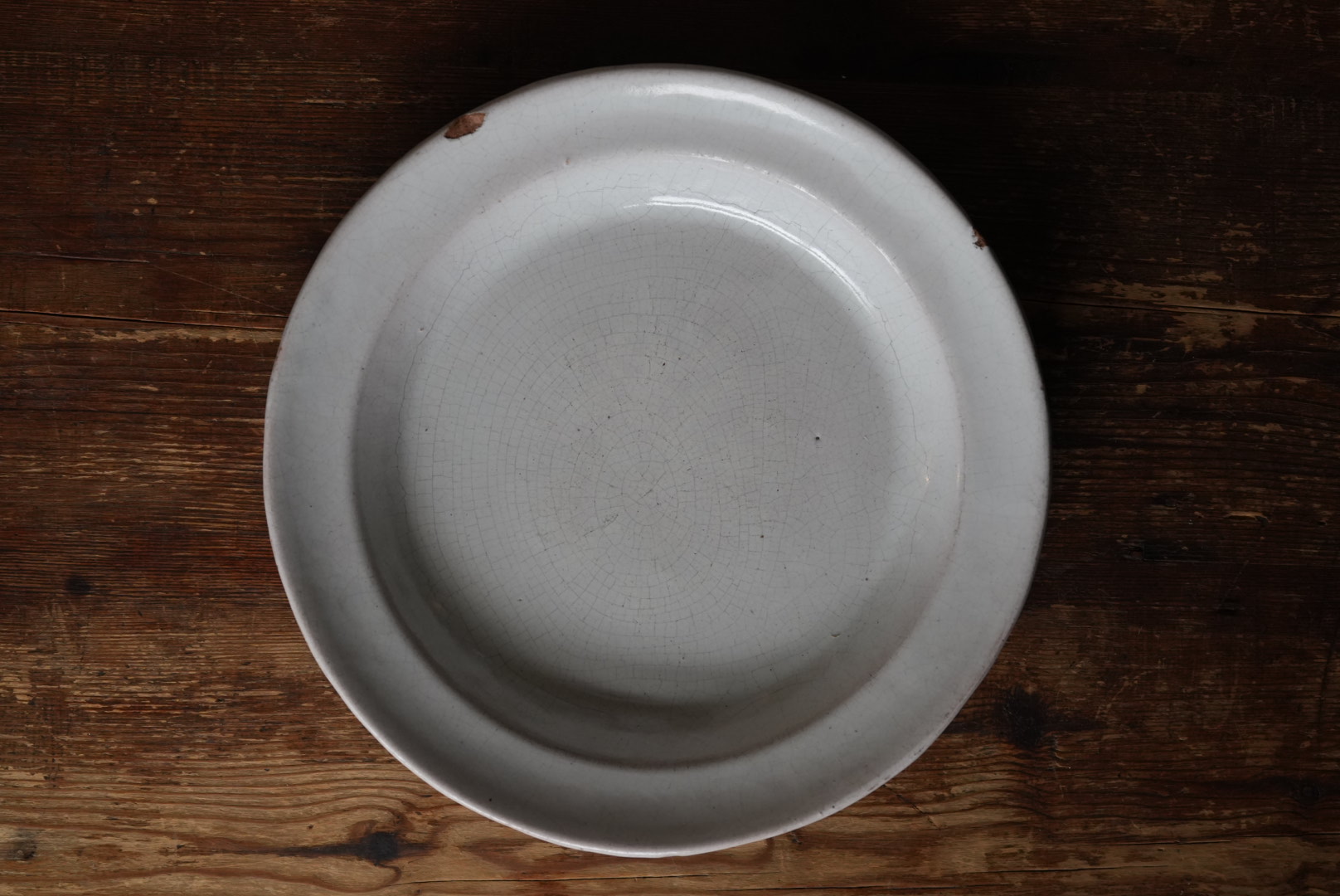オルレアン地方で作られ始め、やがてフランス各地で作られた民陶です。 絵付けのものが多い尻黒(キュ・ノワール)のファイアンス陶器です。 シンプルな平皿も珍しいです。 素朴ながらフランスらしいおおらかさのある器です。 古いものとなりますのでチップや使用キズ等ございます。
