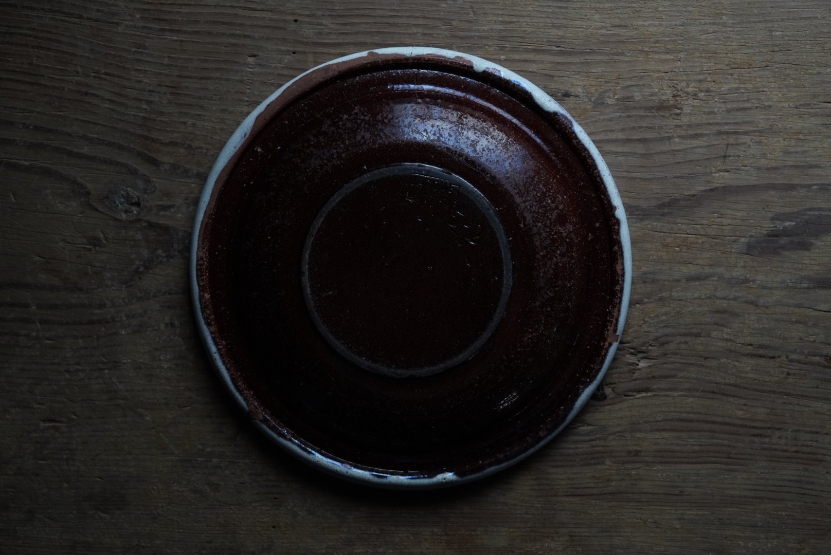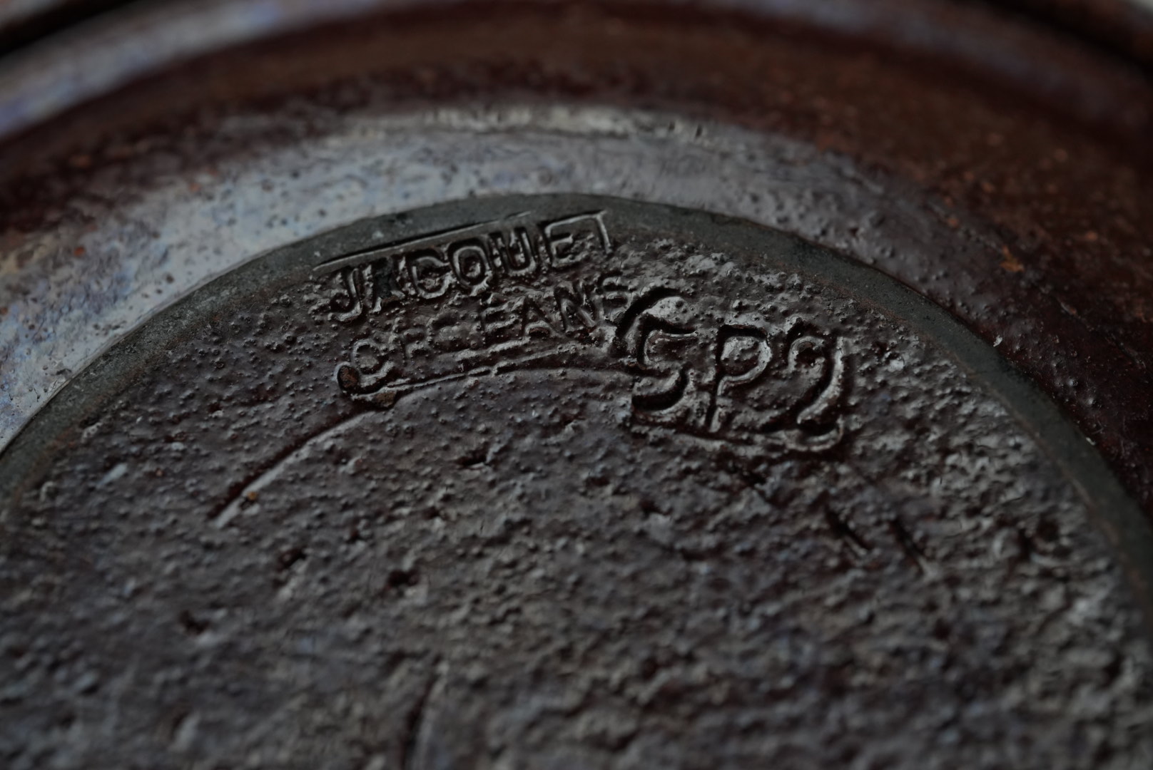 オルレアン地方で作られ始め、やがてフランス各地で作られた民陶です。 絵付けのものが多い尻黒(キュ・ノワール)のファイアンス陶器です。 シンプルな平皿も珍しいです。 素朴ながらフランスらしいおおらかさのある器です。 古いものとなりますのでチップやニュウ、剥がれ、使用キズ等ございます。