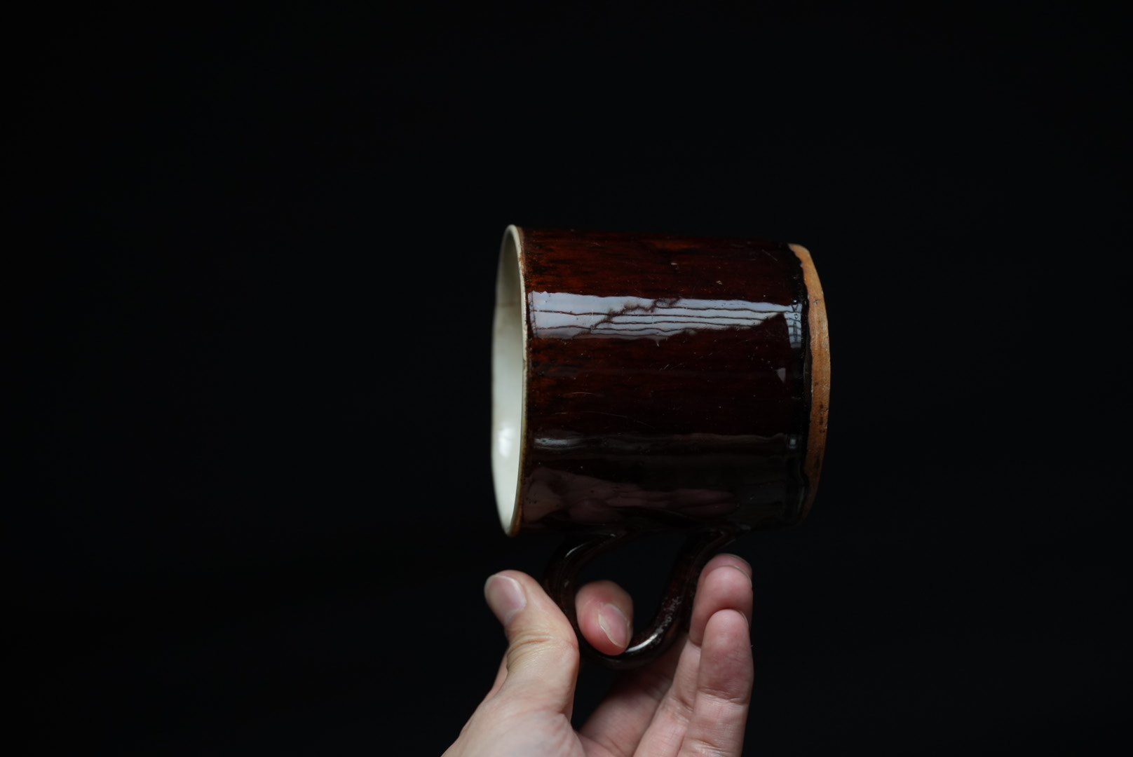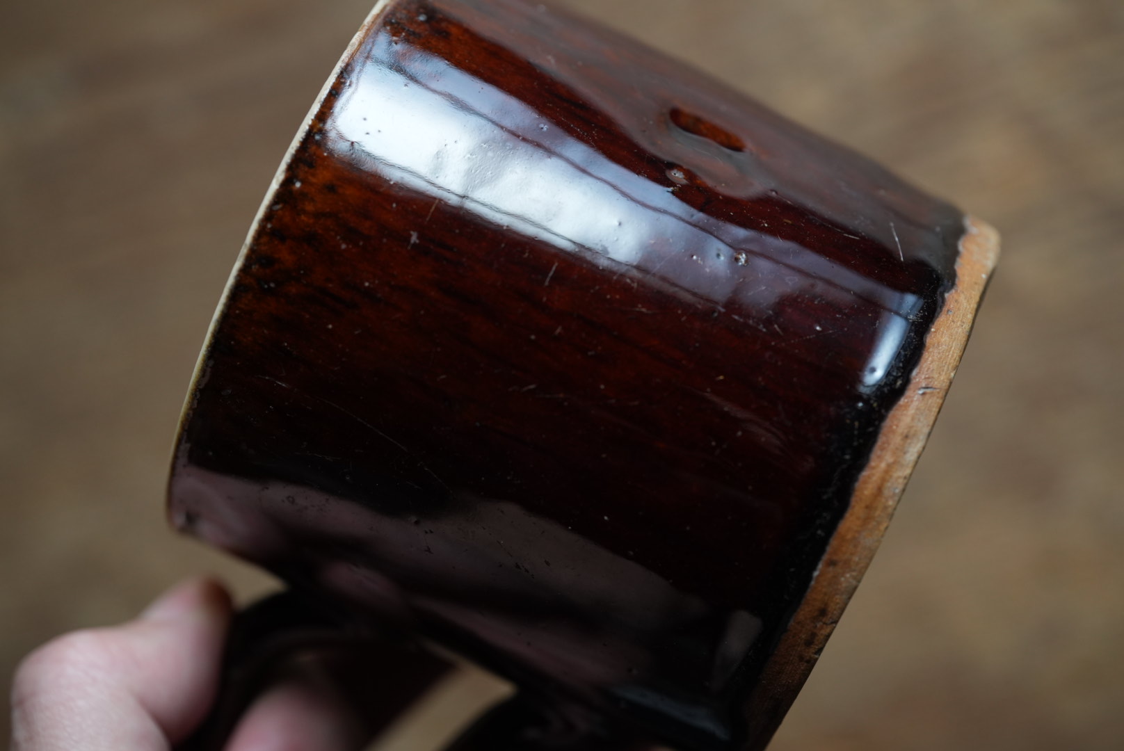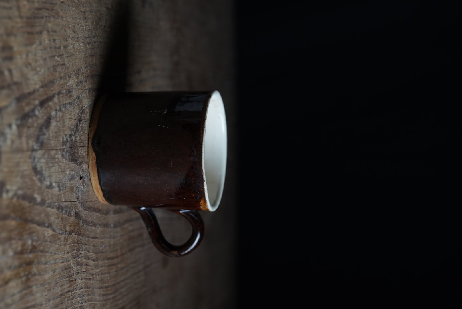 オルレアン地方で作られ始め、やがてフランス各地で作られた民陶です。 絵付けのものが多い尻黒(キュ・ノワール)のファイアンス陶器です。 シードル用と言われているマグも珍しいです。 素朴ながらフランスらしいおおらかさのある器です。 古いものとなりますのでチップやニュウ、使用キズ等ございます。