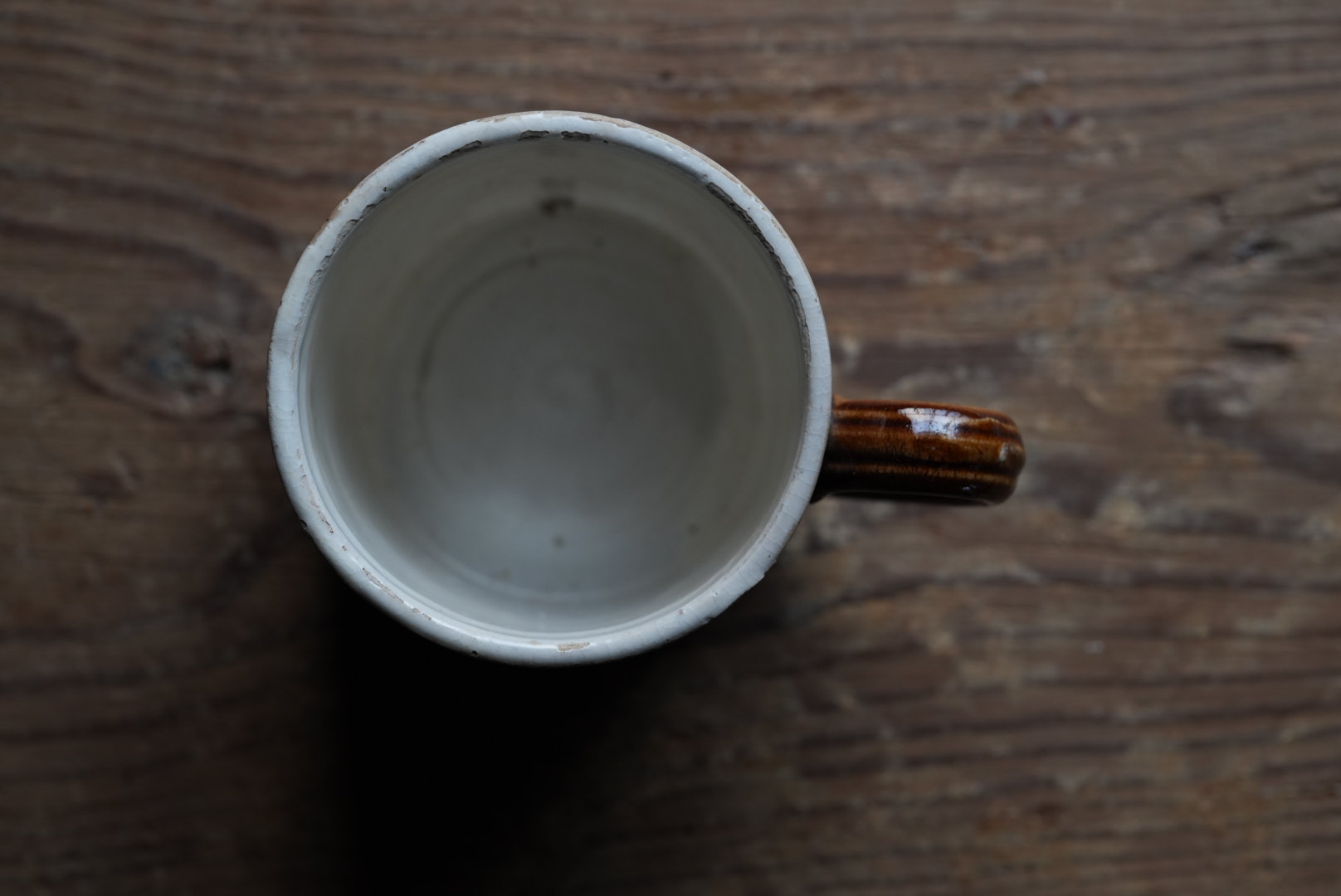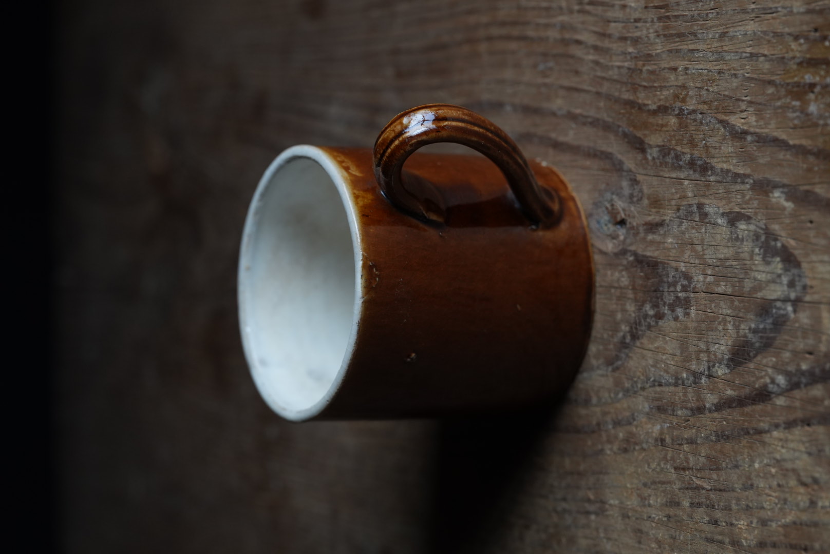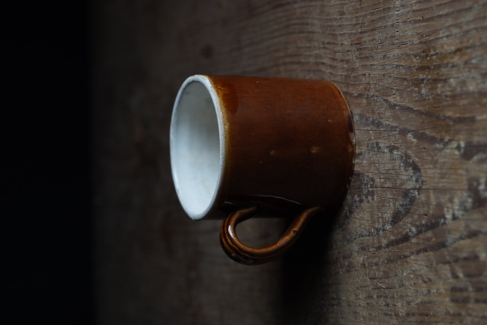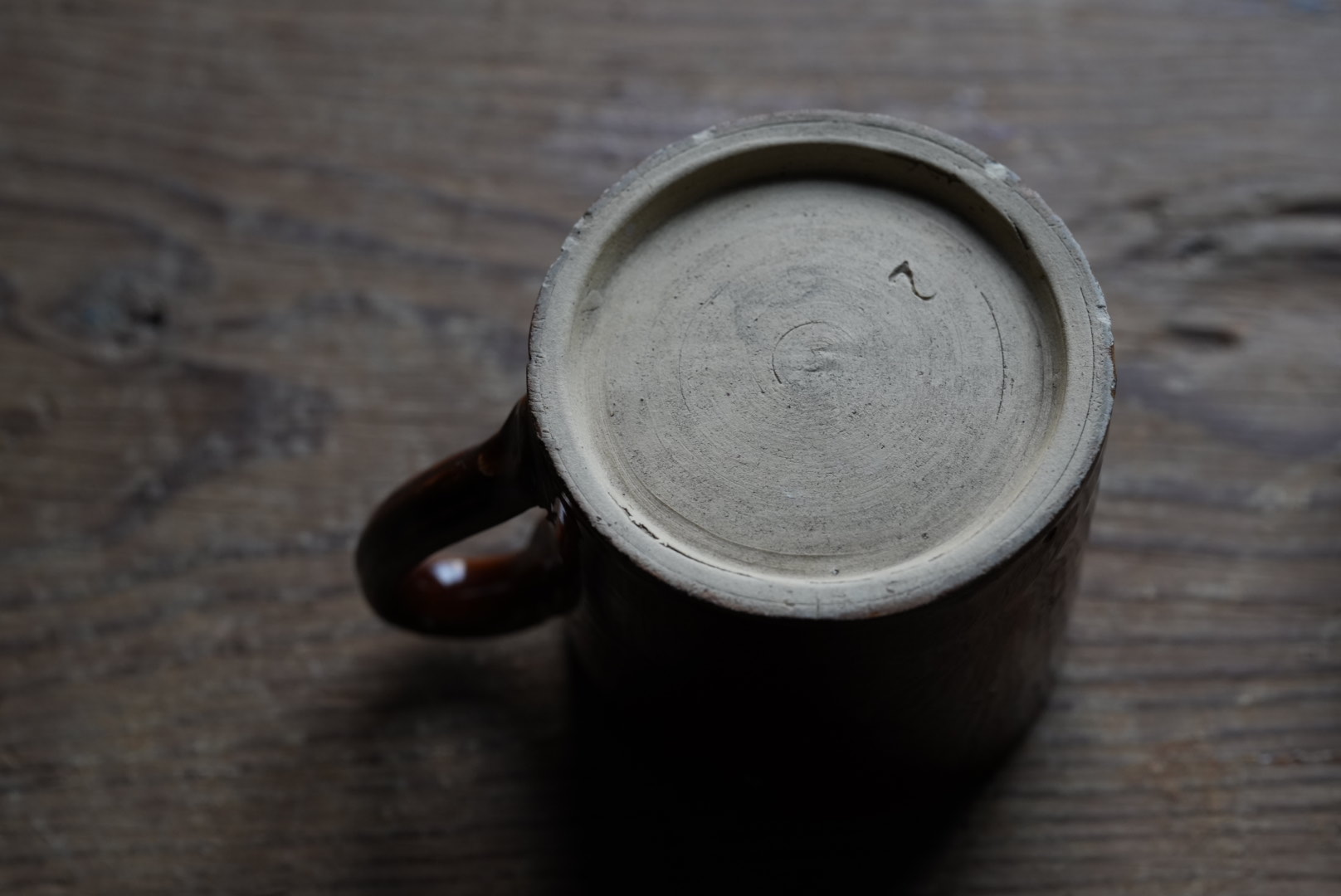 オルレアン地方で作られ始め、やがてフランス各地で作られた民陶です。 絵付けのものが多い尻黒(キュ・ノワール)のファイアンス陶器です。 シードル用と言われているマグも珍しいです。 素朴ながらフランスらしいおおらかさのある器です。 古いものとなりますのでチップや使用キズ等ございます。