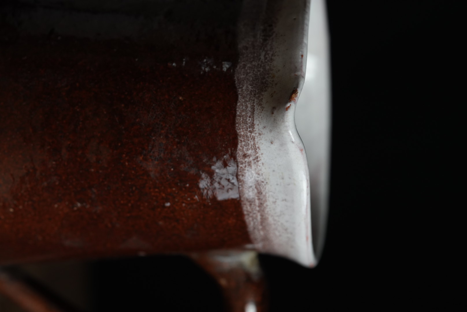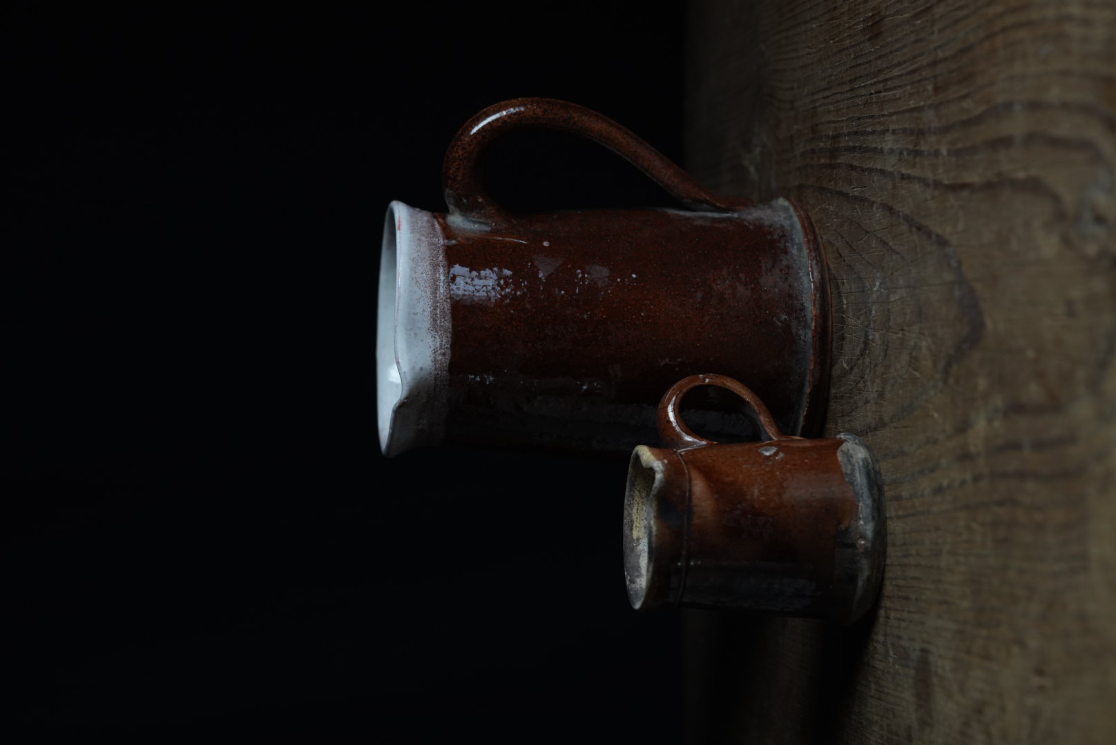 オルレアン地方で作られ始め、やがてフランス各地で作られた民陶です。 絵付けのものが多い尻黒(キュ・ノワール)のファイアンス陶器です。 大きめの手付きピッチャーも珍しいです。 カトラリー入れや花入にも良さそうです。 素朴ながらフランスらしいおおらかさのある器です。