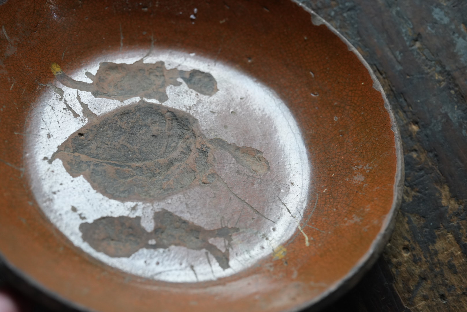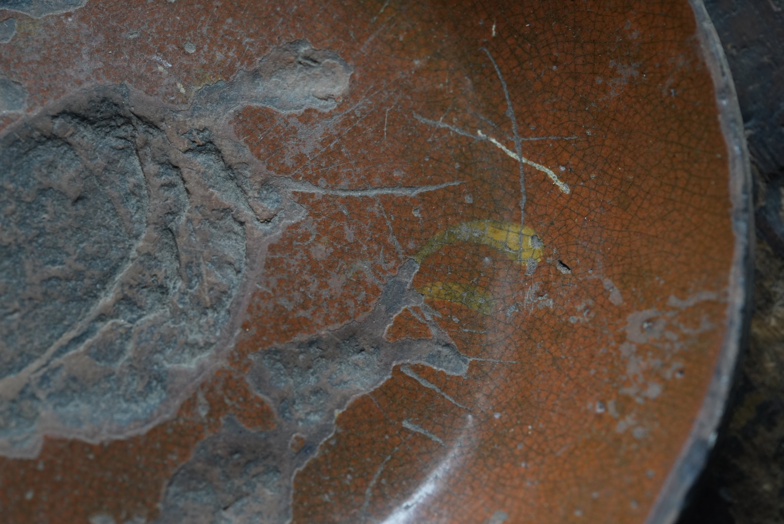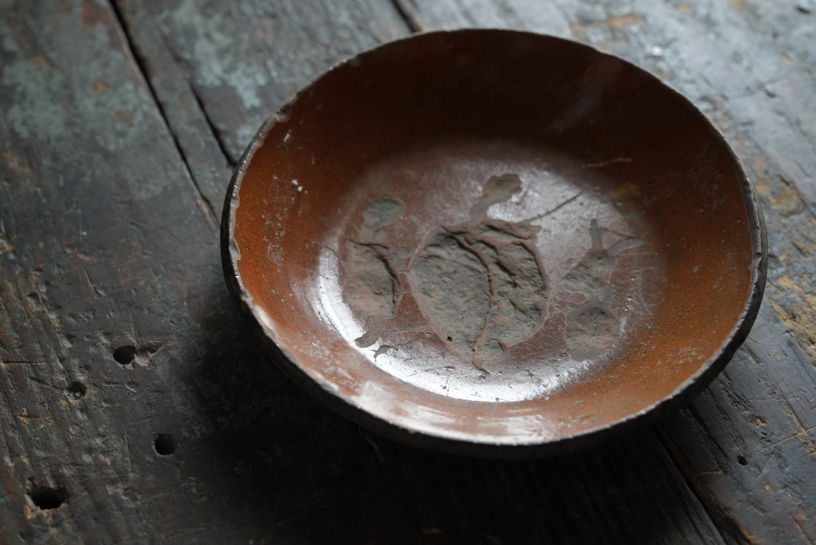 アメリカ北東部ペンシルベニアのレッドウェアのパイ皿です。 小振りなサイズです。見込みに剥がれがあります。 わずかにスリップの残りが見られます。 アーミッシュも住むランカスターのもので、落ち着いた雰囲気は和食にも合う器と思います。