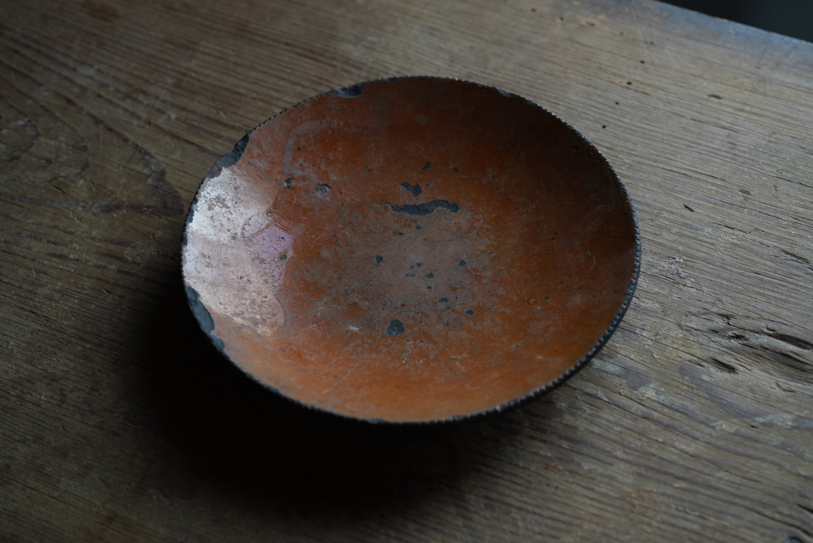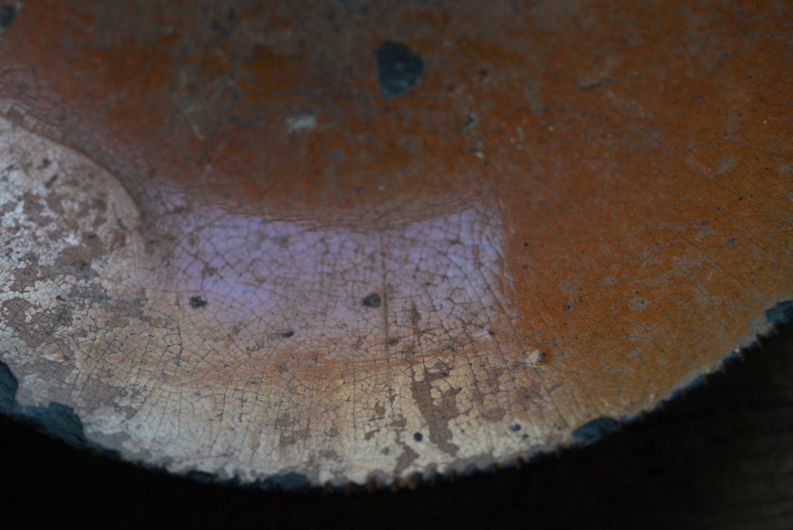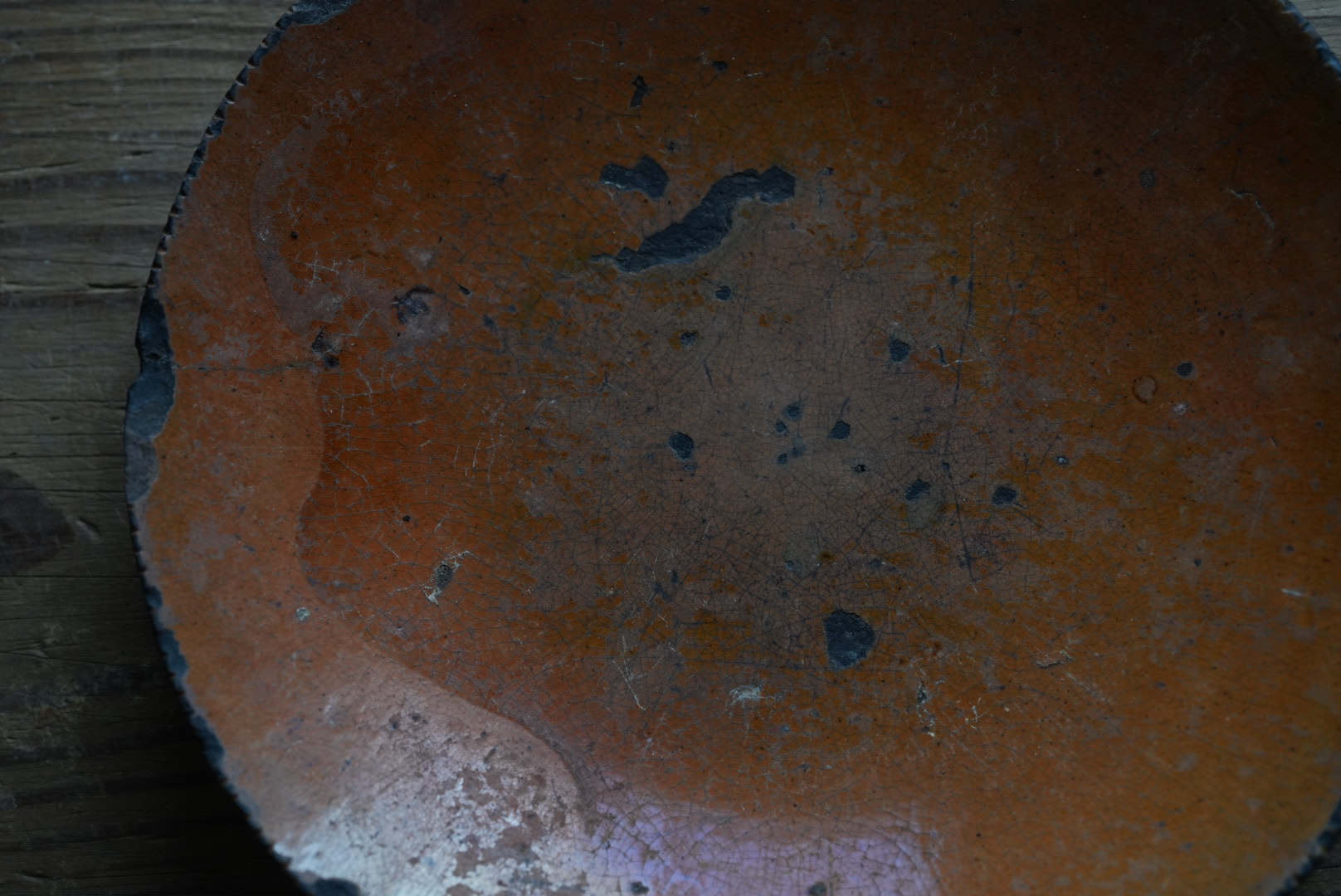 使い込まれた程よいサイズの丸皿。 アメリカ北東部ペンシルベニアのレッドウェアのパイ皿です。 落ち着いた風合いの色調に、裏の表情も美しいです。 アーミッシュも住むランカスターのもので、落ち着いた雰囲気は和食にも合う器と思います。 使われてきた古いものですので欠けや使用キズ等はございます。