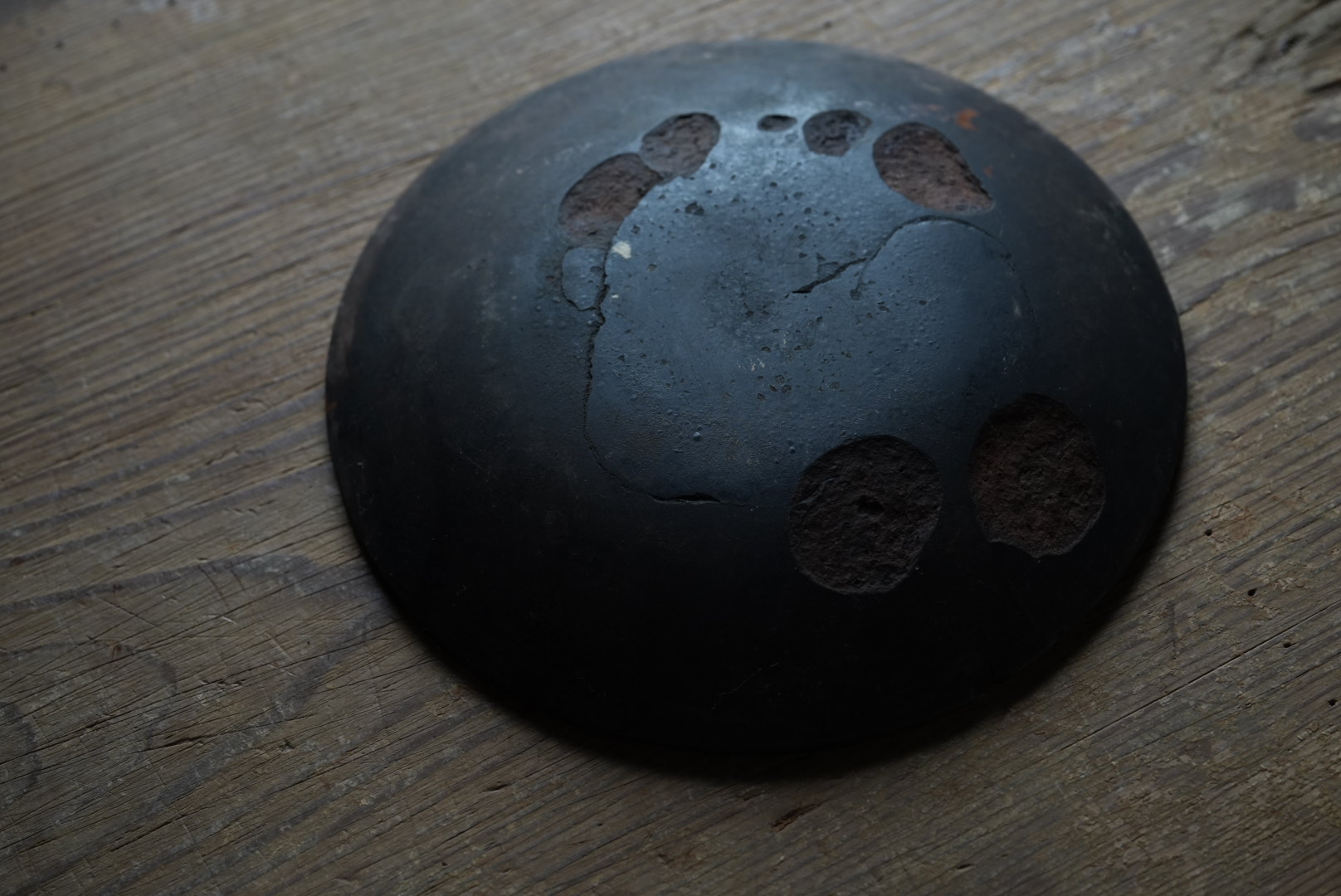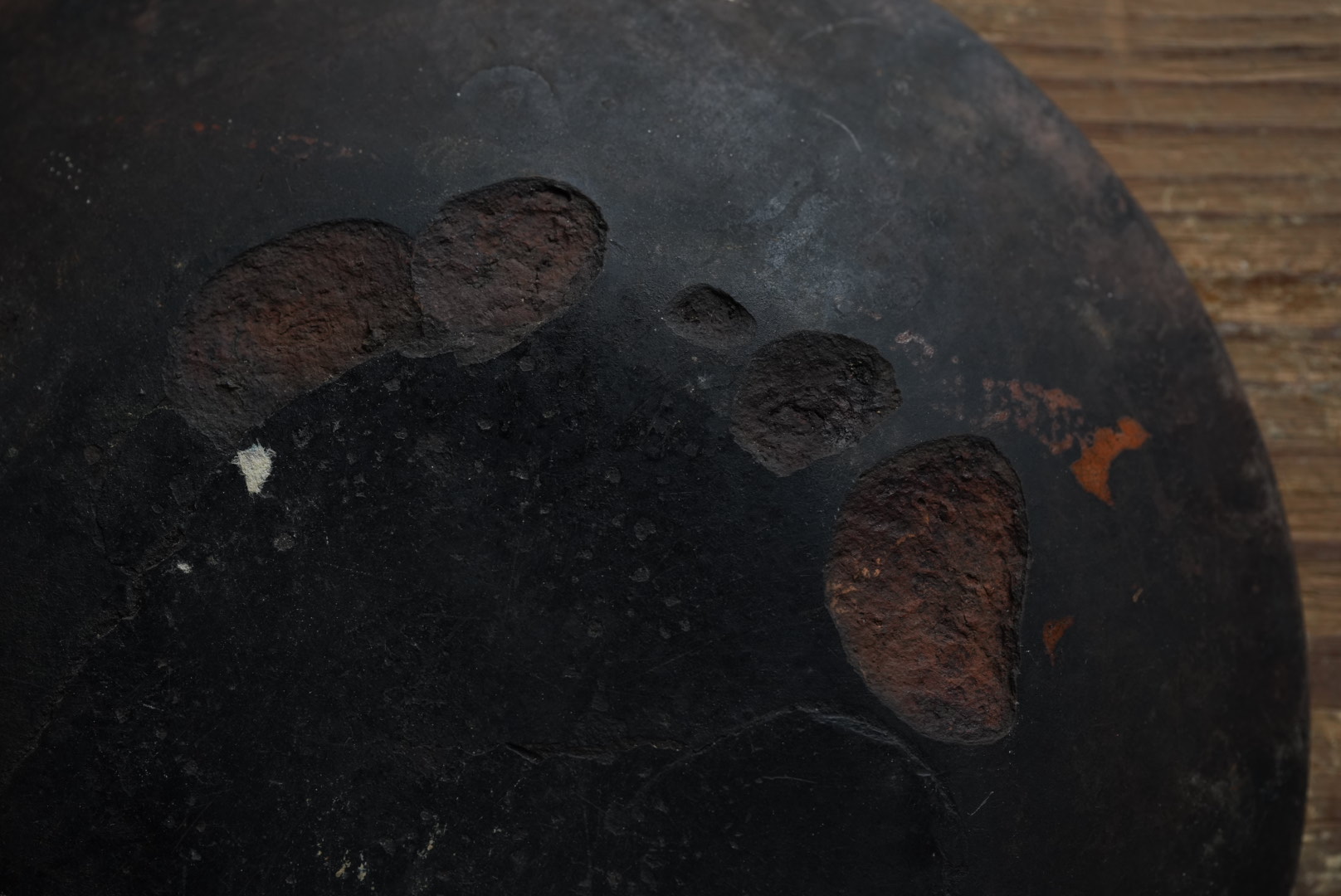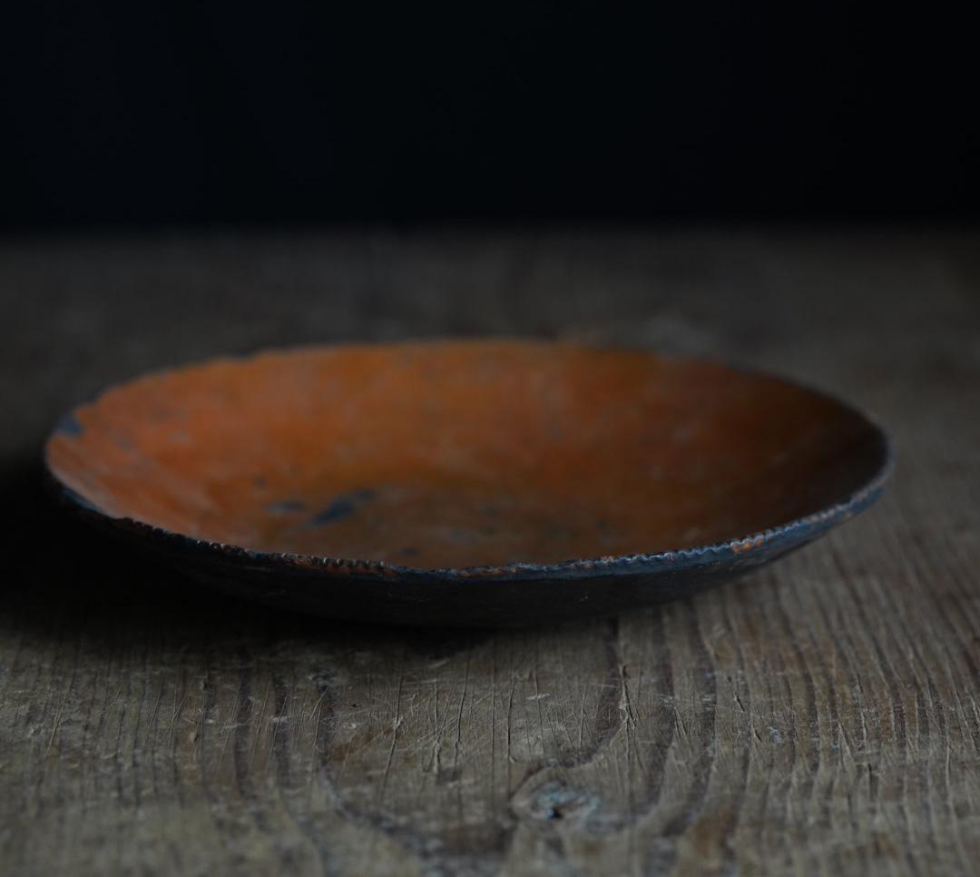 使い込まれた程よいサイズの丸皿。 アメリカ北東部ペンシルベニアのレッドウェアのパイ皿です。 落ち着いた風合いの色調に、裏の表情も美しいです。 アーミッシュも住むランカスターのもので、落ち着いた雰囲気は和食にも合う器と思います。 使われてきた古いものですので欠けや使用キズ等はございます。