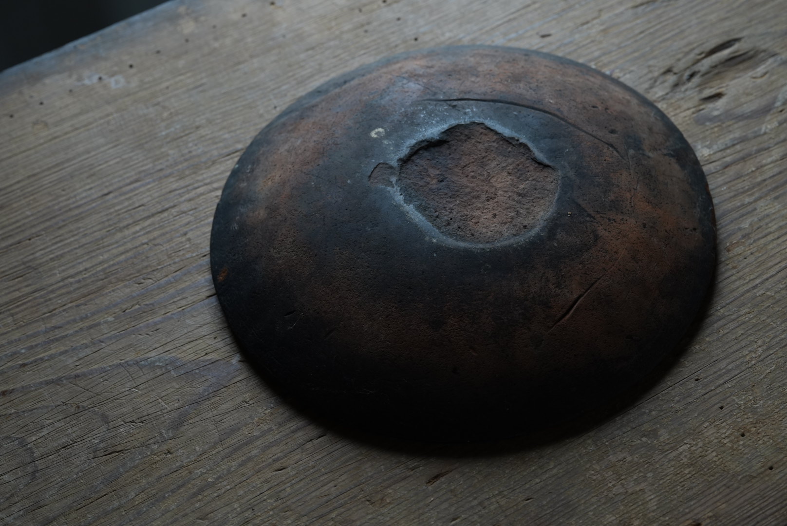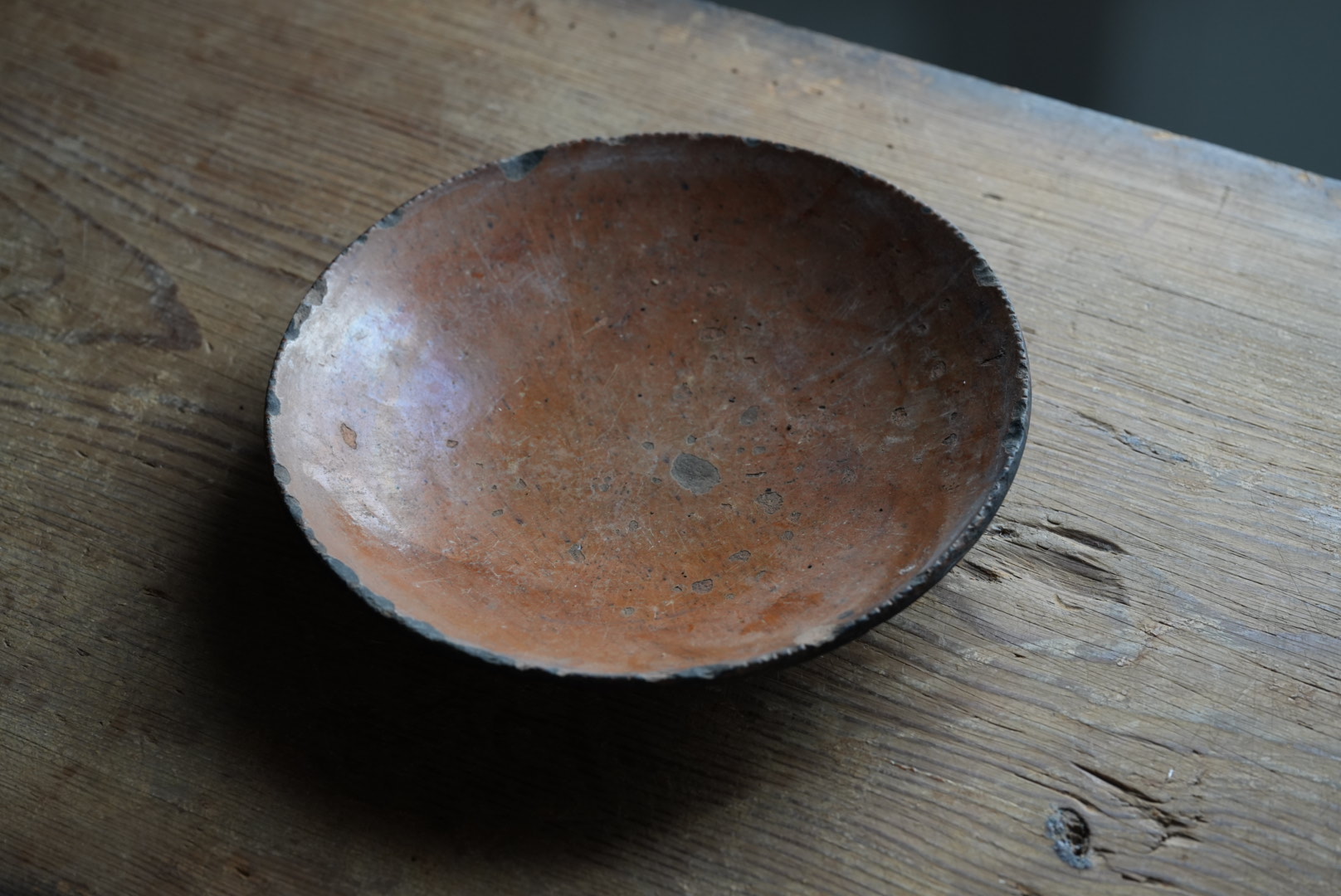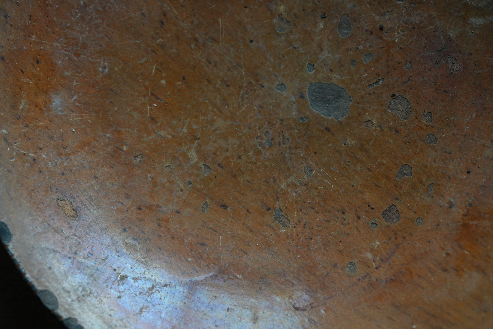 使い込まれた程よいサイズの丸皿。 アメリカ北東部ペンシルベニアのレッドウェアのパイ皿です。 落ち着いた風合いの色調に、裏の表情も美しいです。 アーミッシュも住むランカスターのもので、落ち着いた雰囲気は和食にも合う器と思います。 使われてきた古いものですので欠けや使用キズ等はございます。