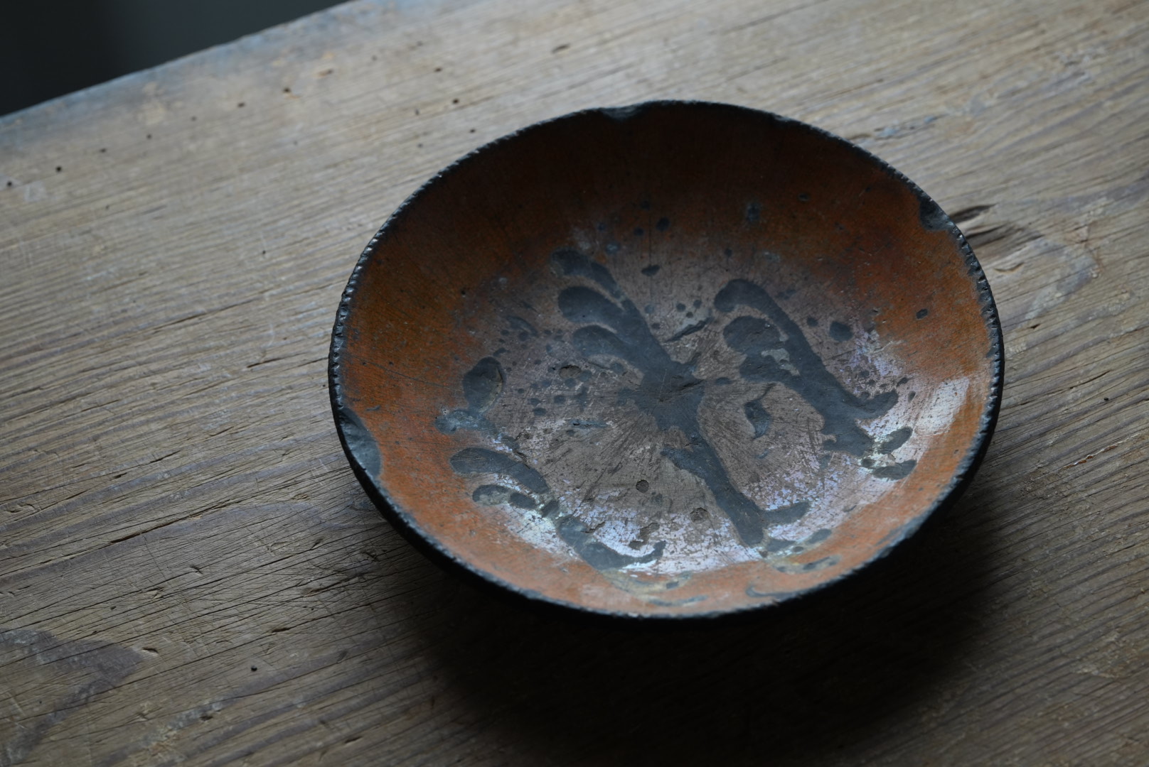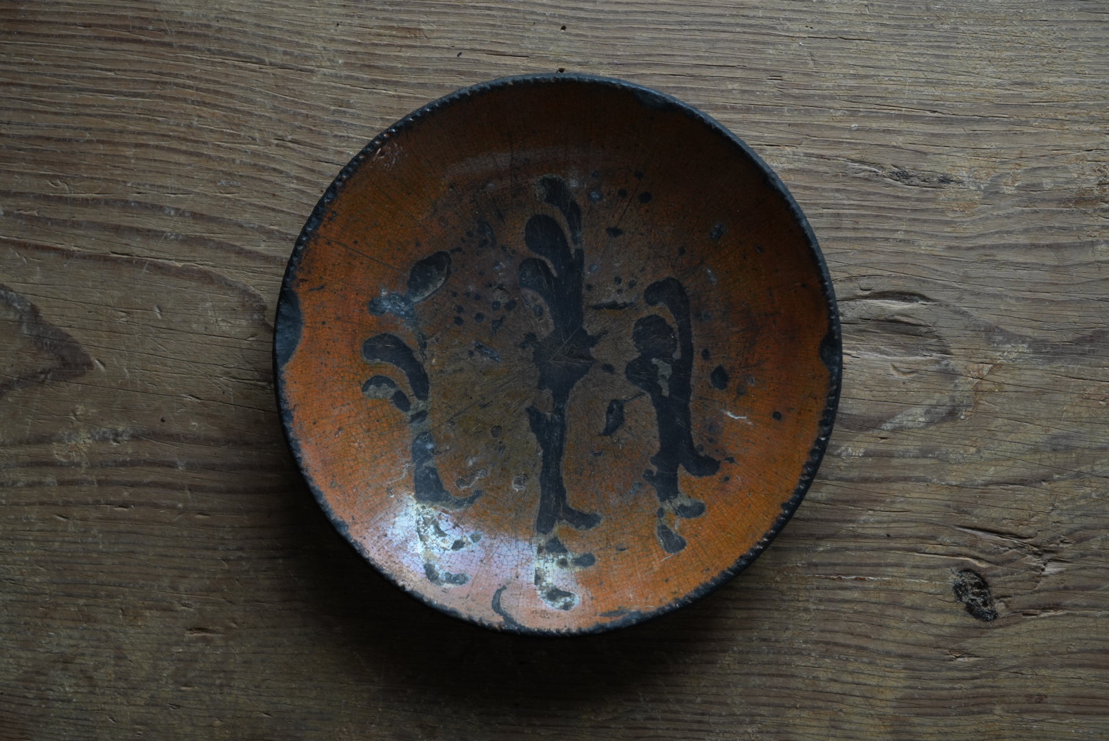 使い込まれた程よいサイズのスリップ丸皿。