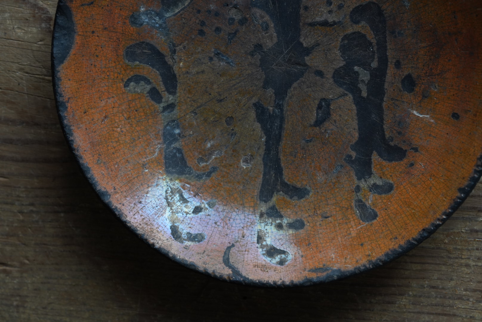スリップの化粧土が剥がれ、胎土が模様となっています。