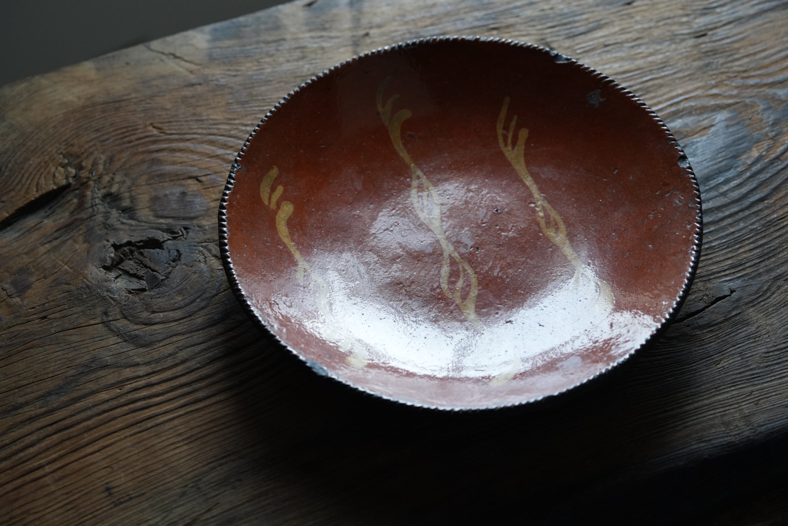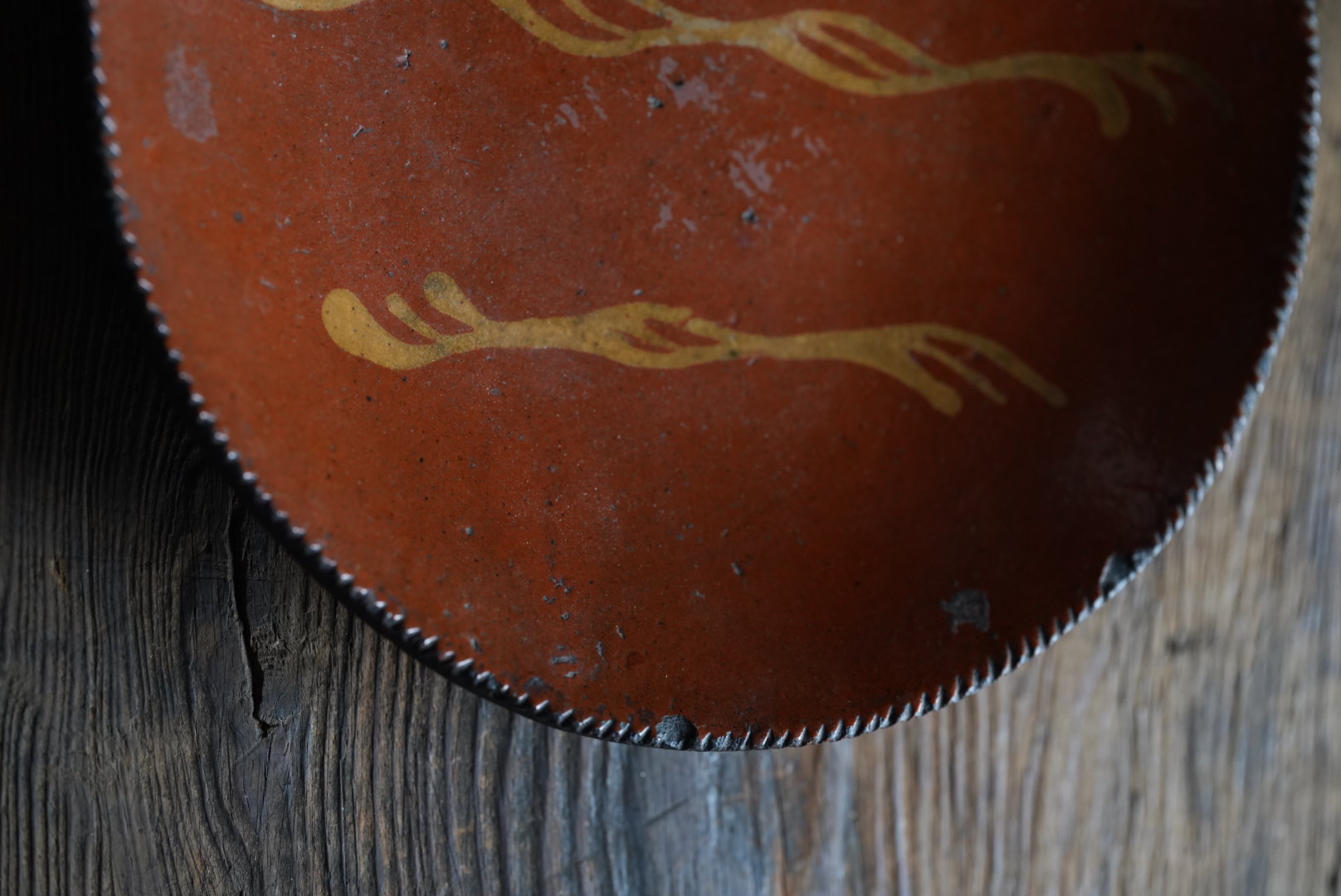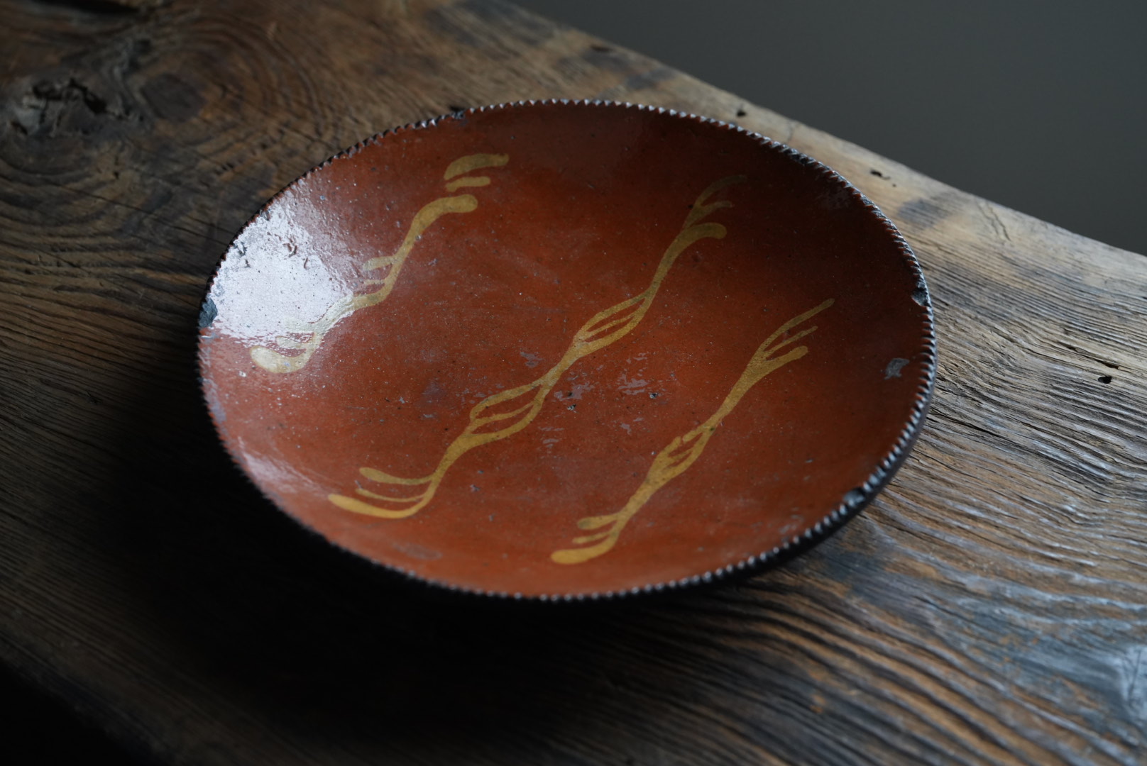 アメリカ北東部ペンシルベニアのレッドウェアのパイ皿です。アーミッシュも住むランカスターのもので、落ち着いた雰囲気は和食にも合う器と思います。 使われてきた古いものですので欠けや使用キズ等はございます