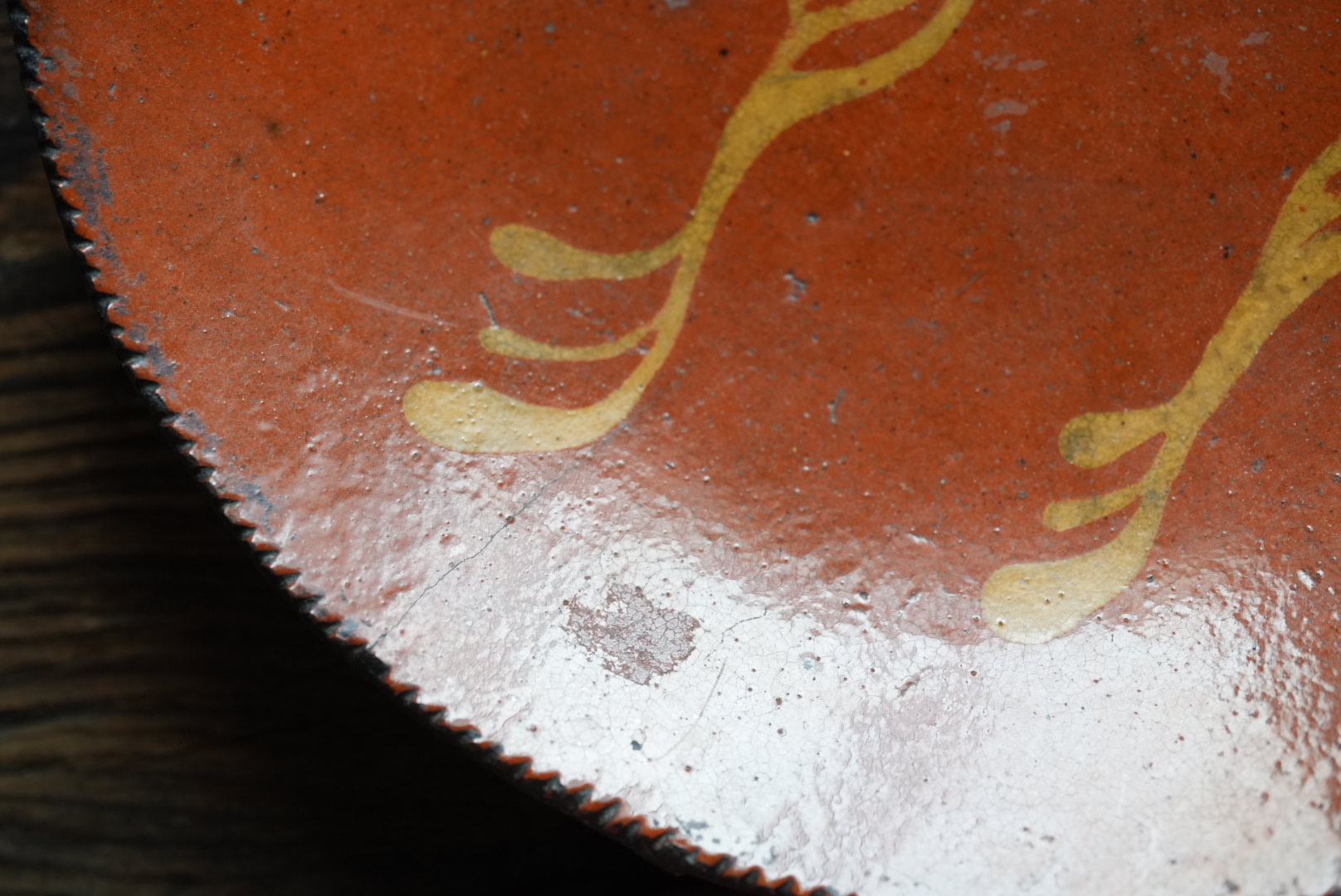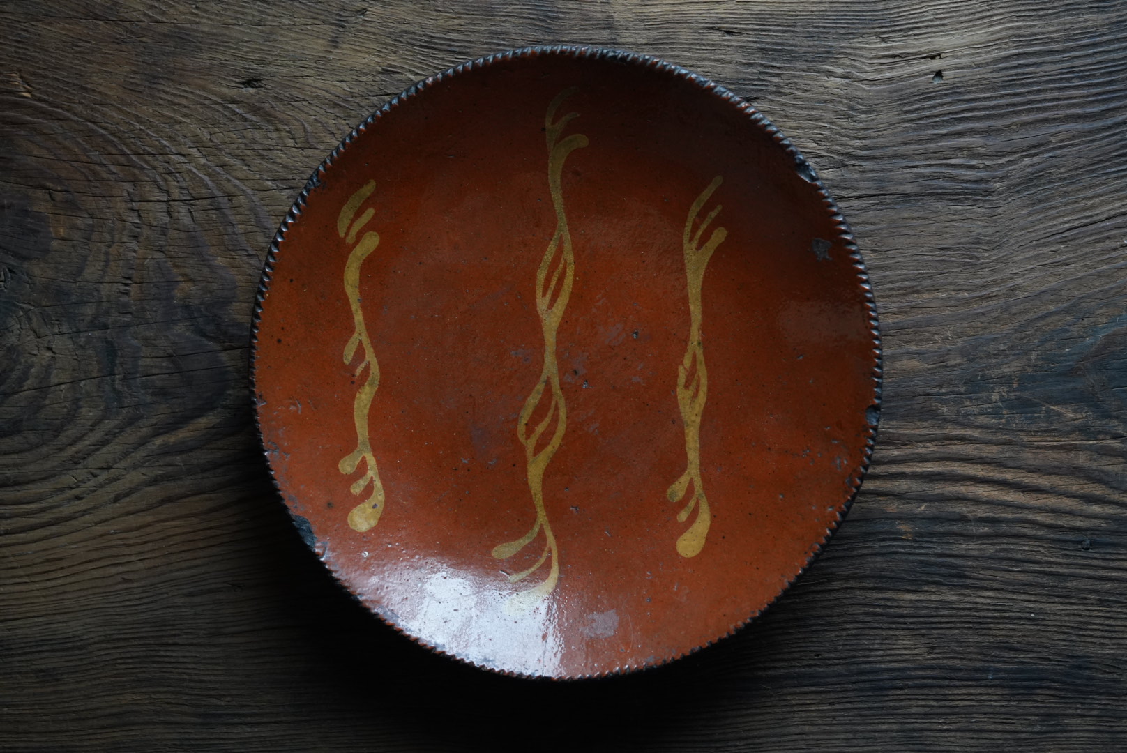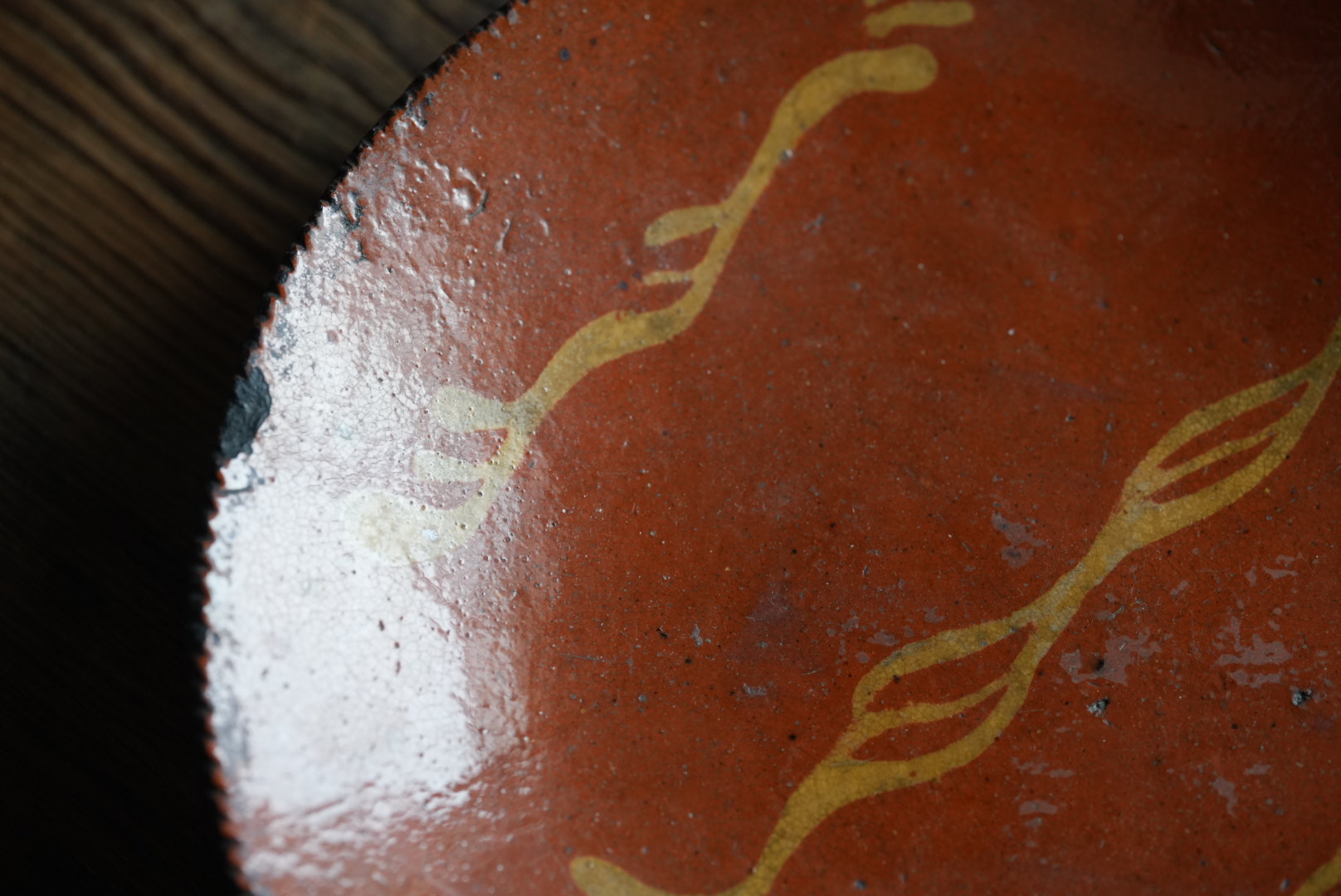 アメリカ北東部ペンシルベニアのレッドウェアのパイ皿です。アーミッシュも住むランカスターのもので、落ち着いた雰囲気は和食にも合う器と思います。 使われてきた古いものですので欠けや使用キズ等はございます
