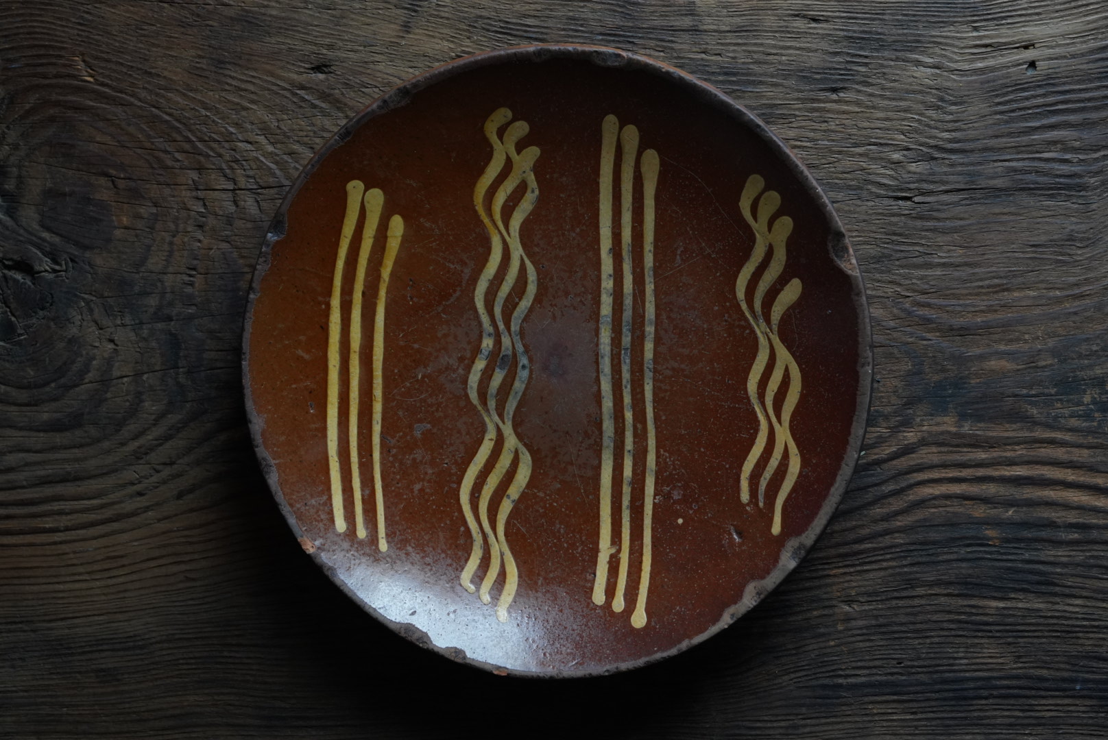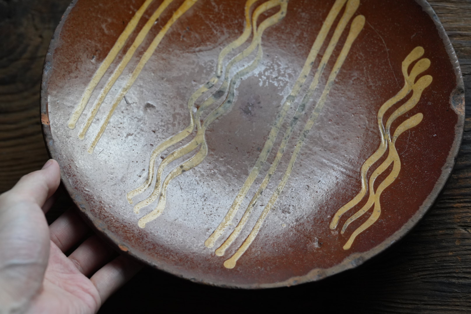 アメリカ北東部ペンシルベニアのレッドウェアのパイ皿です。アーミッシュも住むランカスターのもので、落ち着いた雰囲気は和食にも合う器と思います。 使われてきた古いものですので欠けや使用キズ等はございます