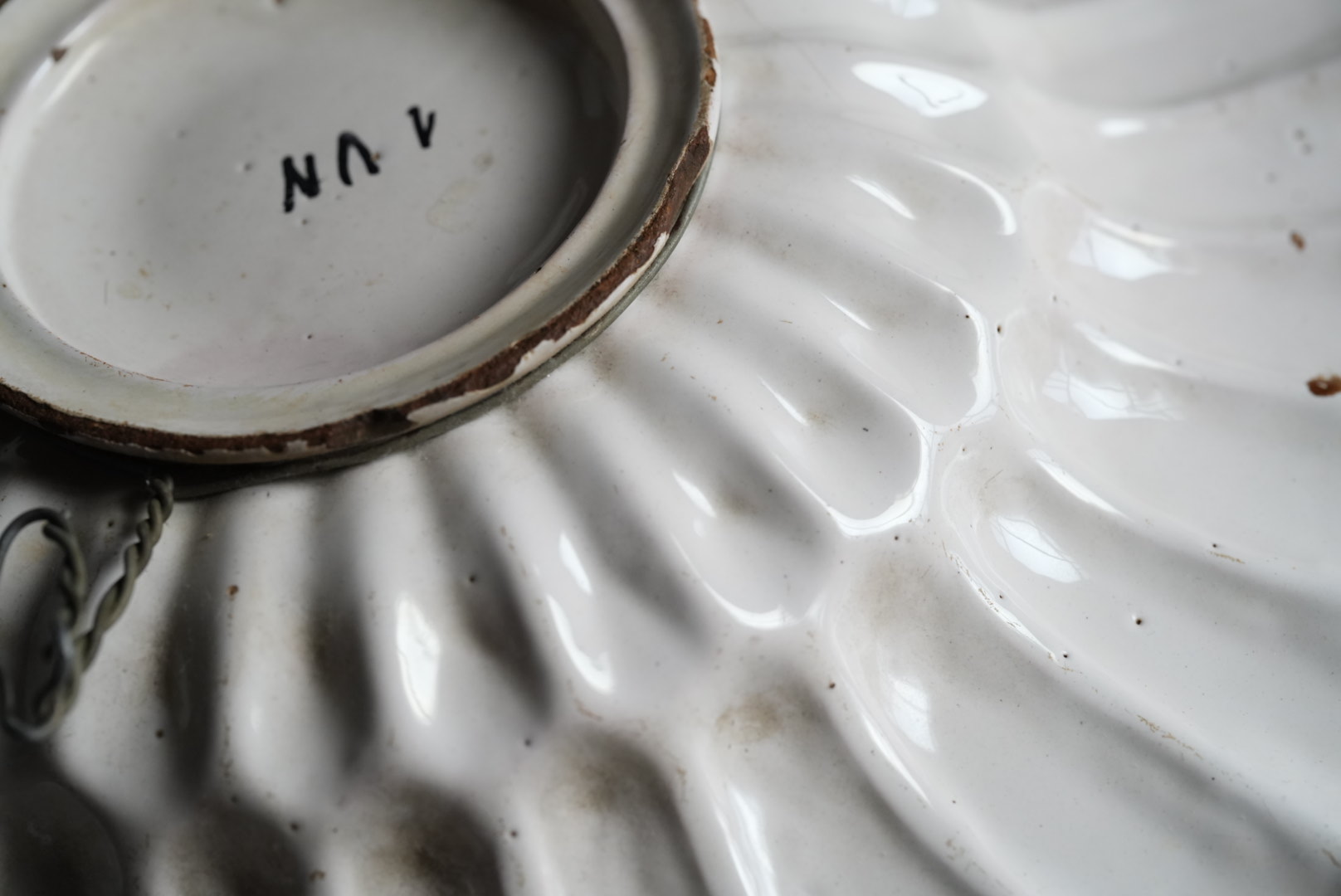 ニュウがありますが、説明不要の美しい一枚です。 飾り皿として壁にかけられるようにされています。