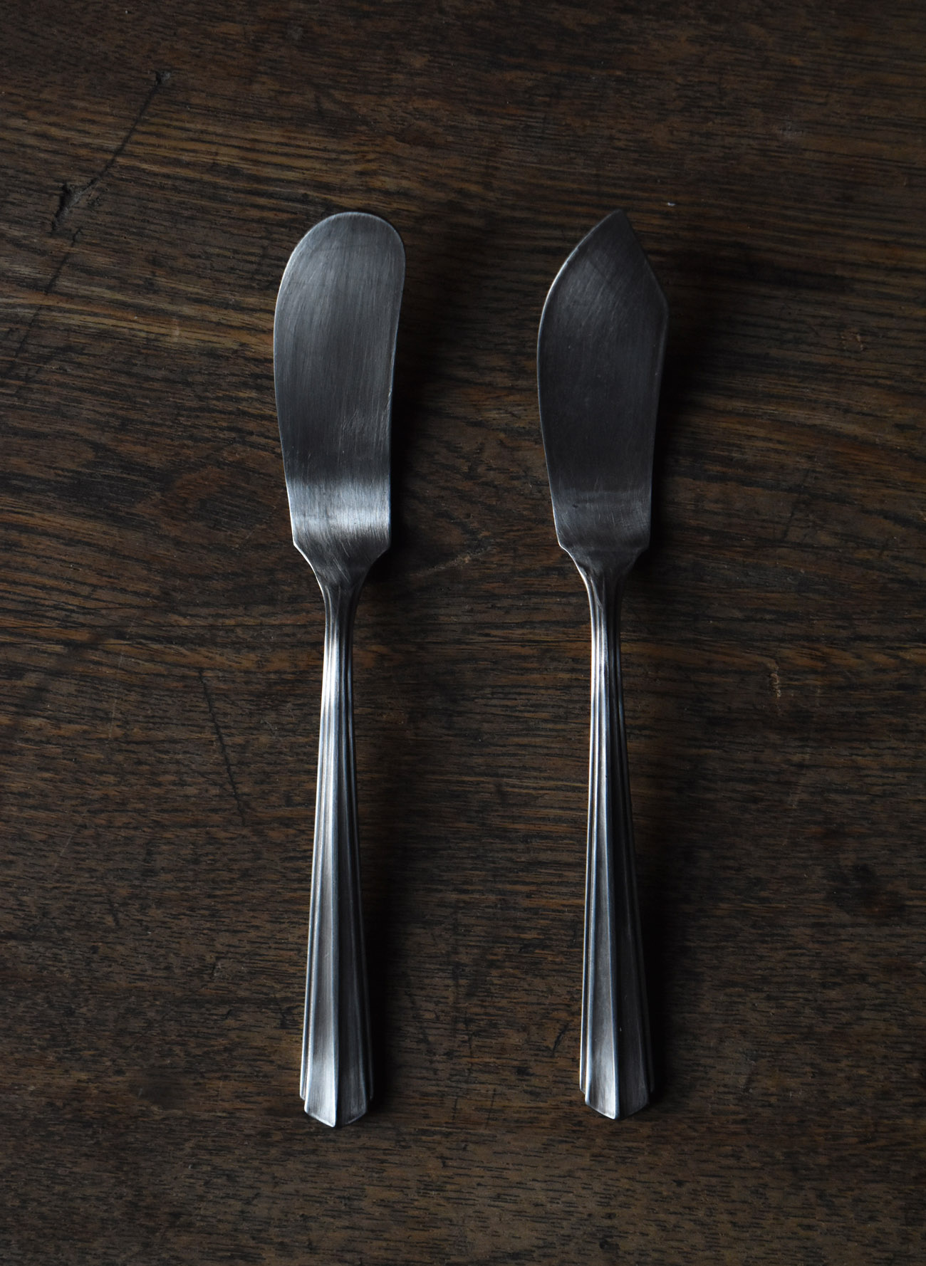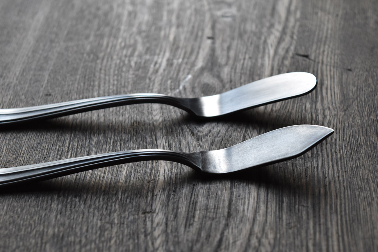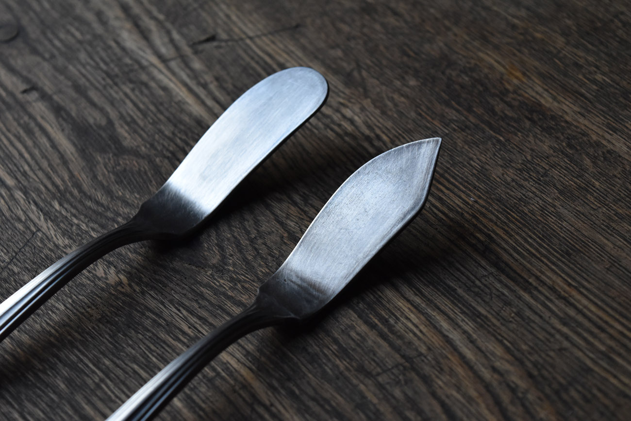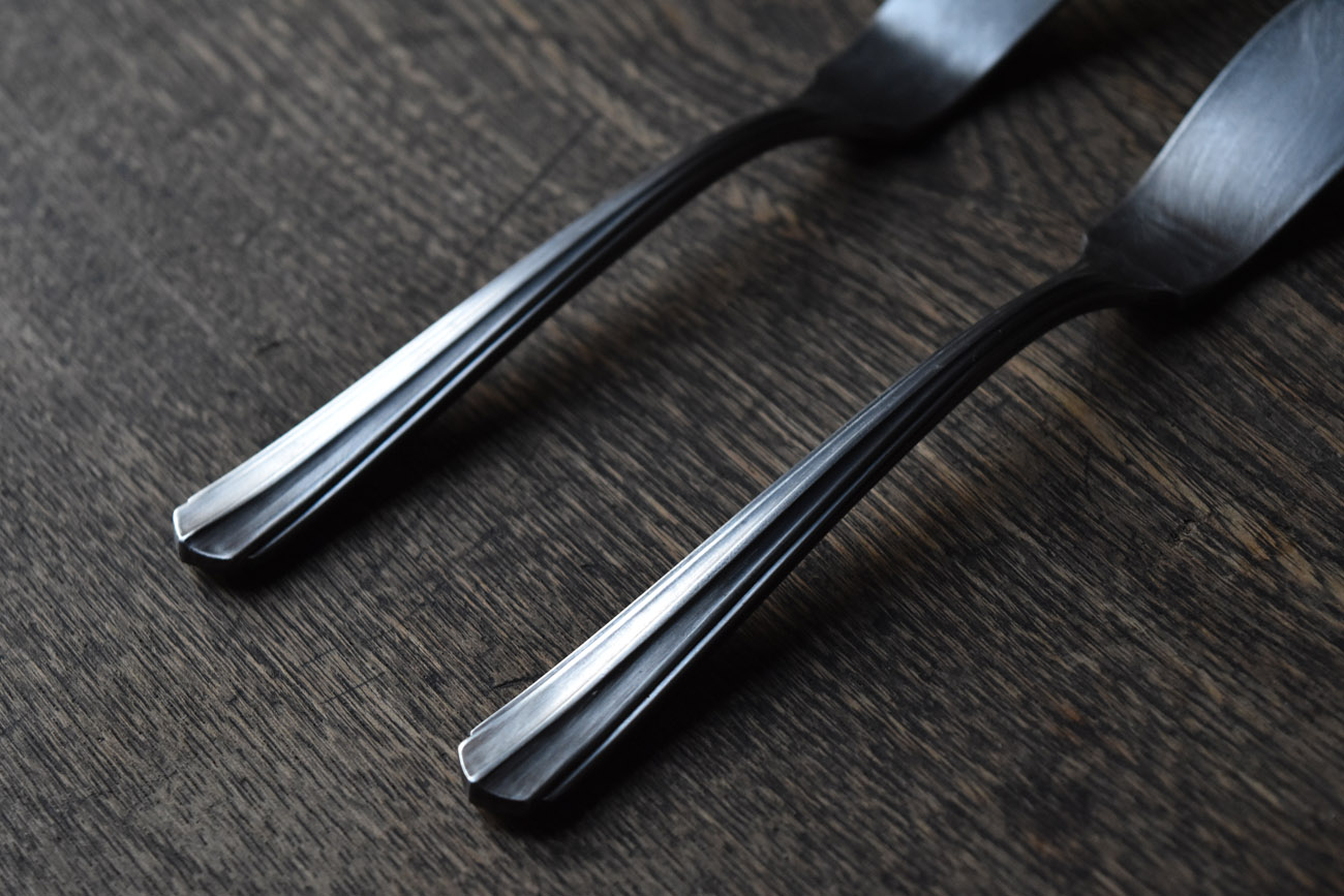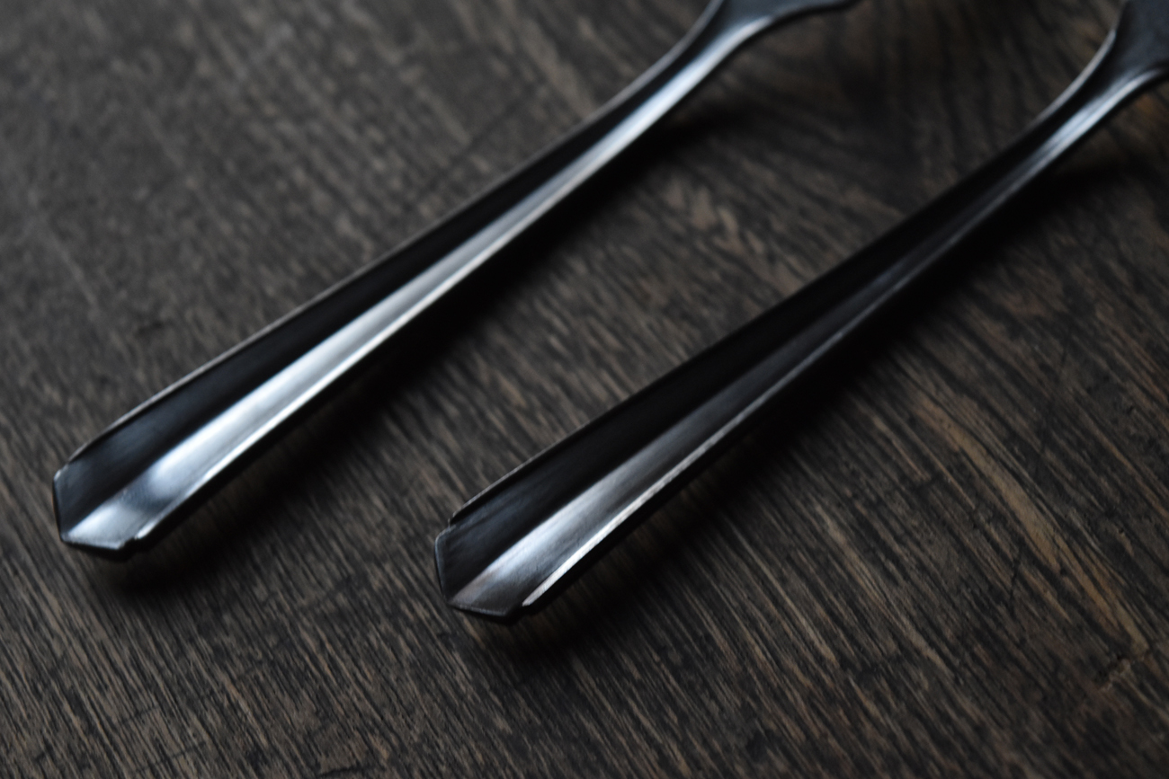 竹俣勇壱さんが監修&仕上げ、猿山修さんデザイン、新潟県燕三条の田三金属さんが製造され生まれたカトラリーシリーズです。ステンレスの素地に、竹俣さんが独自の方法で仕上げています。