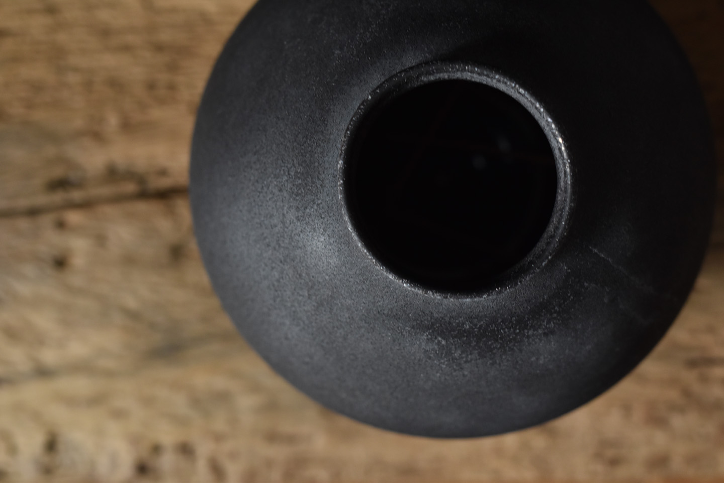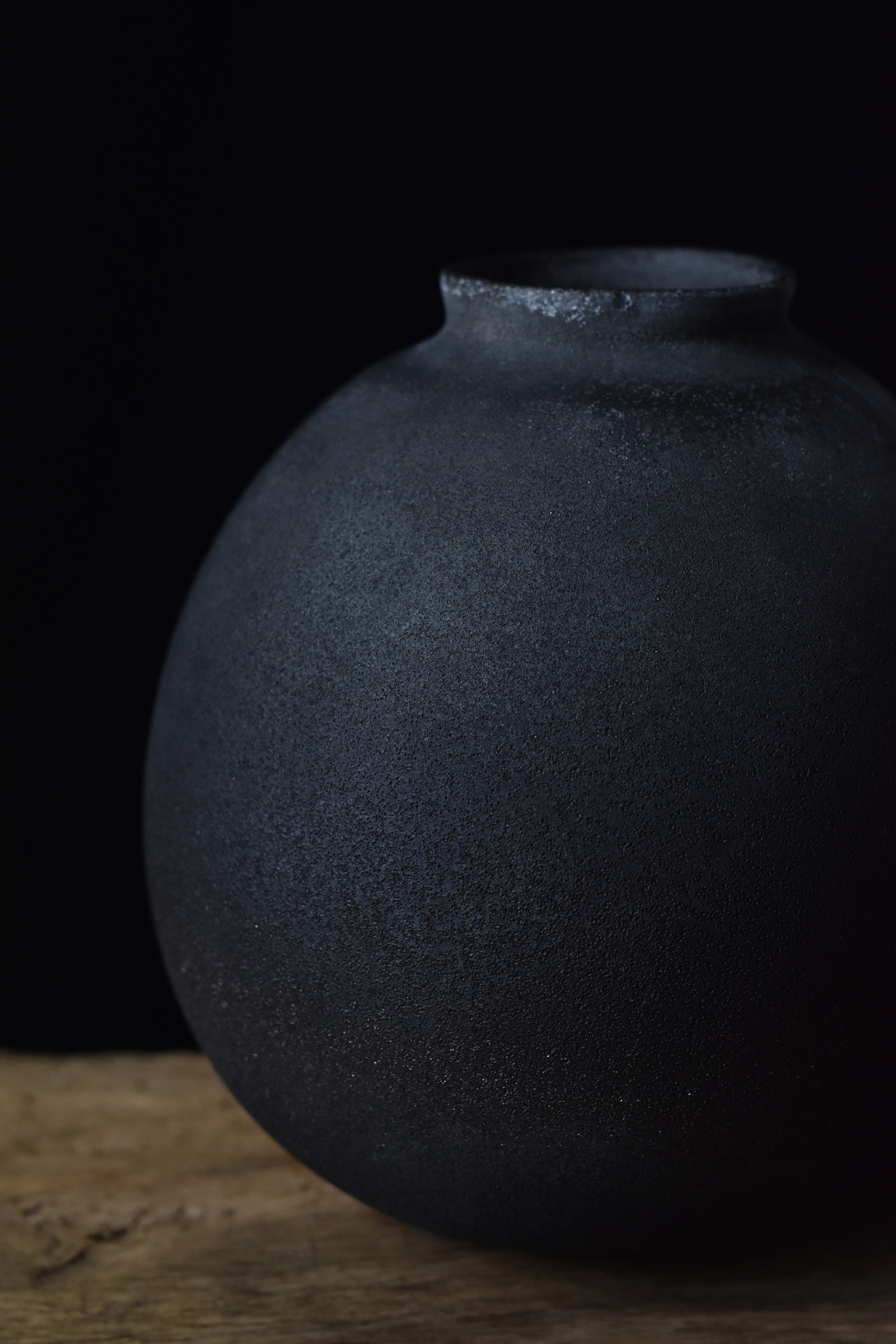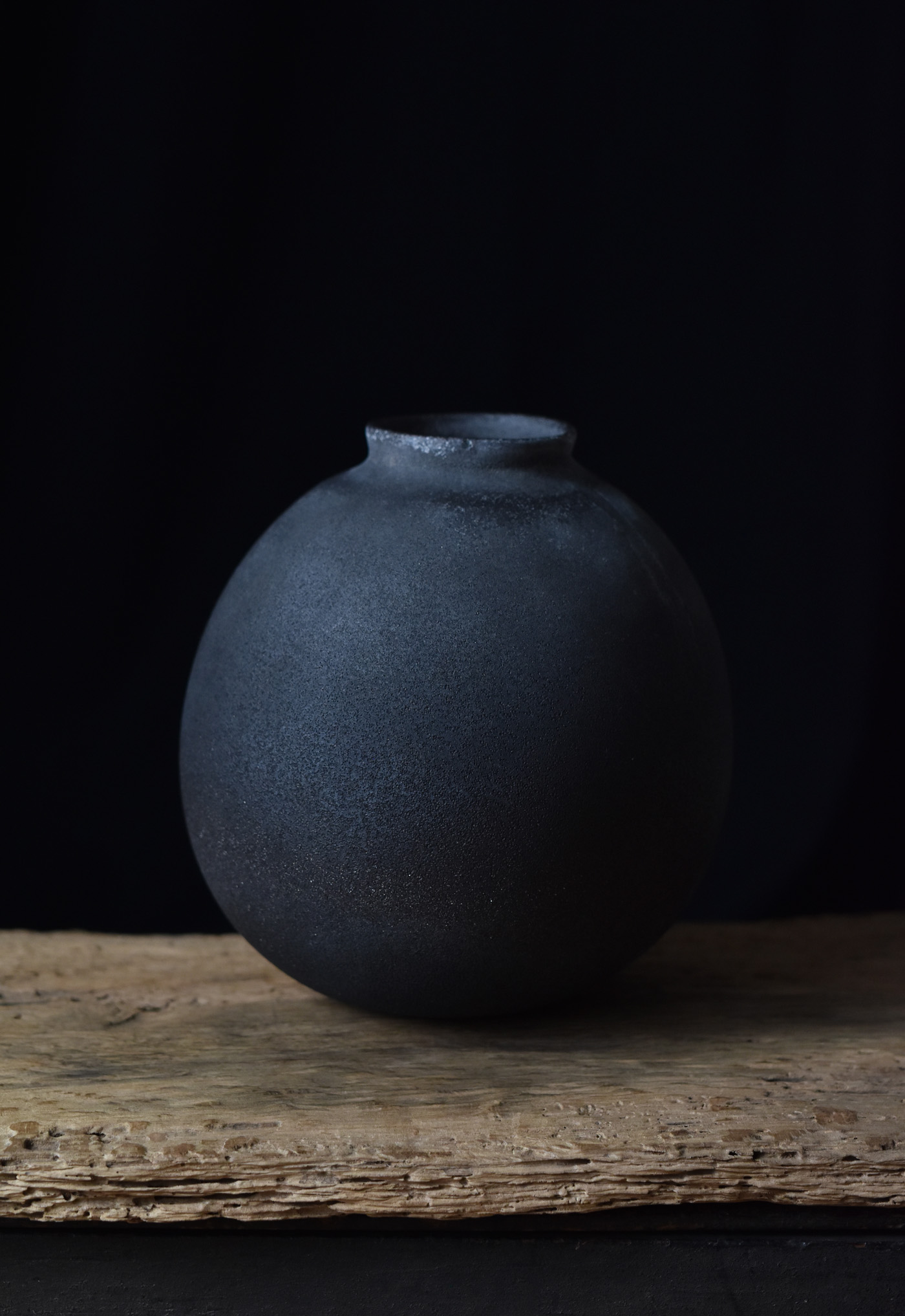 description : 透明ガラスに質感のある黒ガラスを被せた作品。写真では写しにくい内側は、もとの透明ガラスが艶やかで対比があります。