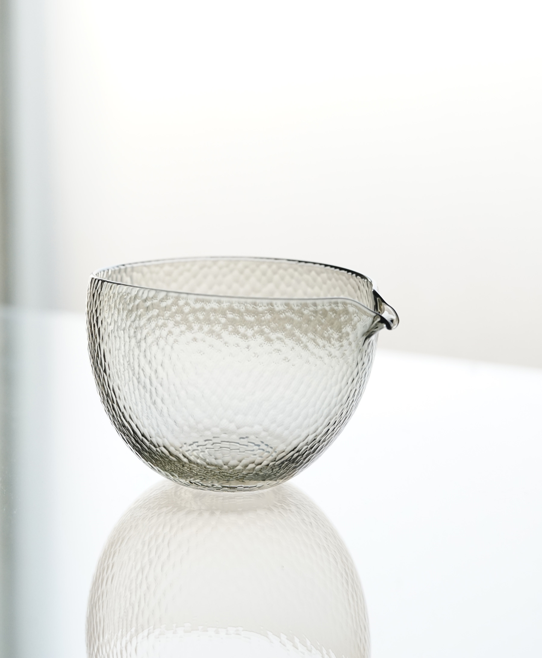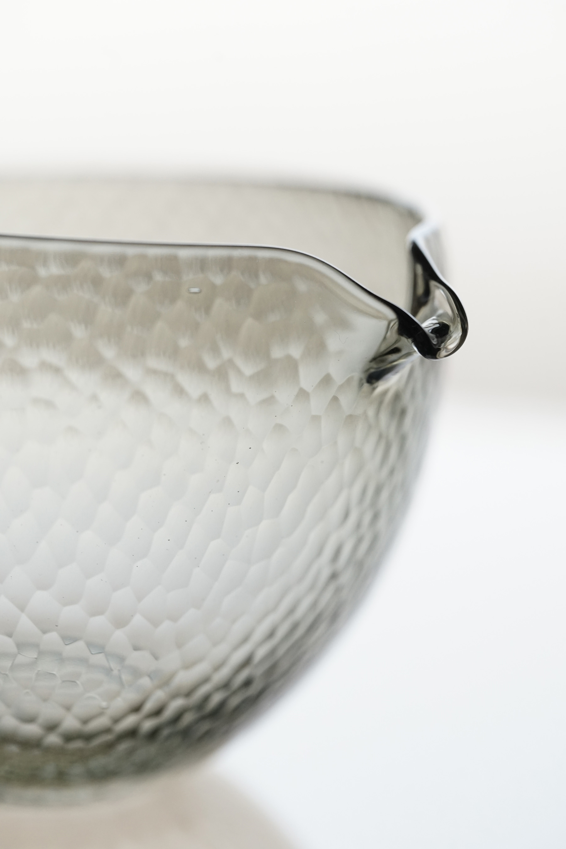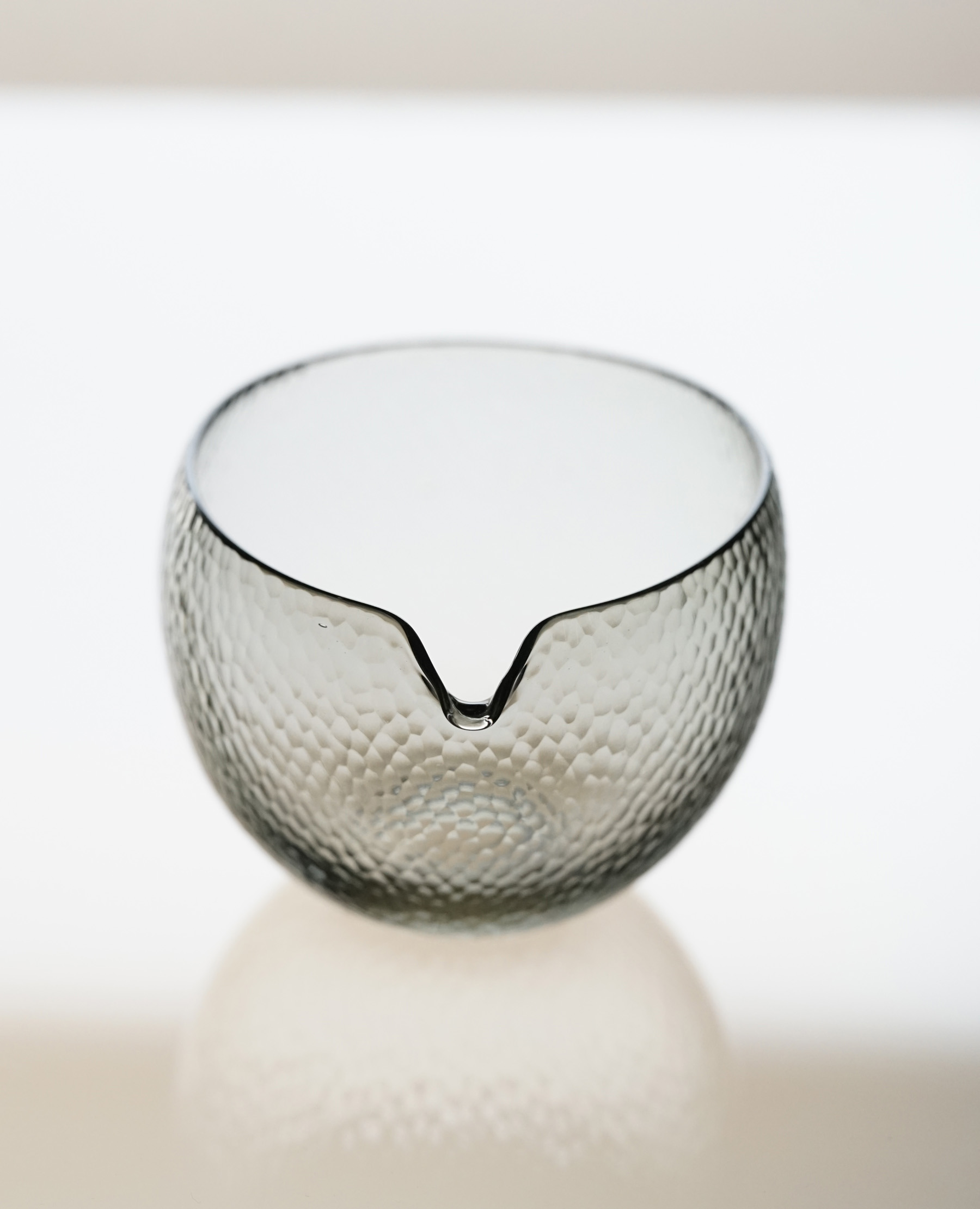細かなカットが表面を曖昧にする、幻想的な片口。