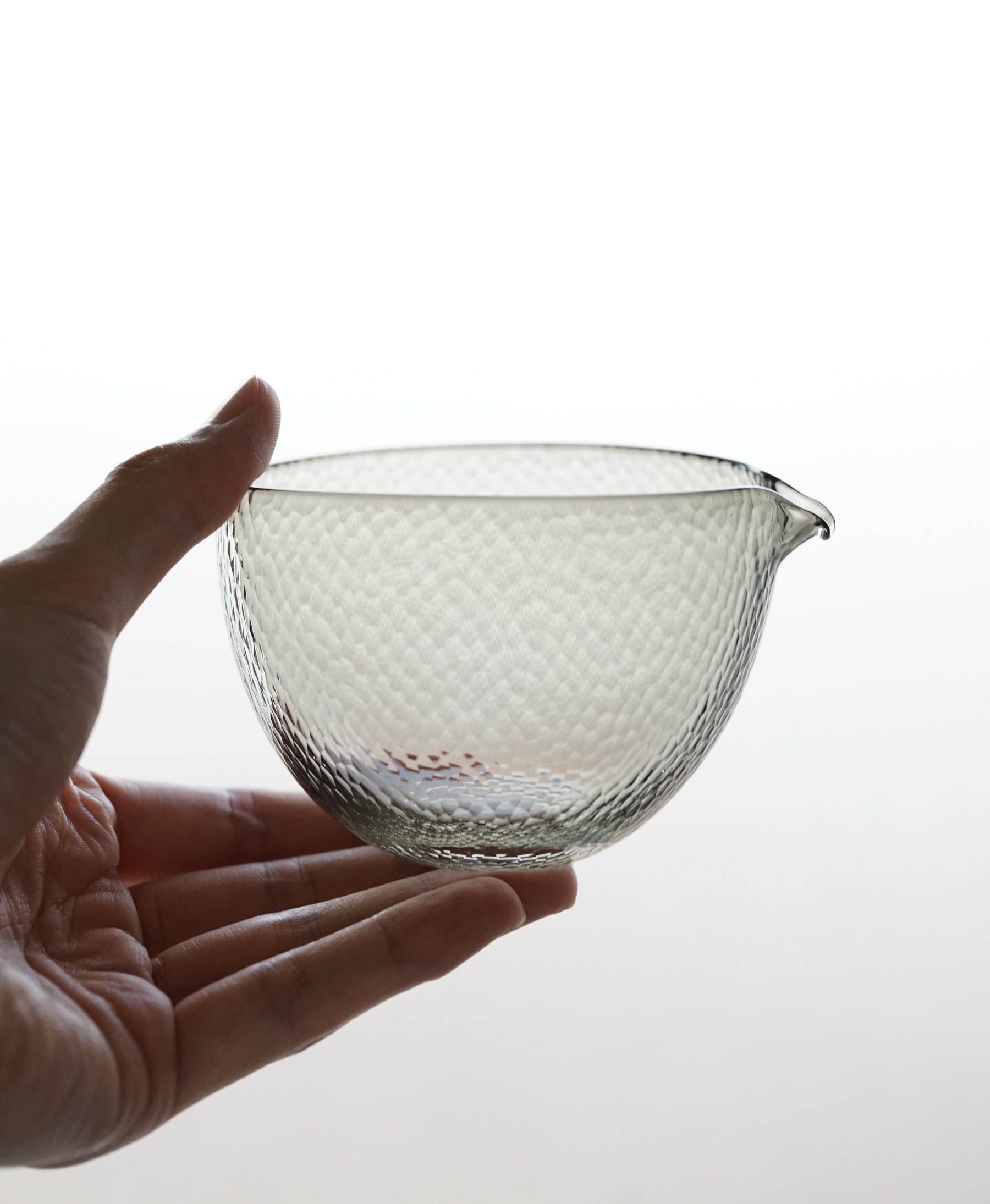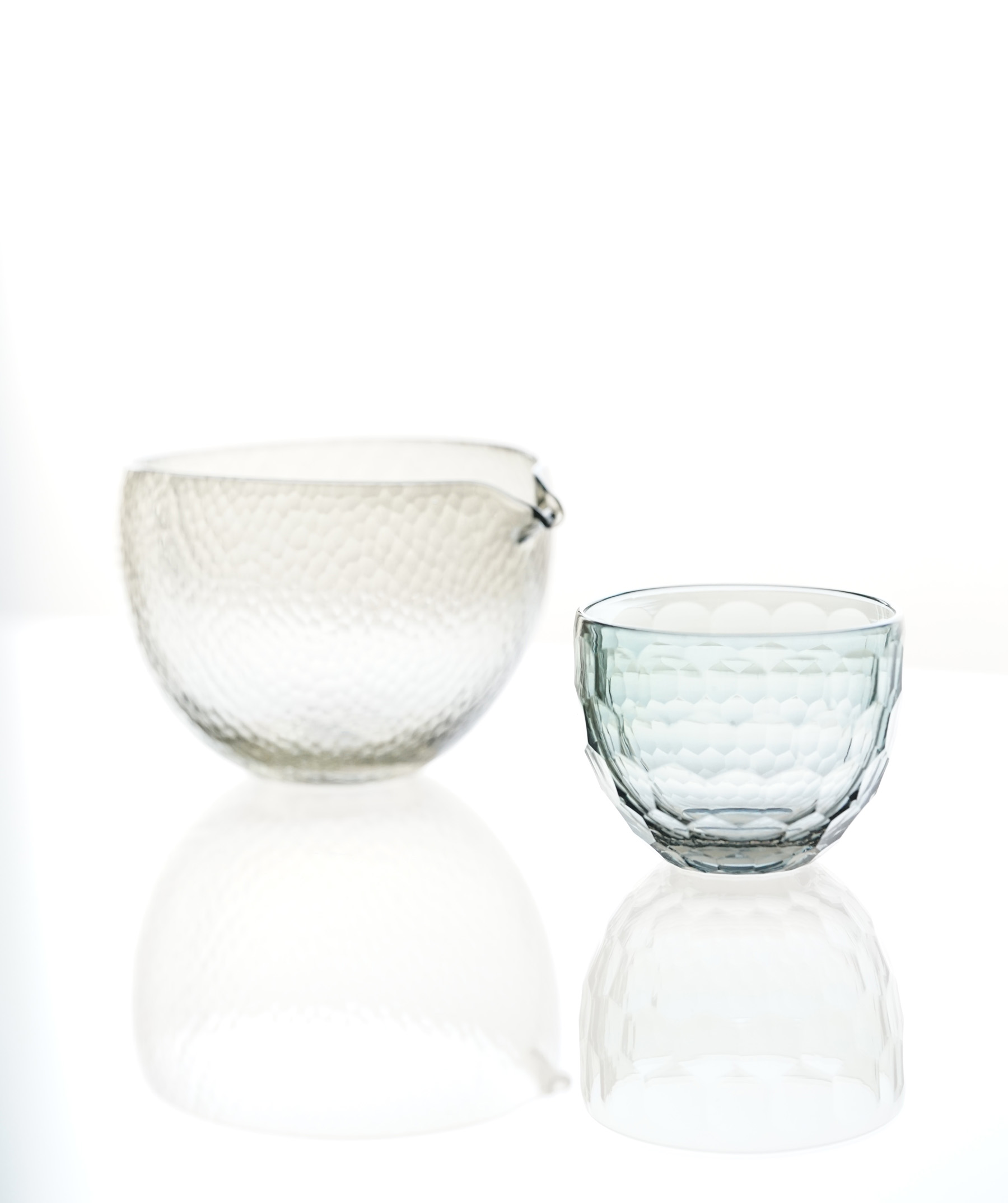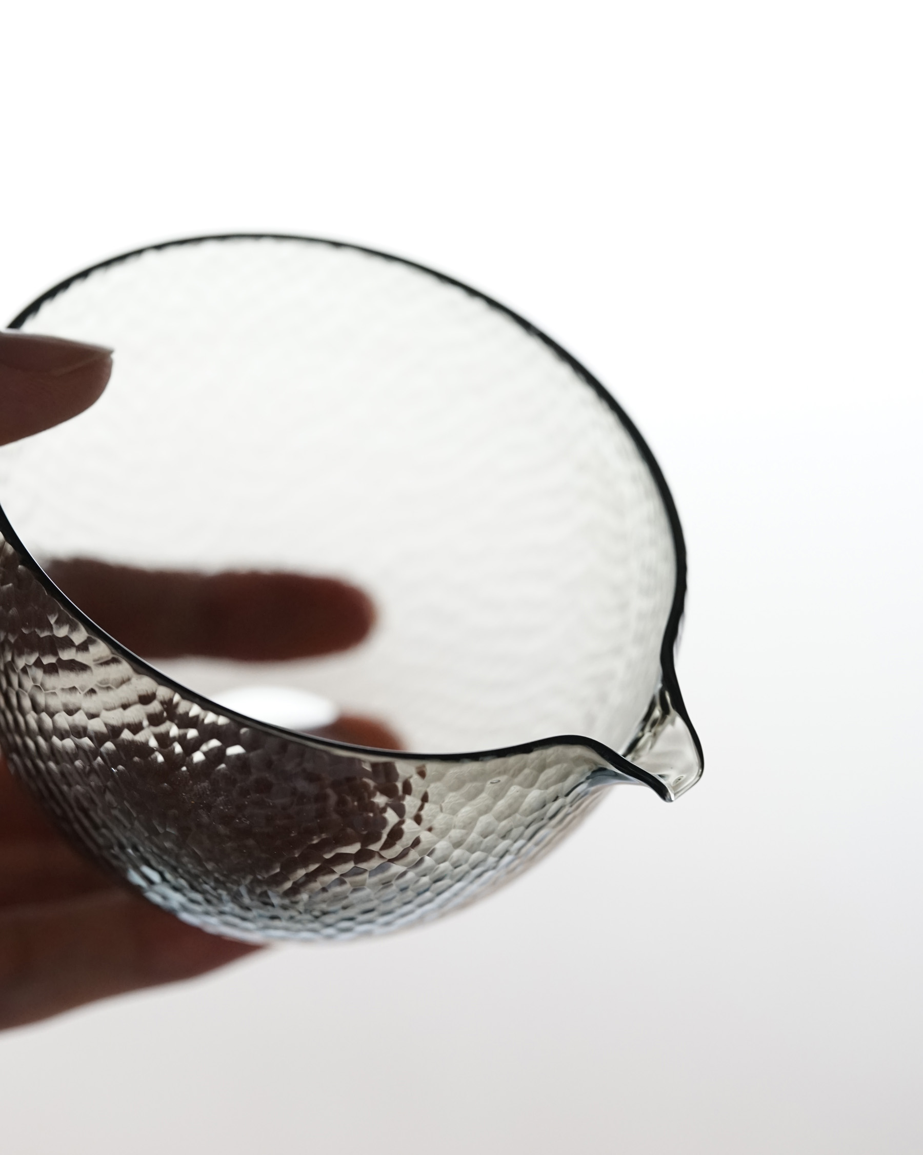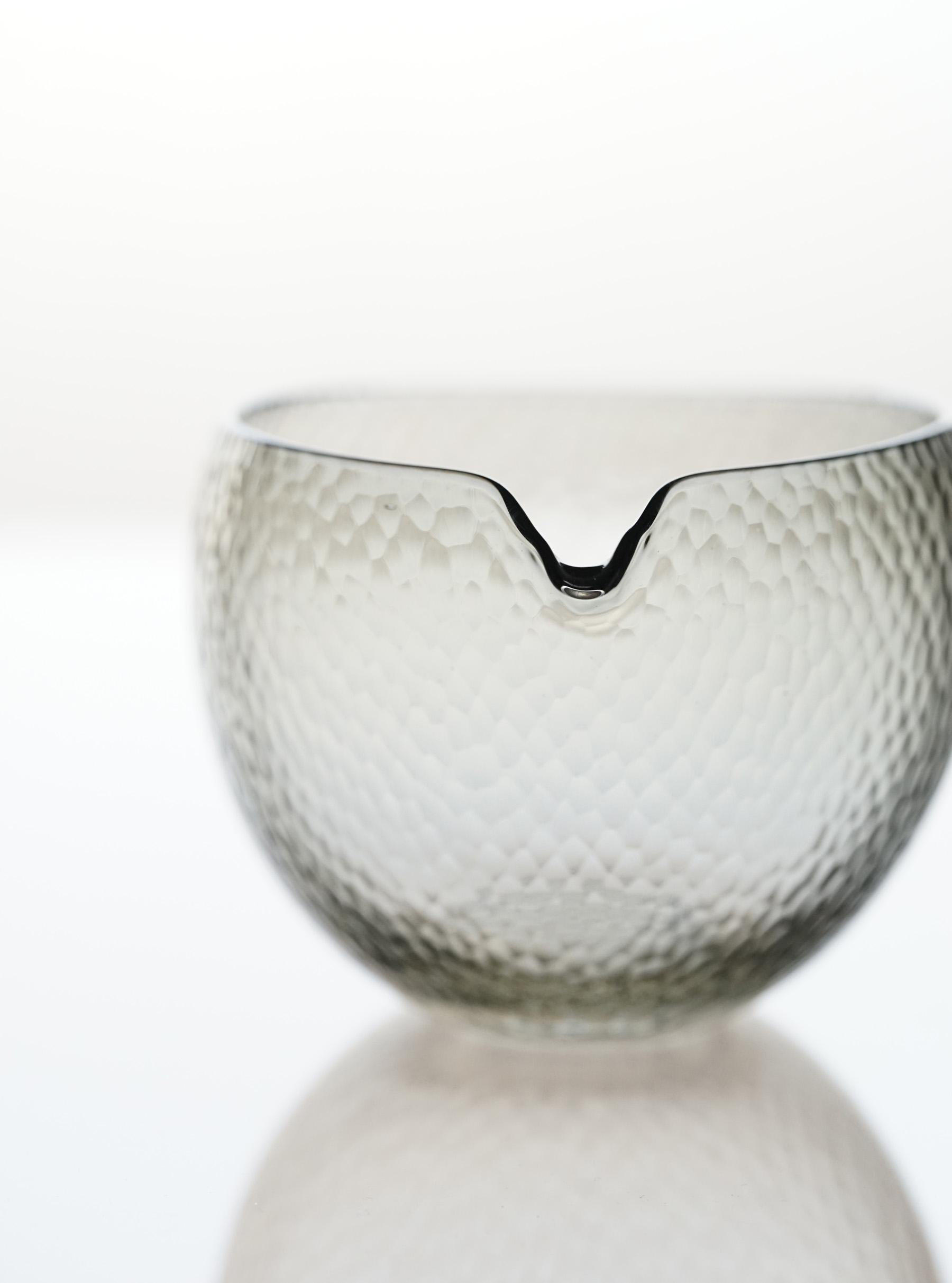 細かなカットが表面を曖昧にする、幻想的な片口。