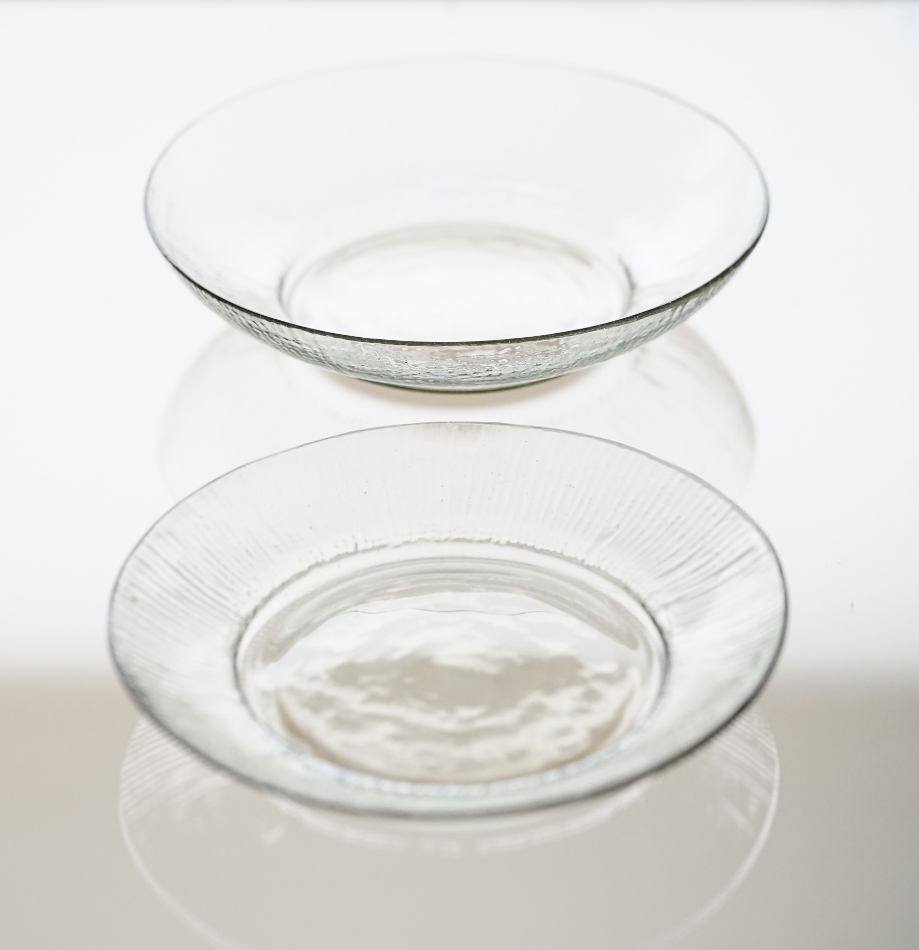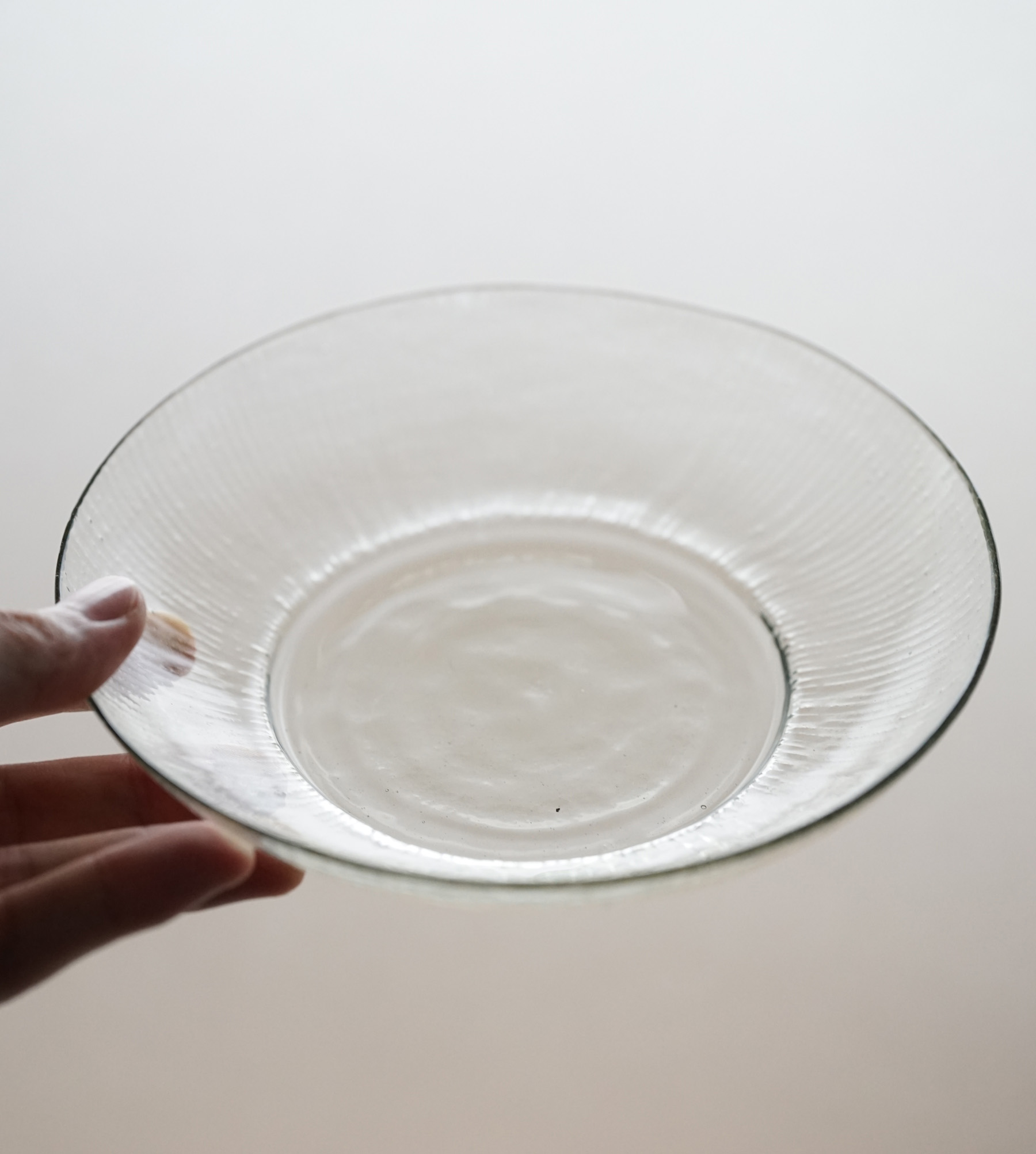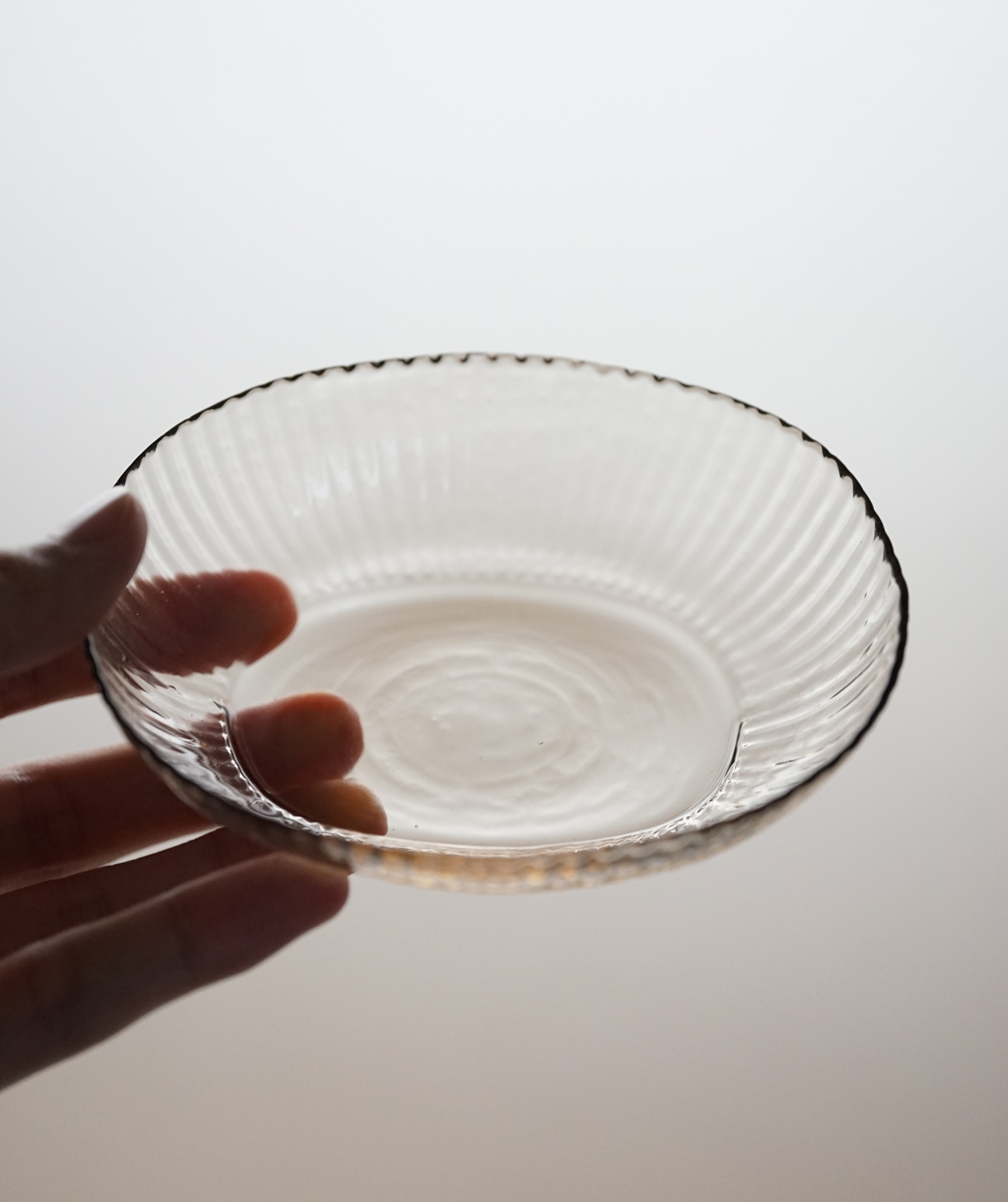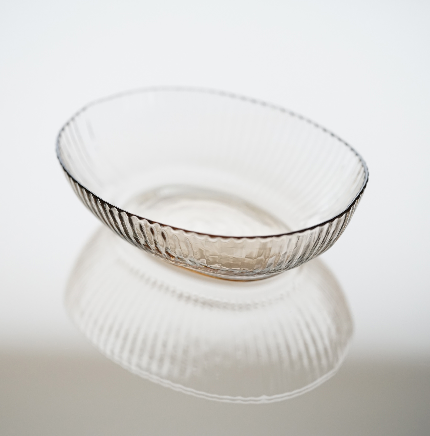 バリエーション豊富な型吹きの食器の中の、 しのぎ模様の作品です。和食にも合わせやすい意匠。