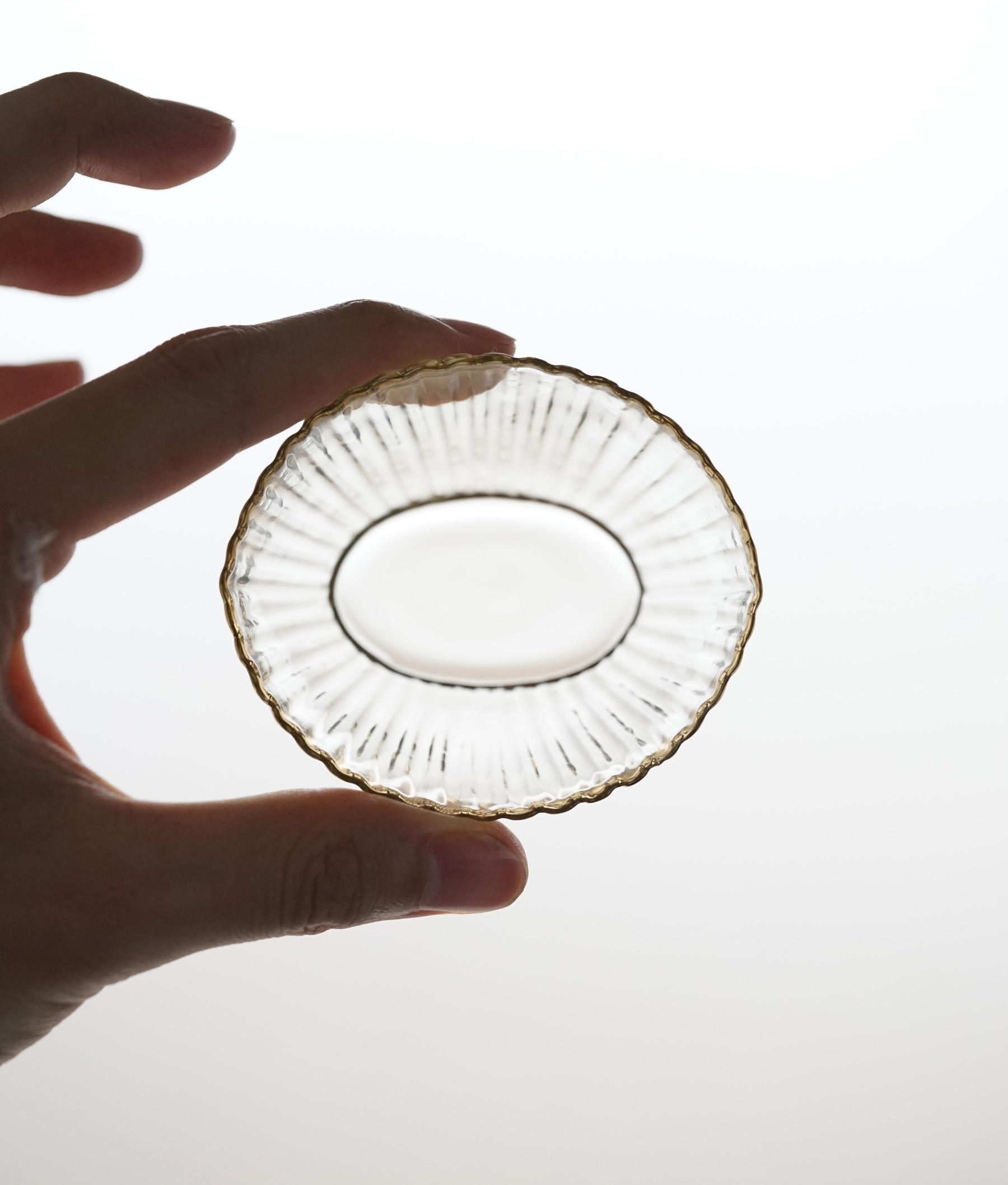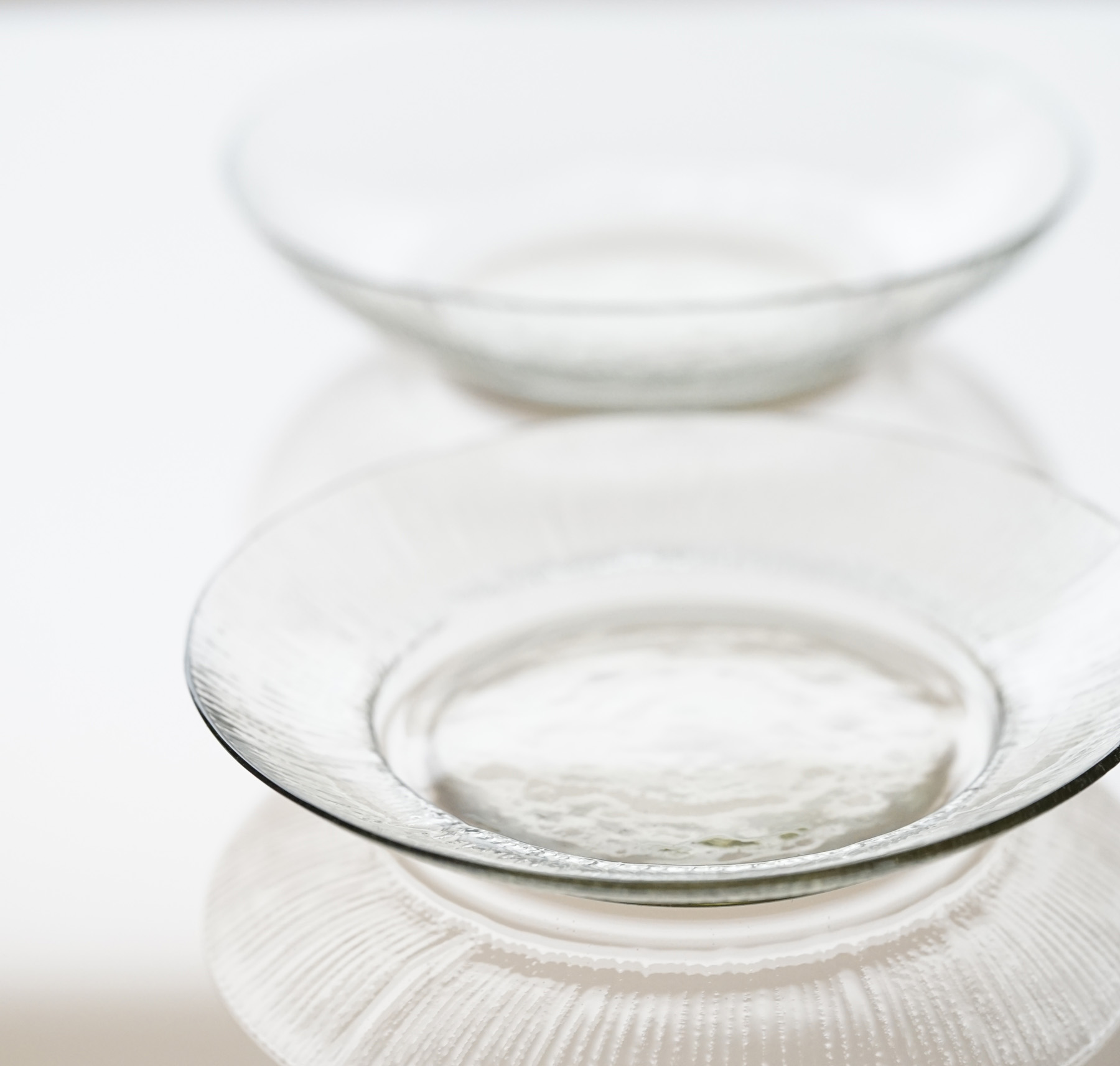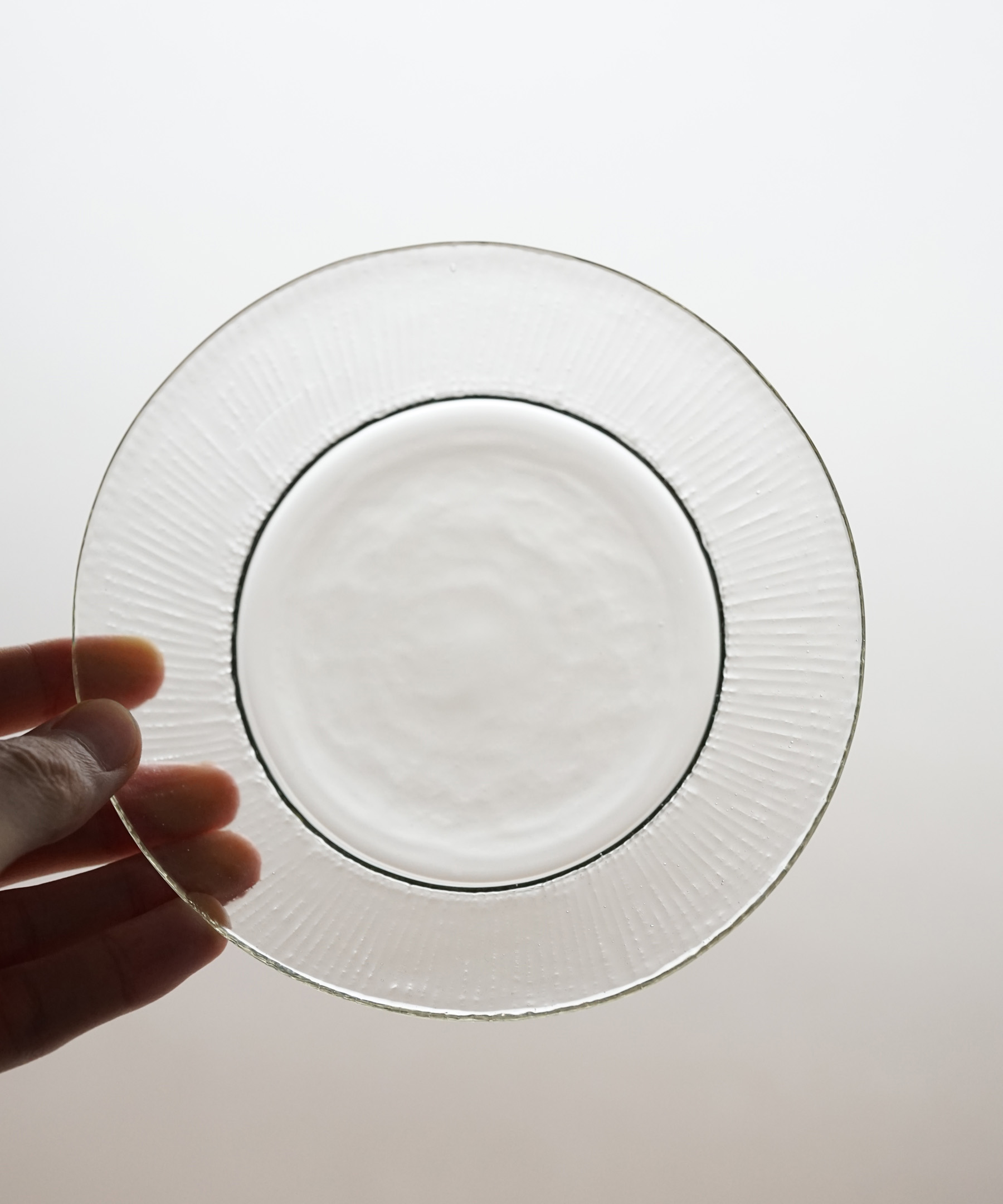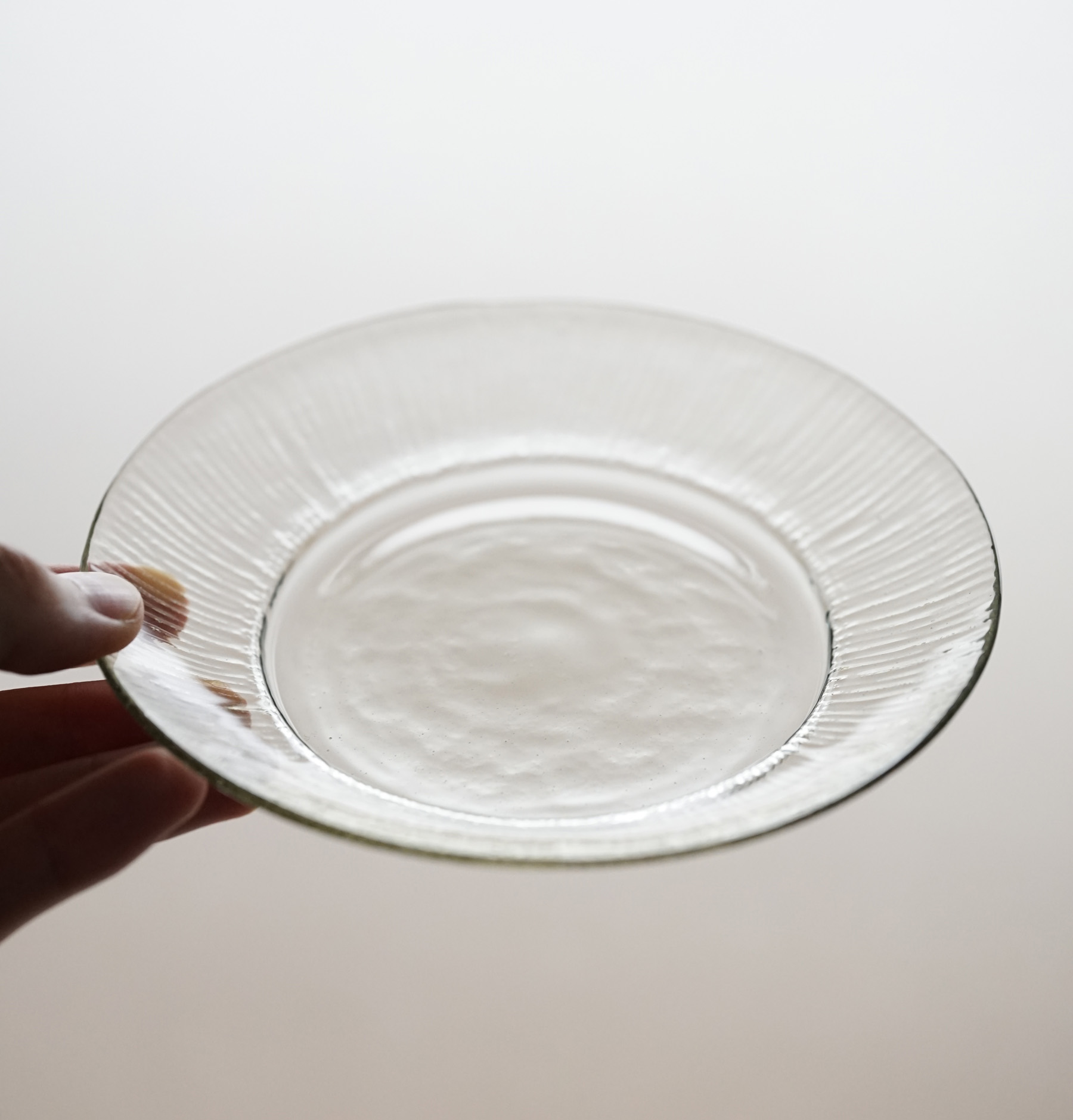 バリエーション豊富な型吹きの食器の中の、 しのぎ模様の作品です。和食にも合わせやすい意匠。
