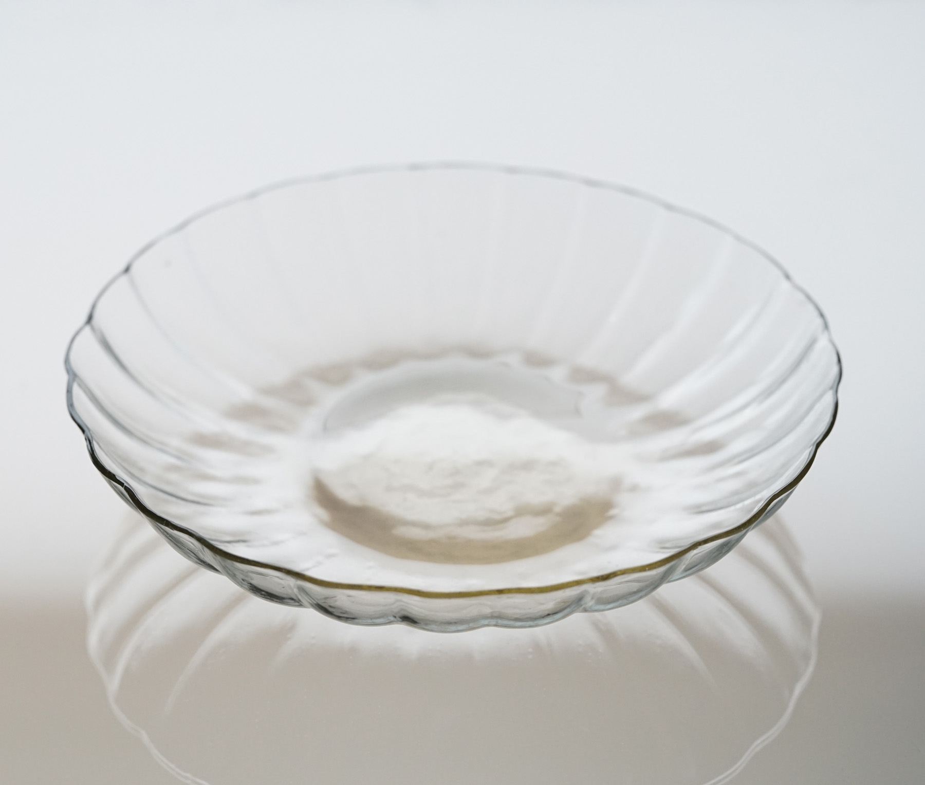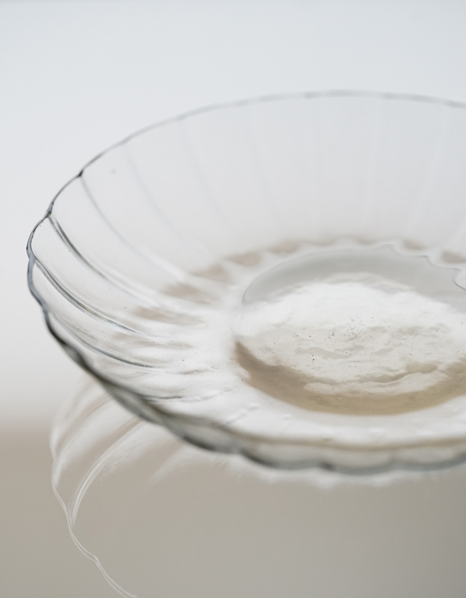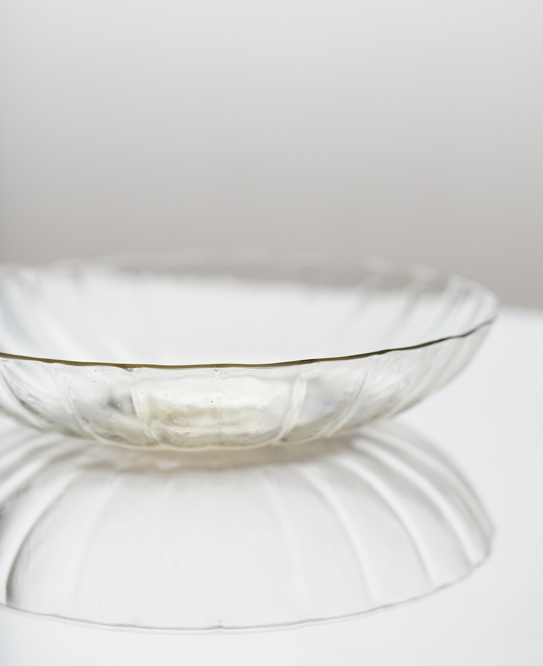 シンプルな型吹きの菊型皿。和にも洋にも合わせやすい表情。