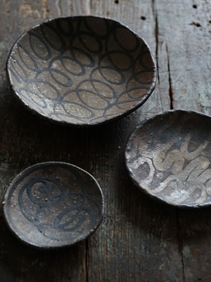 焼き締めスリップ丸皿