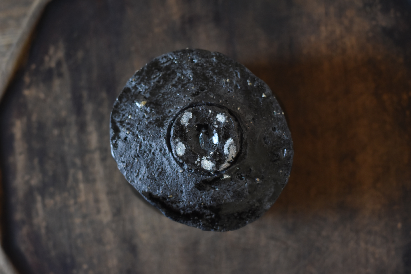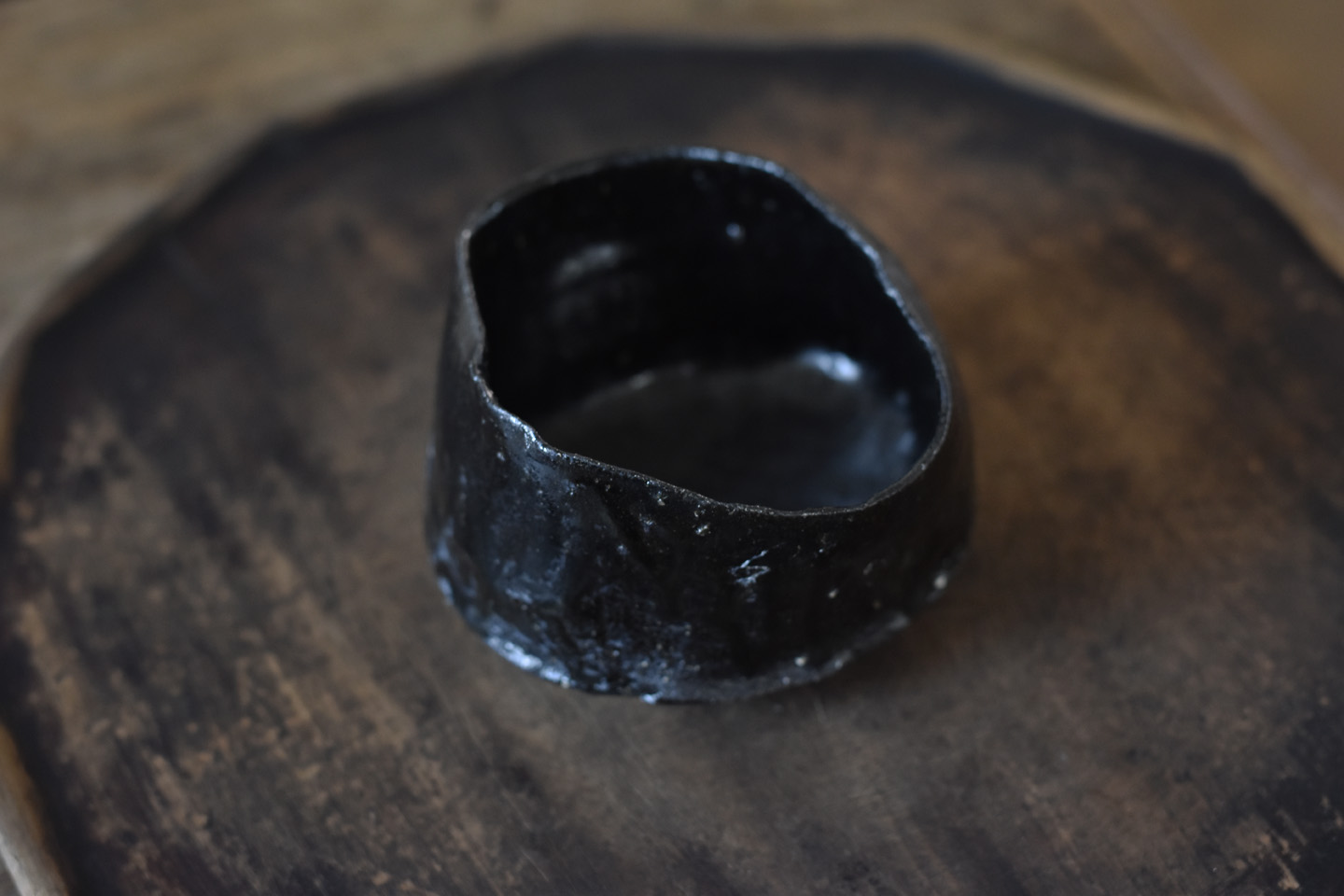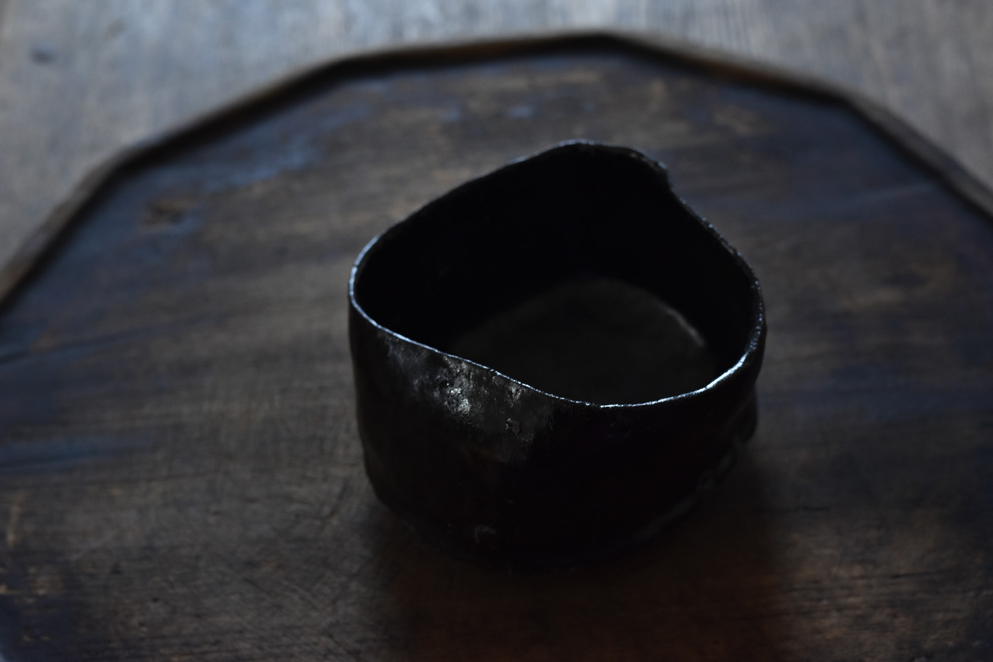 横山さんの代名詞のような定番の黒碗。抹茶碗としては手頃な価格から、初めての茶碗としてお求めになるお客様も多い作品です。