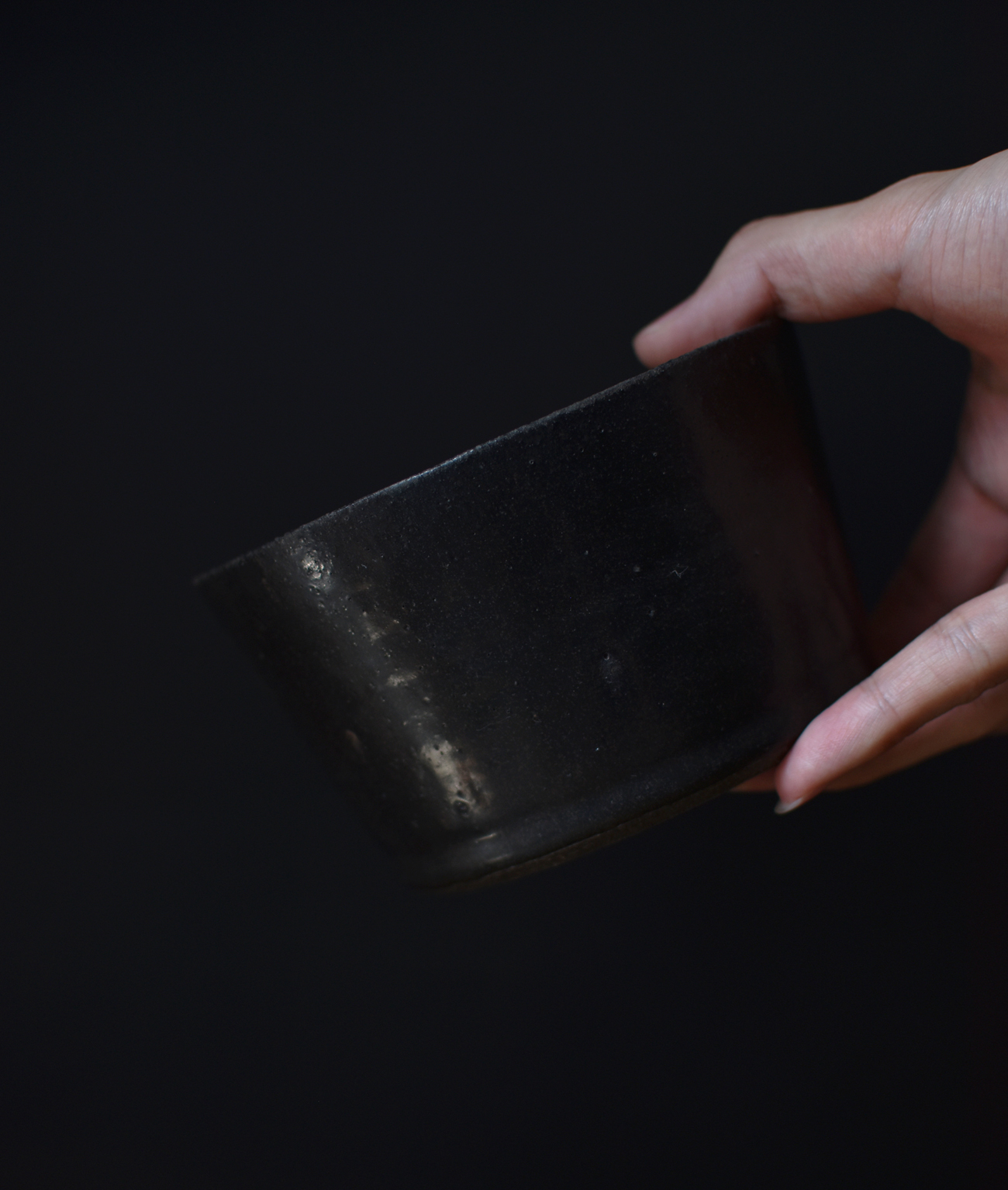 鉄釉筒鉢