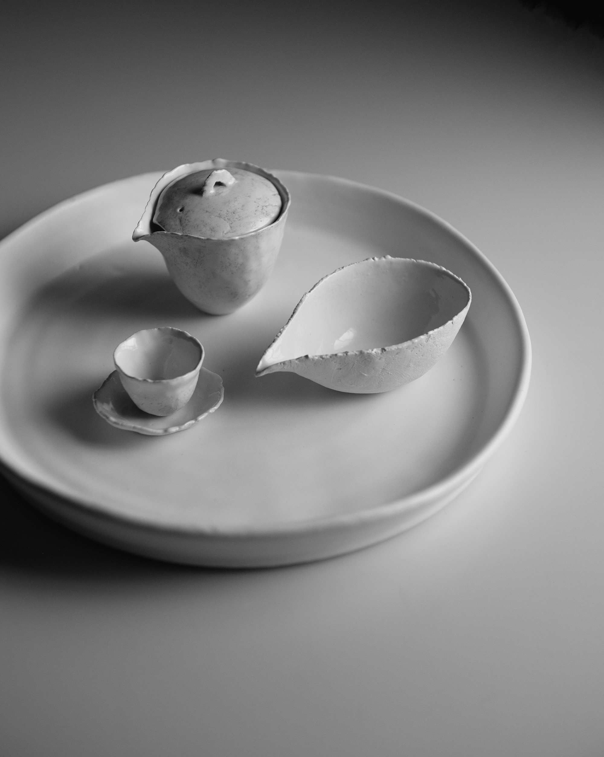 器としての実用、彫刻としての造形。 その境界を、軽やかに越えていくものづくり。 器としての用を保ちながら、ときに彫刻のように、ただそこに在る美しさ。 茶をたしなむ文人の気配、不完全のなかに宿る、凛とした佇まい。 用と美、彫刻と器。そのあわいに現れる静かなかたちを、ぜひご高覧ください。 Utility as vessel, form as sculpture— a making that lightly crosses their boundaries. While preserving the function of a vessel, at times it stands simply as a sculpture, a beauty in itself. A trace of the literati who cherish tea, a quiet dignity dwelling within imperfection. In the awai—the subtle in-between of use and beauty, vessel and sculpture— a silent form emerges. We invite you to encounter it here. |